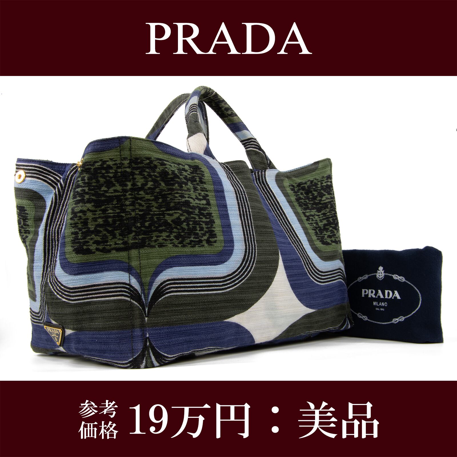 【本物・送料無料・美品】プラダ・ハンドバッグ(カナパ・Lサイズ・人気・綺麗・レア・自然・A4・グリーン・ブルー・バック・E317)