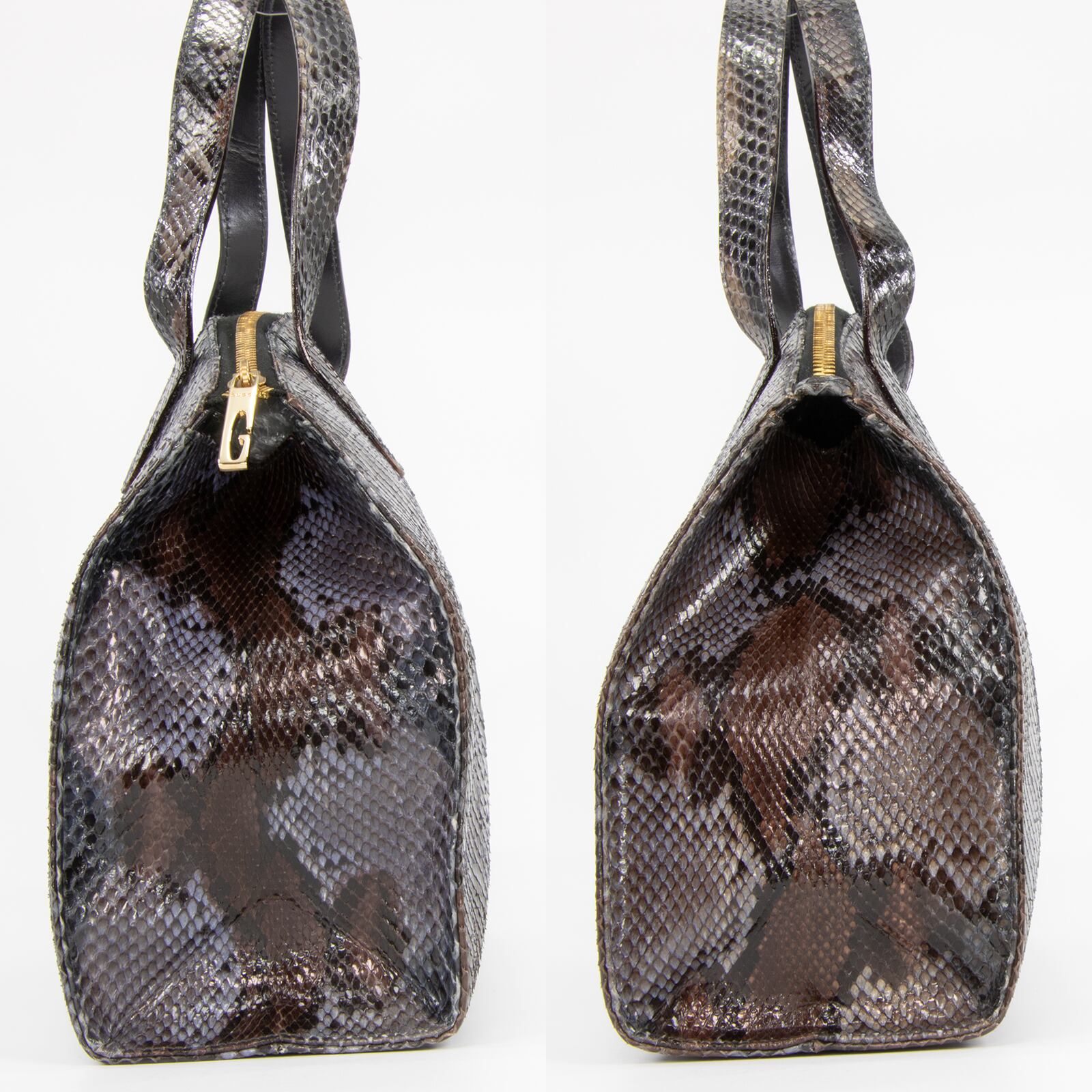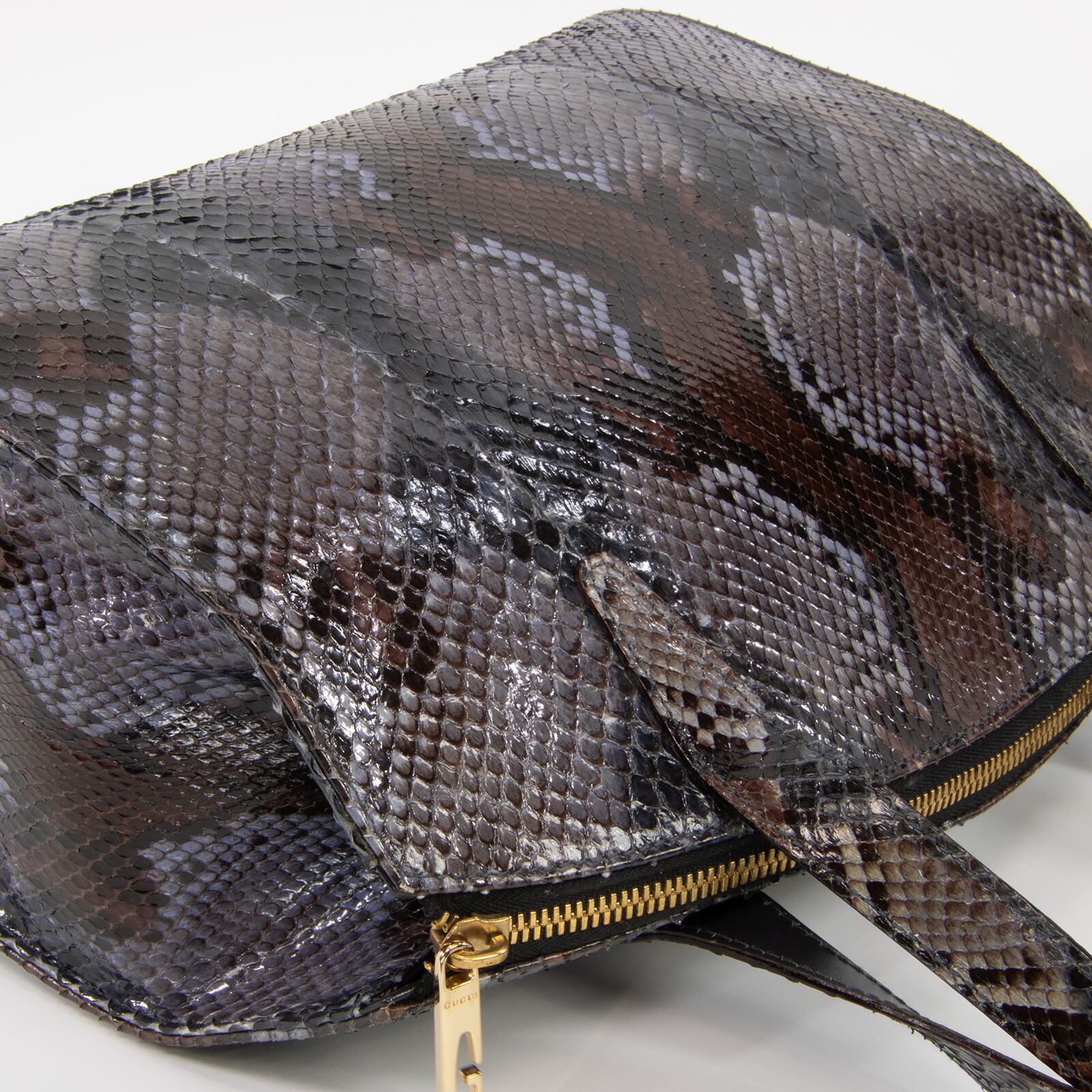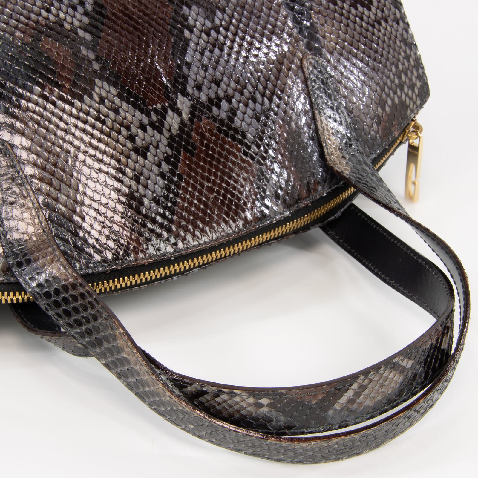 ベーシックなフォルムとエッジが効いた最高級パイソンレザーが、美と機能性を兼ね備えたグッチらしさを感じさせる逸品。希少なオールドグッチの中でも、さらに珍しいハイクラスモデルで、圧倒的存在感・ただならぬ雰囲気によって、ハイブランドをお好きな方から注目されること間違いありません。