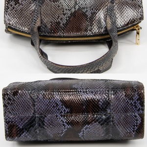 【本物・送料無料・美品】オールドグッチ・ハンドバッグ(パイソン・綺麗・レア・最高級・グレー・ネイビーブルー・バック・E321)