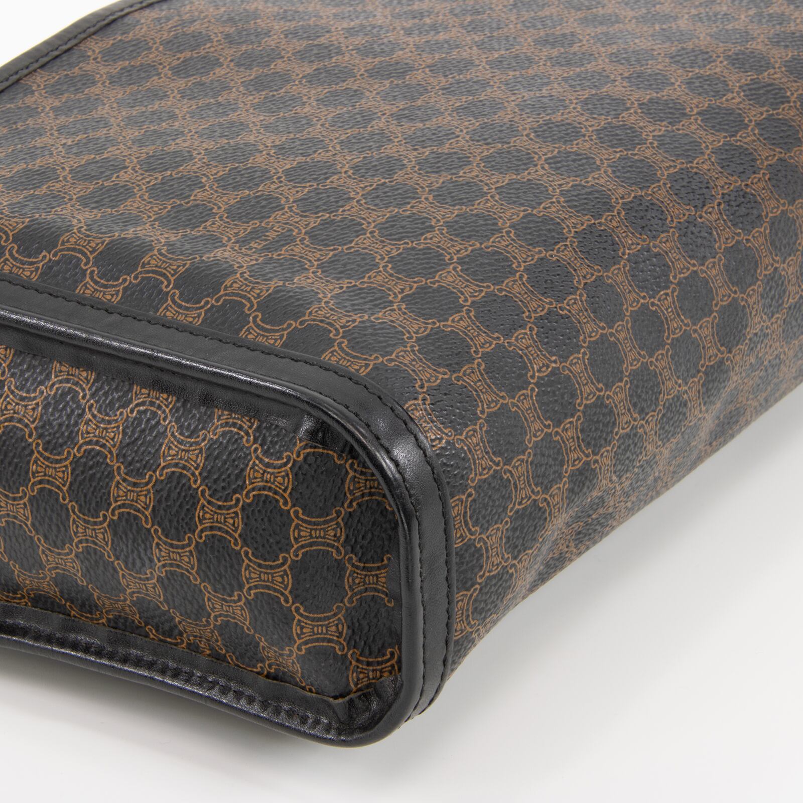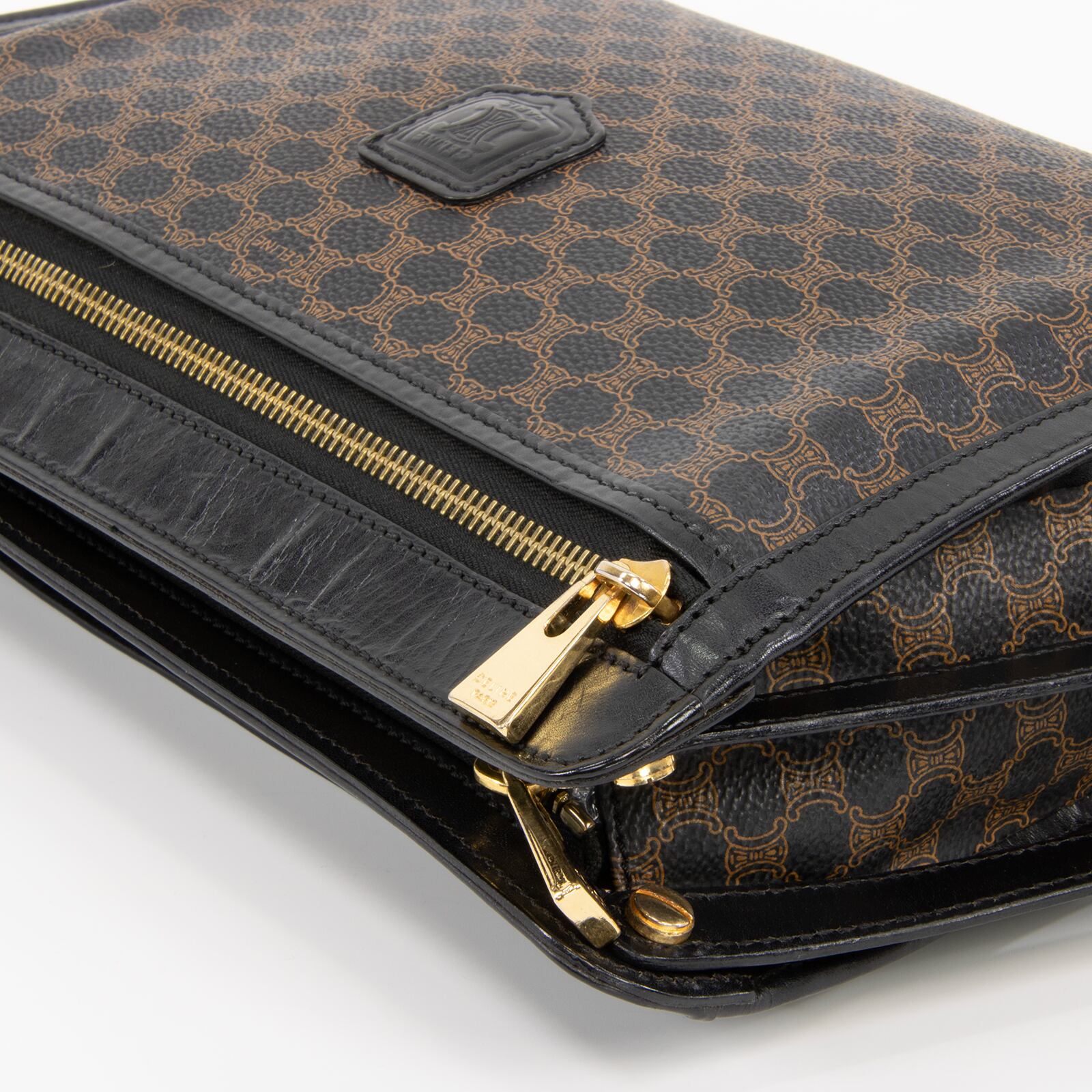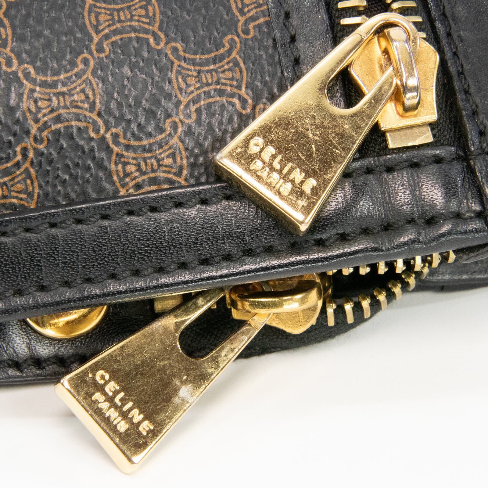 こちらのバッグは大人気ラインのマカダムの中でも、大変希少なブラックカラーのモデルで、セリーヌのロゴをモノグラムのようにあしらったマカダム(ブラゾン)総柄が特徴で、ゴールドカラーのファスナープルや前面のレザーのロゴと相まって、一目でセリーヌとわかる存在感とただならぬ雰囲気が感じられる逸品でございます。