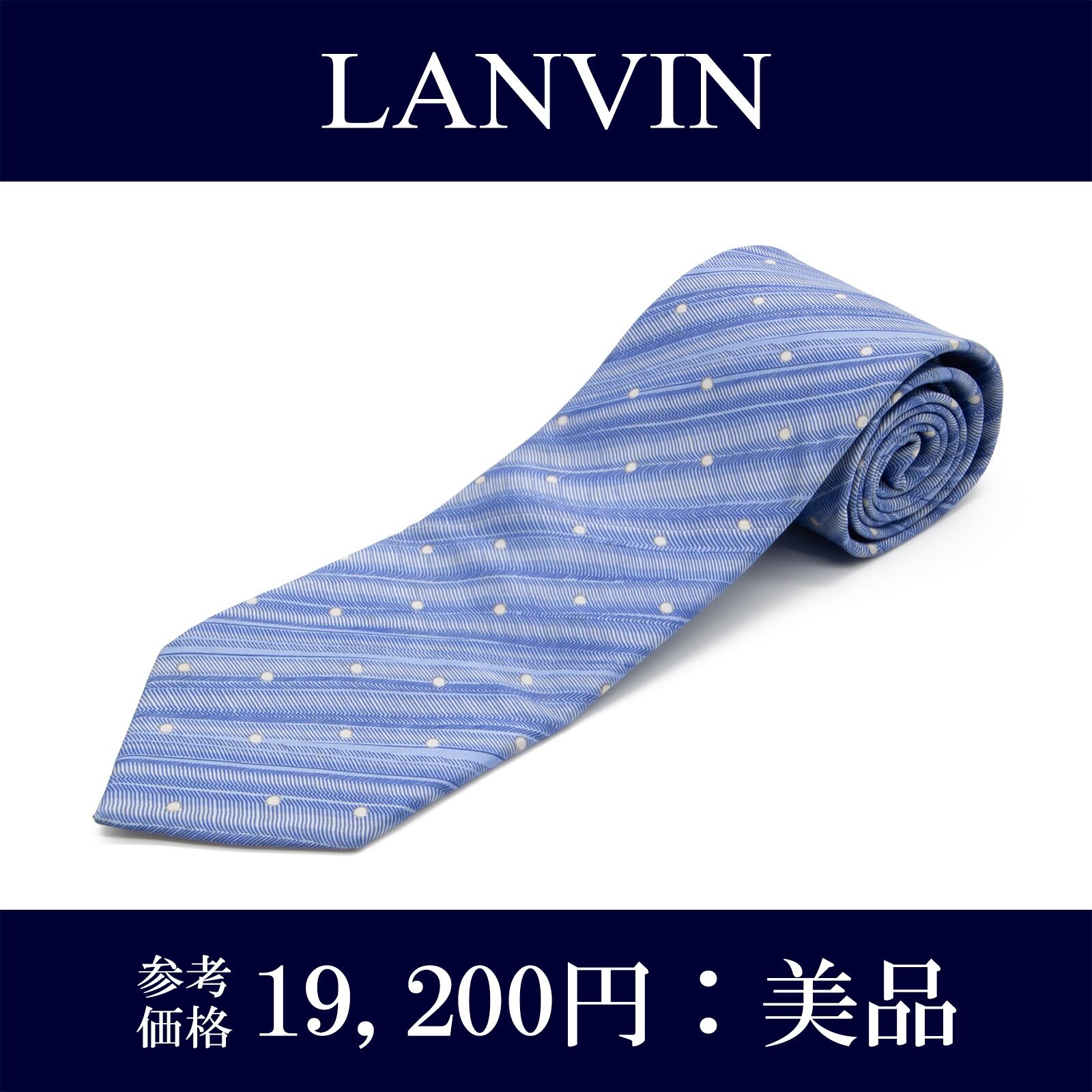 【本物・送料無料・美品】ランバン・ストライプネクタイ(シルク・綺麗・青・ブルー・水色・爽やか・ビジネス・フォーマル・N012)