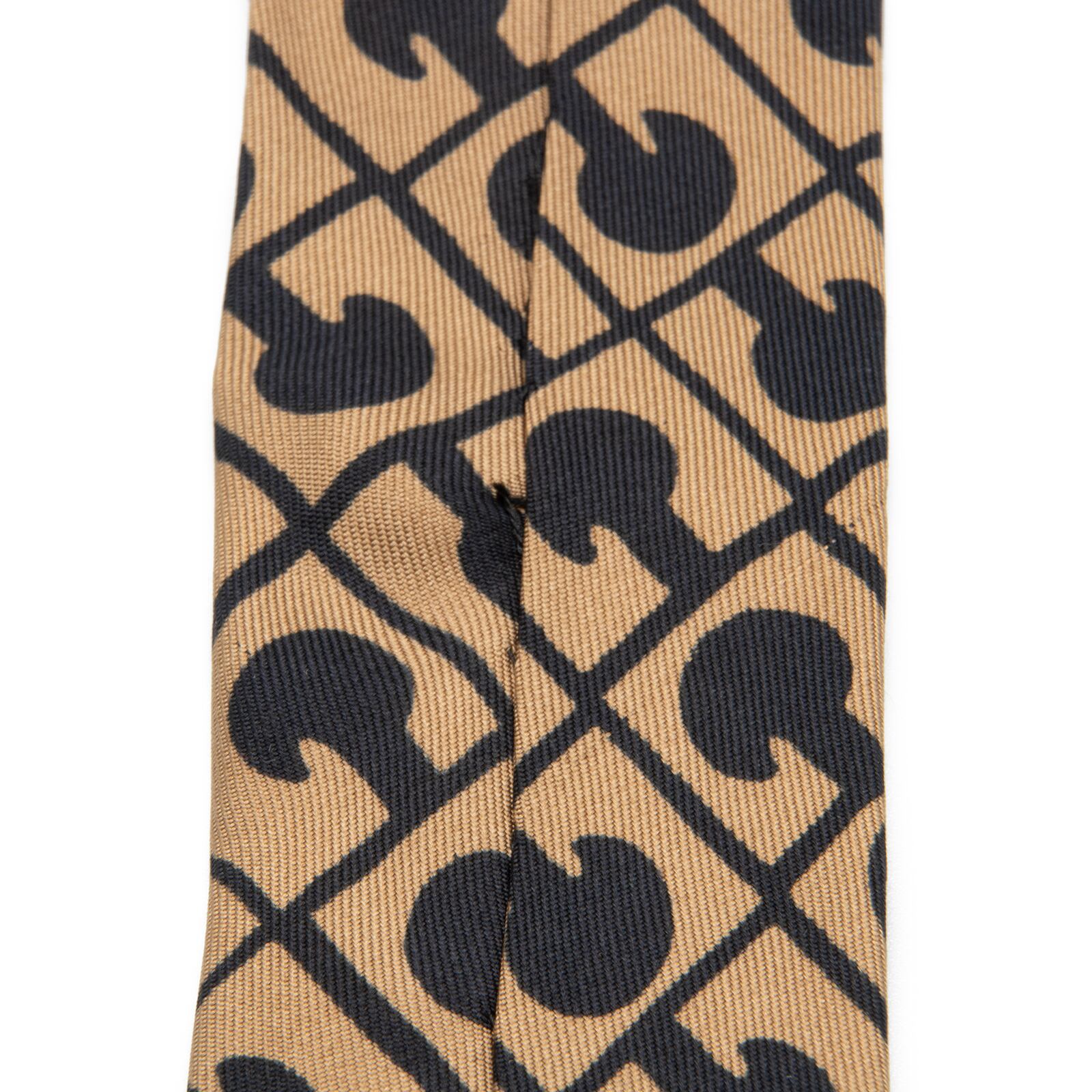 ゲラルディーニのオールオーバーネクタイの中でも大変希少なモデルで、ゲラルディーニのGマークのモノグラムと、最高級シルクのふっくらとした柔らかい肌触りと光沢が相まって、洗練された美しさと一目ゲラルディーニとわかる存在感にうっとりさせられます。