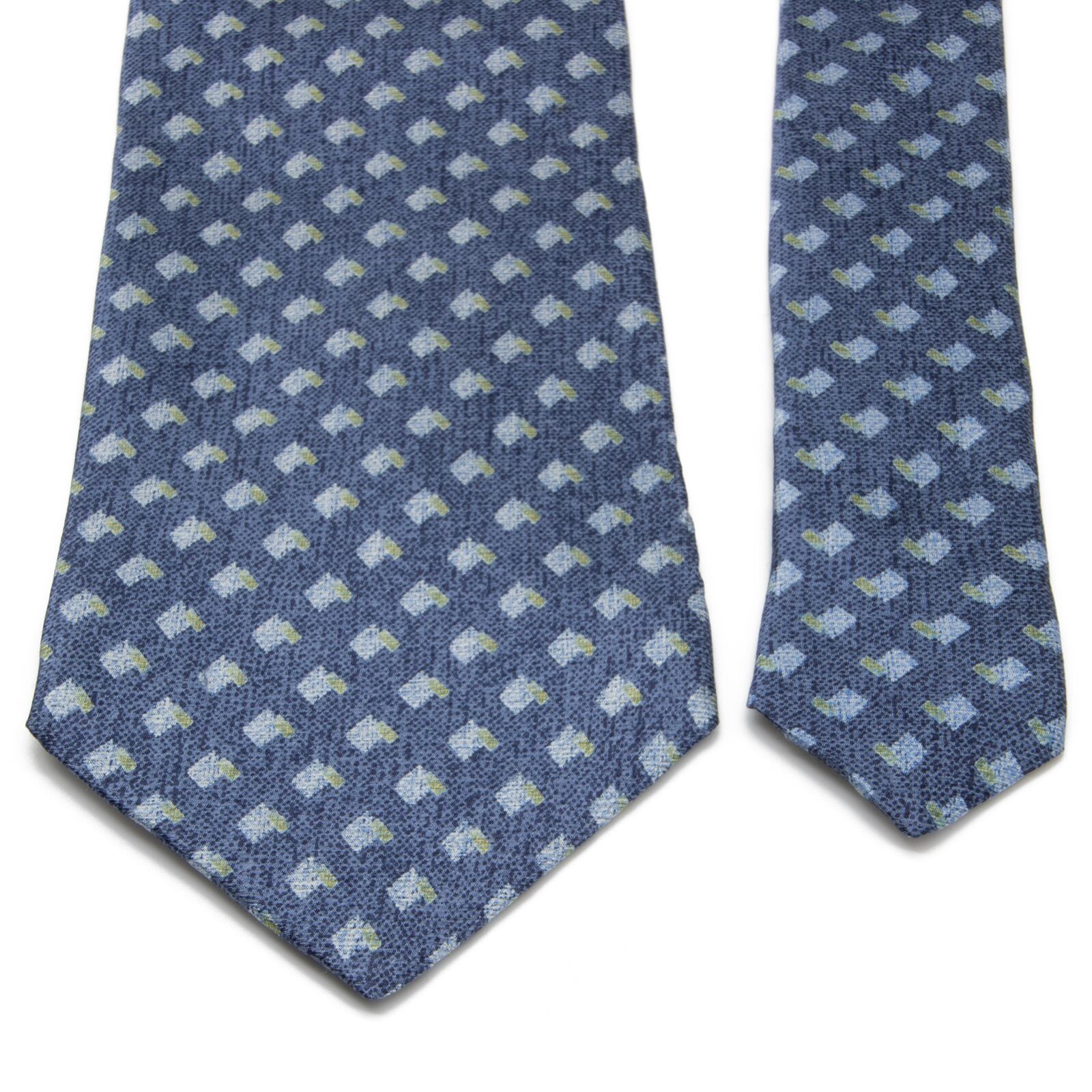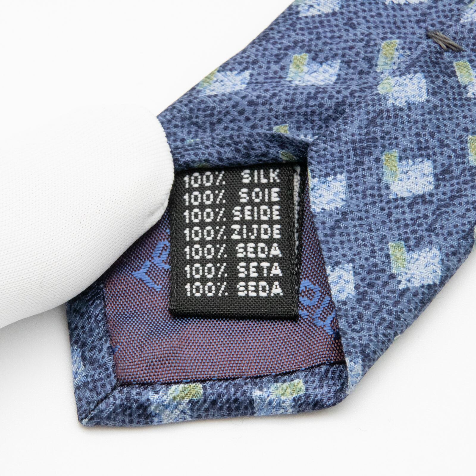 レノマの小紋ネクタイの中でも大変希少なモデルで、その中でも新品のものはさらにとても珍しいです。大剣と小剣の裏には「renoma PARIS」、全面には総柄があしらわれており、最高級シルクのふっくらとした柔らかい肌触りと光沢が相まって、洗練された美しさとただならぬ雰囲気にうっとりさせられます。