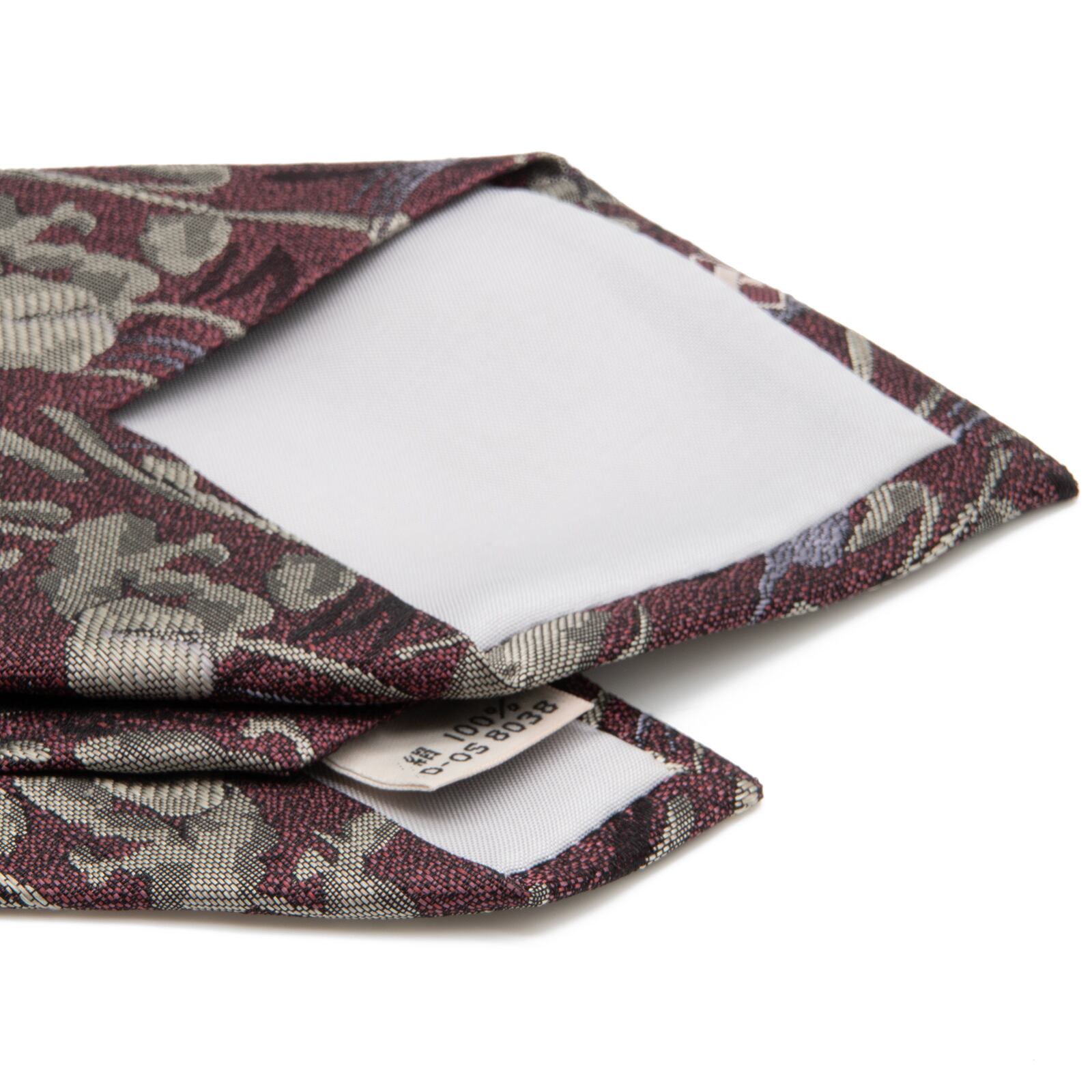 レノマのモチーフパターンネクタイの中でも大変希少なモデルで、その中でも新品のものはさらにとても珍しいです。大剣の表にはレノマの「r」マーク、全面には花々があしらわれており、最高級シルクのふっくらとした柔らかい肌触りと光沢が相まって、洗練された美しさとただならぬ雰囲気にうっとりさせられます。