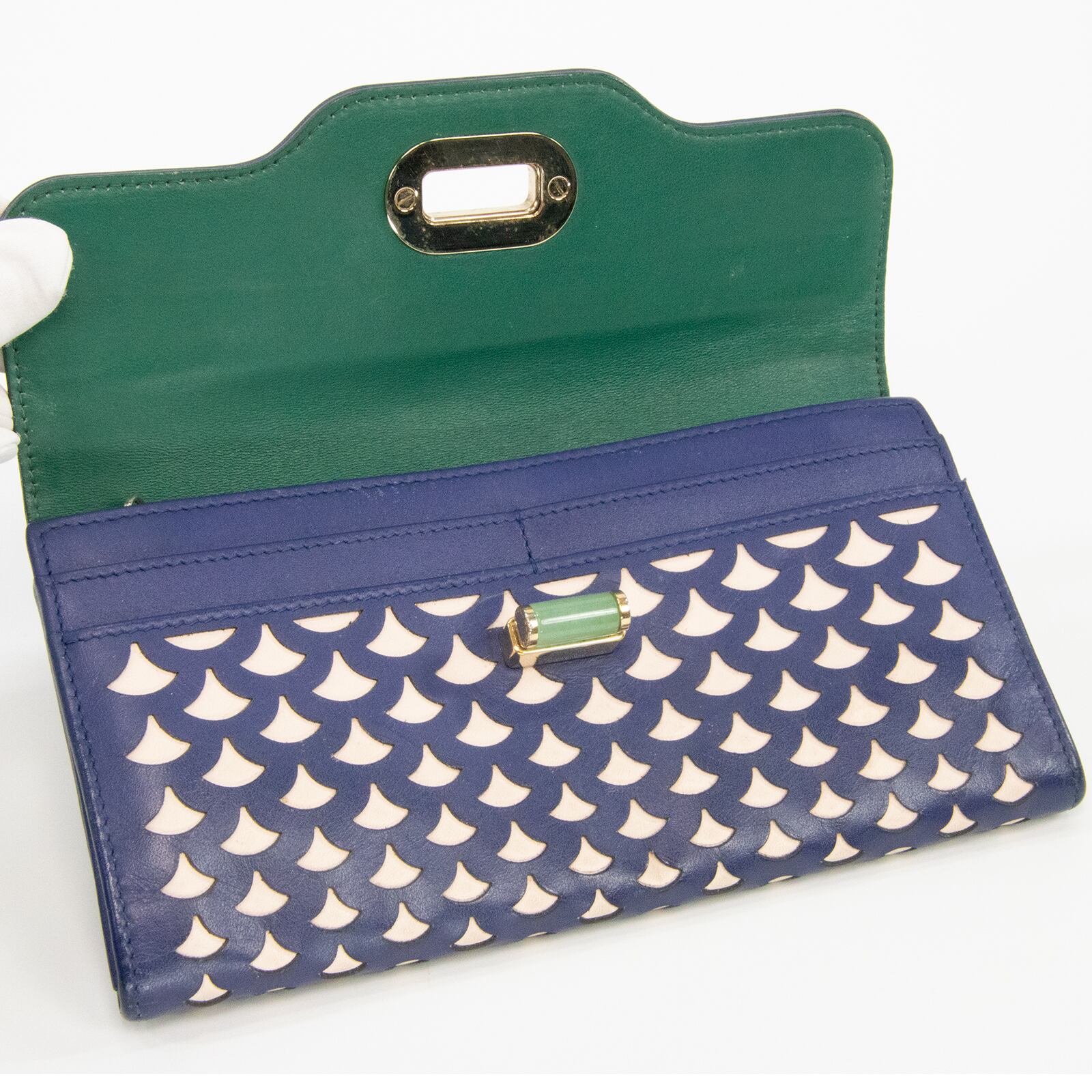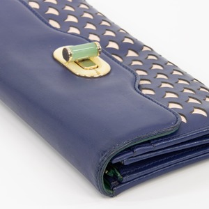 【本物・送料無料・良品】ブルガリ・長財布・二つ折り財布(イザベラ・ロッセリーニ・人気・レア・天然石・ネイビーブルー・C173)