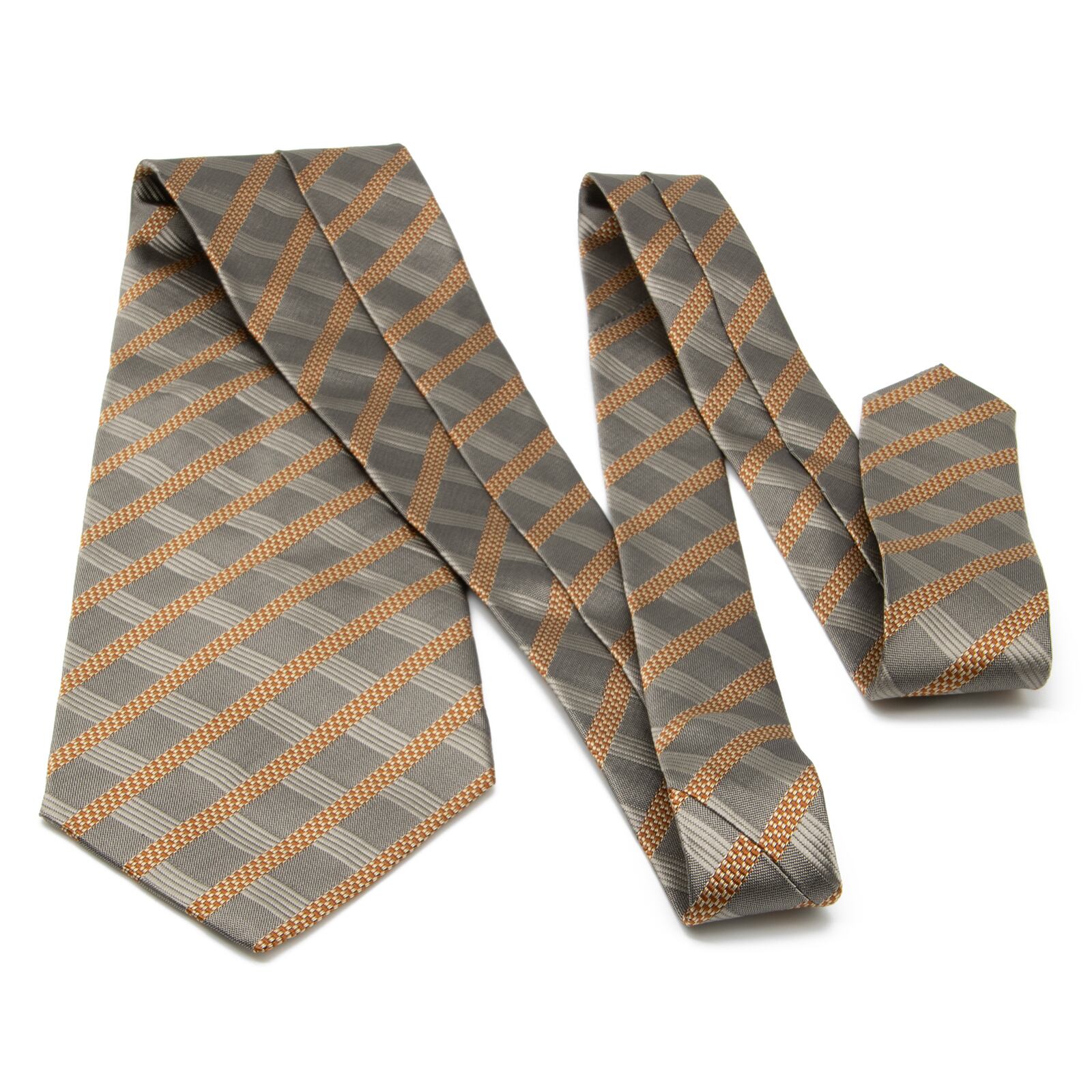 クレージュのストライプネクタイの中でも大変希少なモデルで、全体的にシルバーカラーでありながら、繊細なブラウンカラーのストライプによって、落ち着いた大人の魅力を演出しており、最高級シルクのふっくらとした柔らかい肌触りと光沢が相まって、洗練された美しさと存在感にうっとりさせられます。