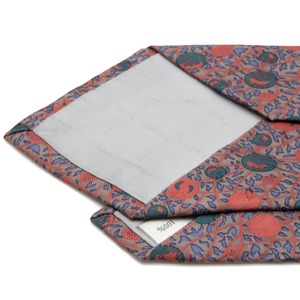 チタファッシーノのエスニックパターンネクタイの中でも大変希少なモデルで、その中でも新品同様のものはさらにとても珍しいです。和風の色で彩られた繊細な植物たちが、ただならぬ雰囲気を演出しており、最高級シルクのふっくらとした柔らかい肌触りと光沢が相まって、洗練された美しさと存在感にうっとりさせられます。