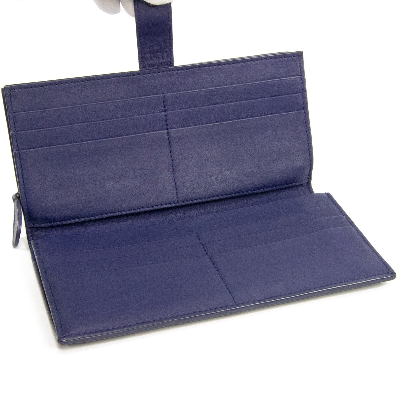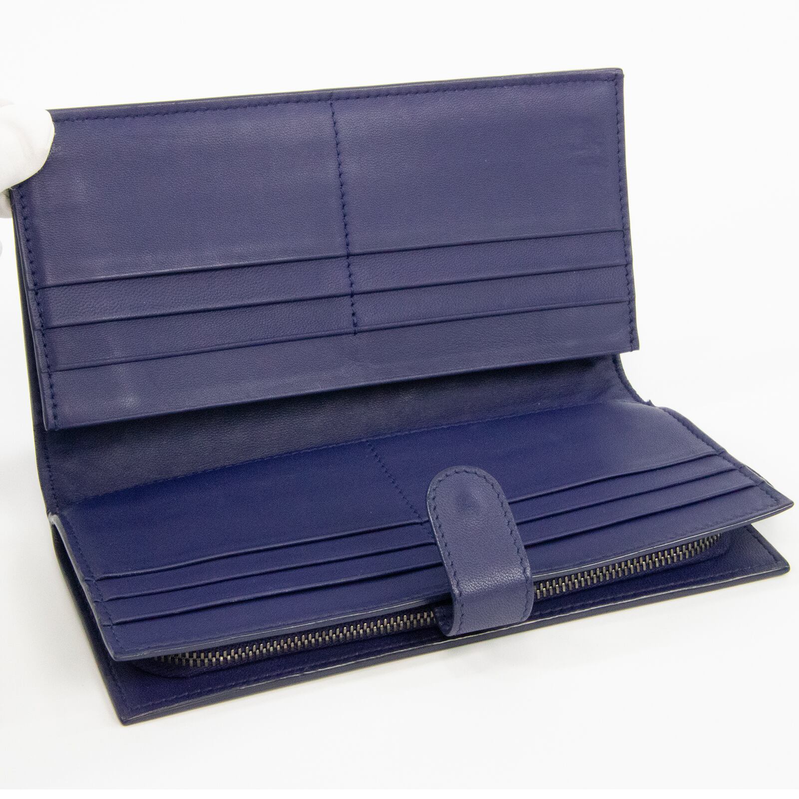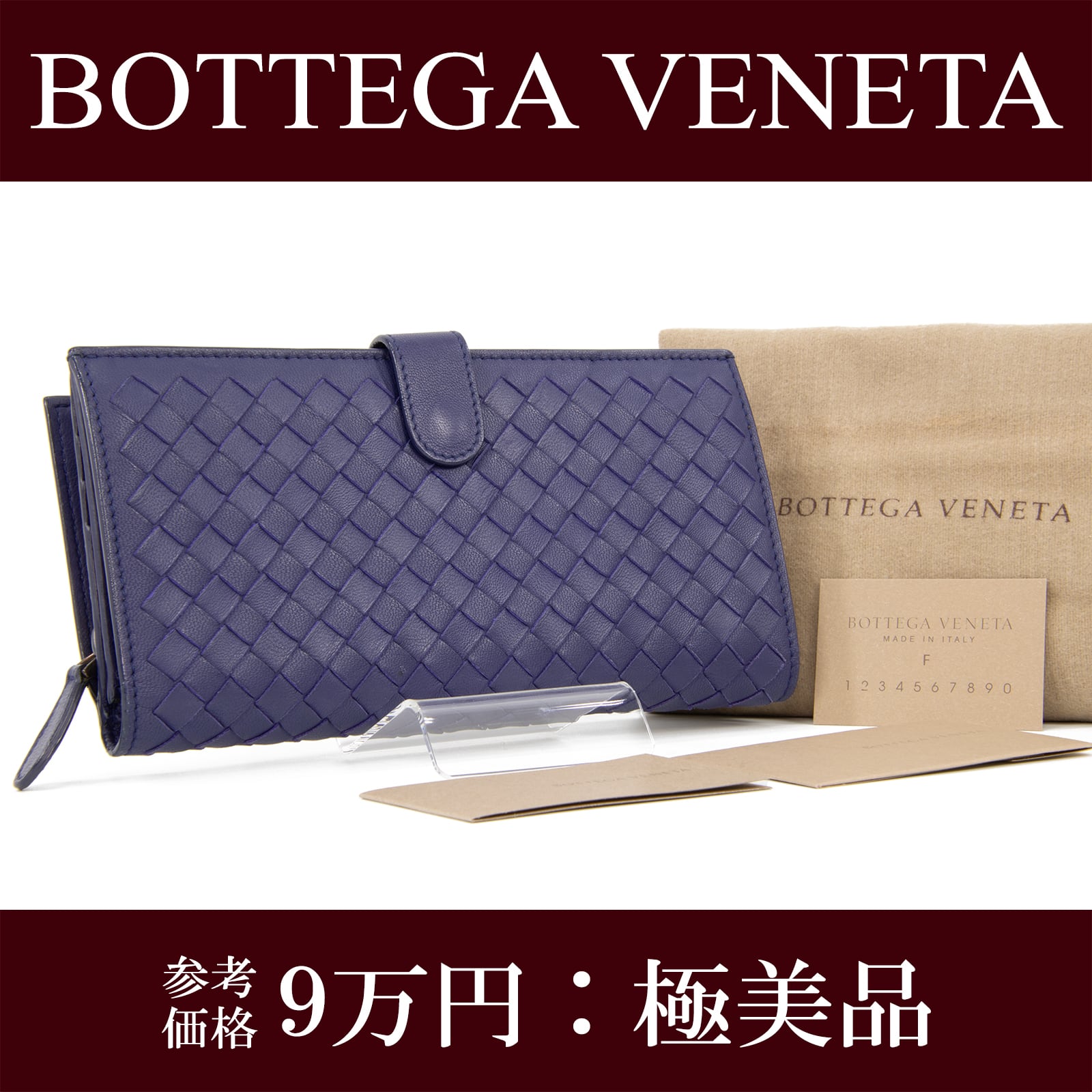 【本物・送料無料・極美品】ボッテガ・長財布・二つ折り財布(イントレチャート・人気・レア・綺麗・青・ブルー・ラムスキン・G067)