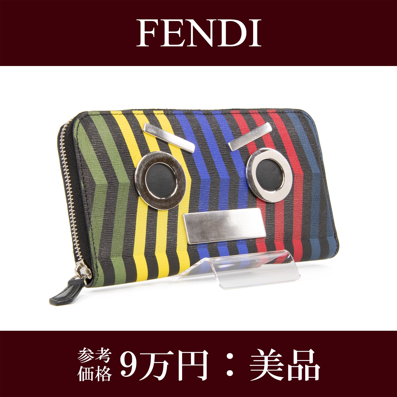 【本物・送料無料・美品】フェンディ・長財布・ラウンドファスナー(フェイス・ノーワーズ・人気・綺麗・レア・秋冬・変な顔・G068)