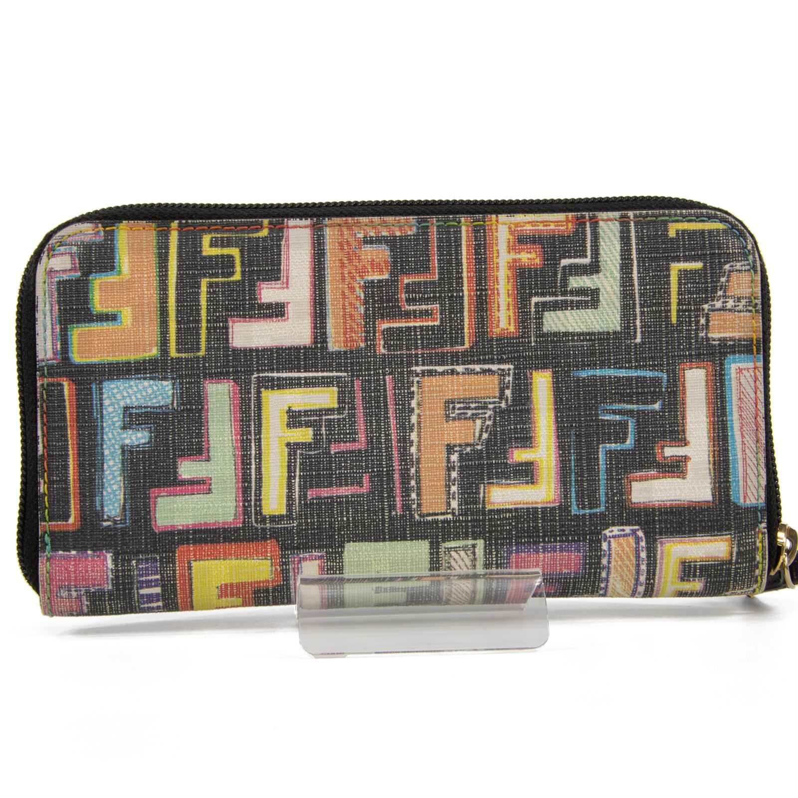 【本物・送料無料・外側極美品】フェンディ・長財布・ラウンドファスナー(ズッカ・人気・レア・マルチカラー・カラフル・C179)