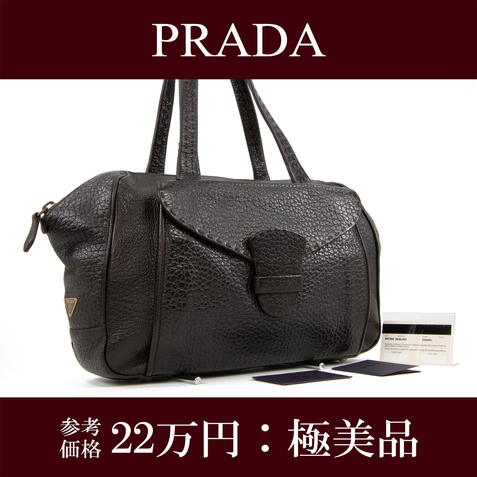 【本物・送料無料・極美品】プラダ・ハンドバッグ(ベルリン・綺麗・レア・ハイクラス・カーフ・茶色・ブラウン・鞄・バック・E323)