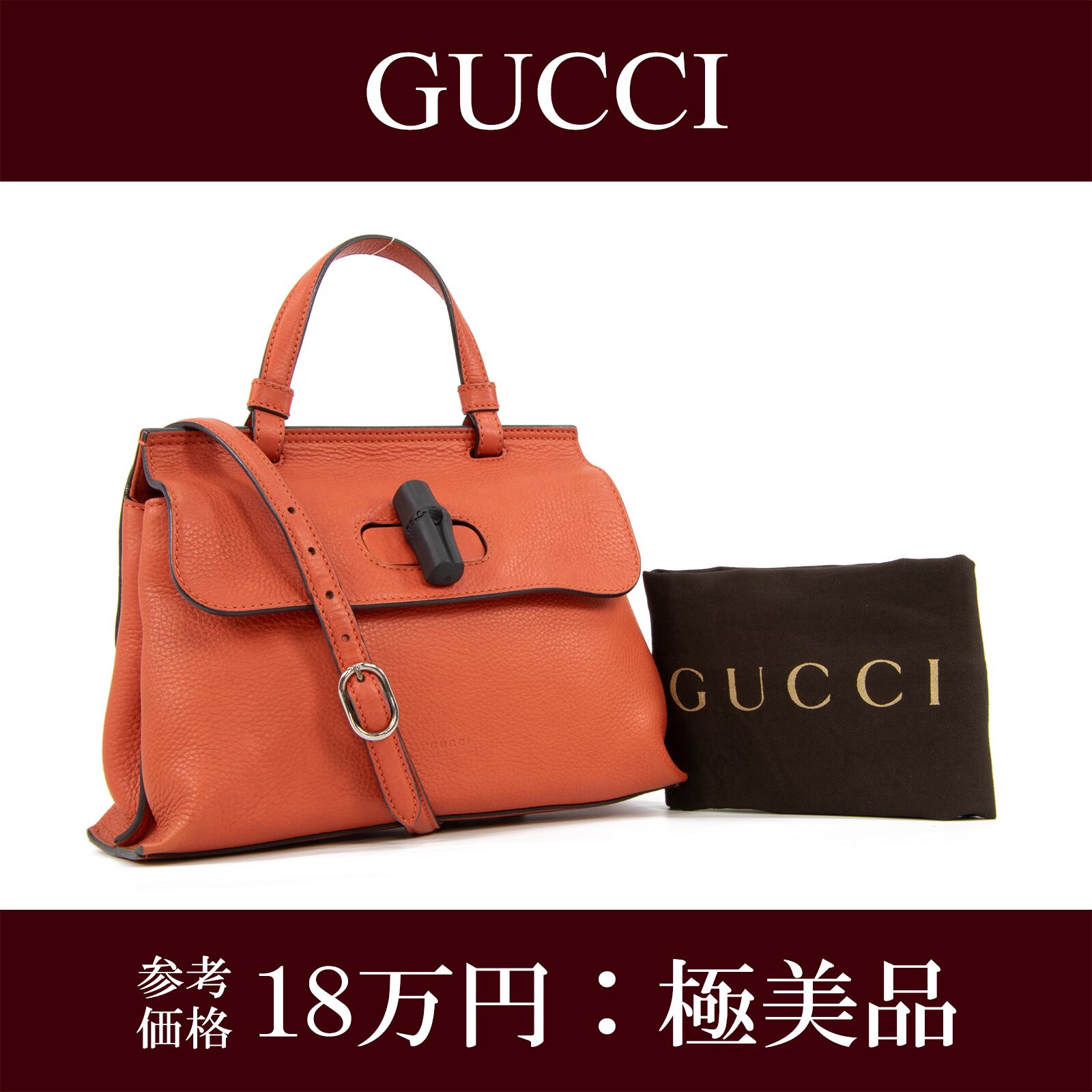 【本物・送料無料・極美品】グッチ・2WAYショルダーバッグ(バンブーデイリー・人気・綺麗・斜め掛け・スカーレット・バック・E324)