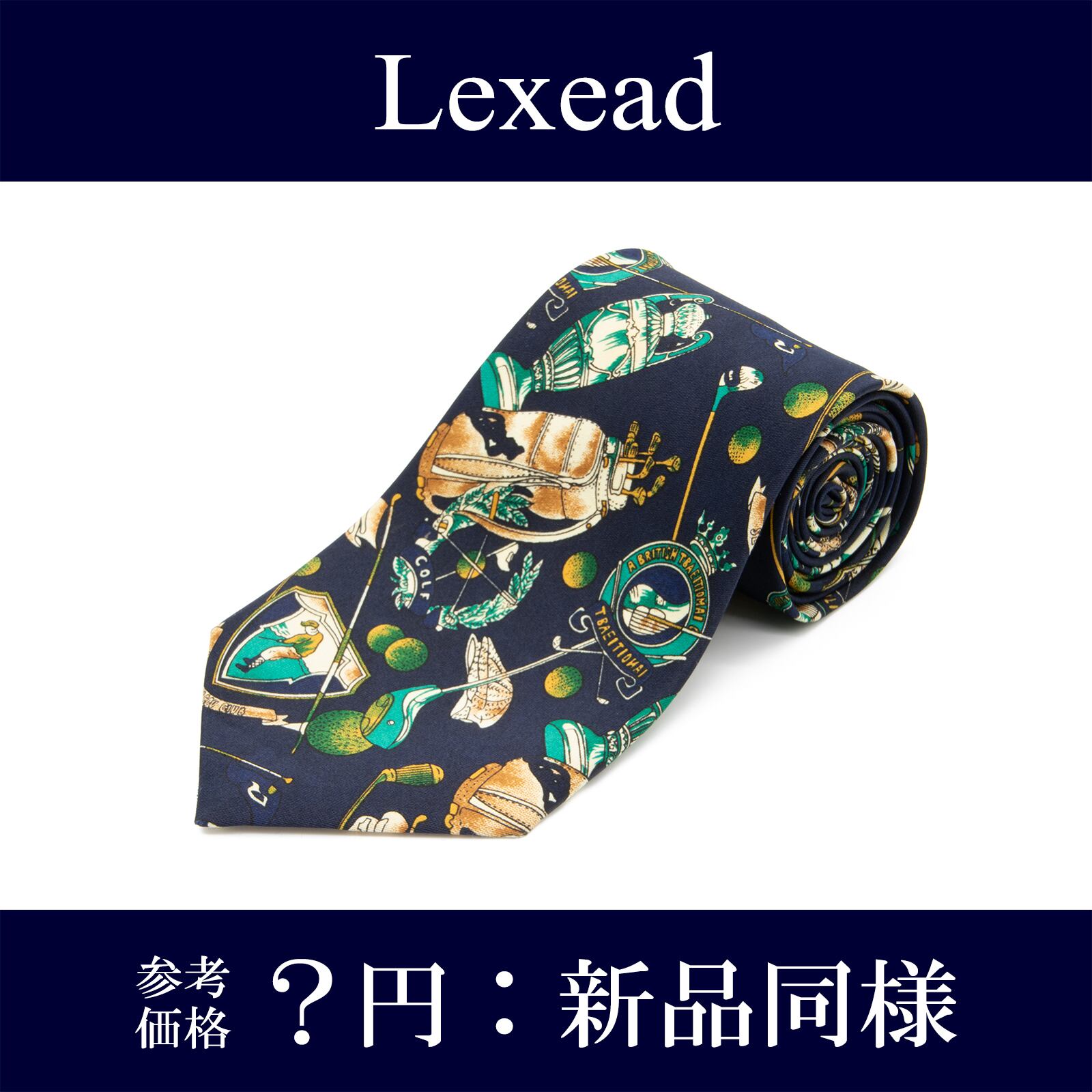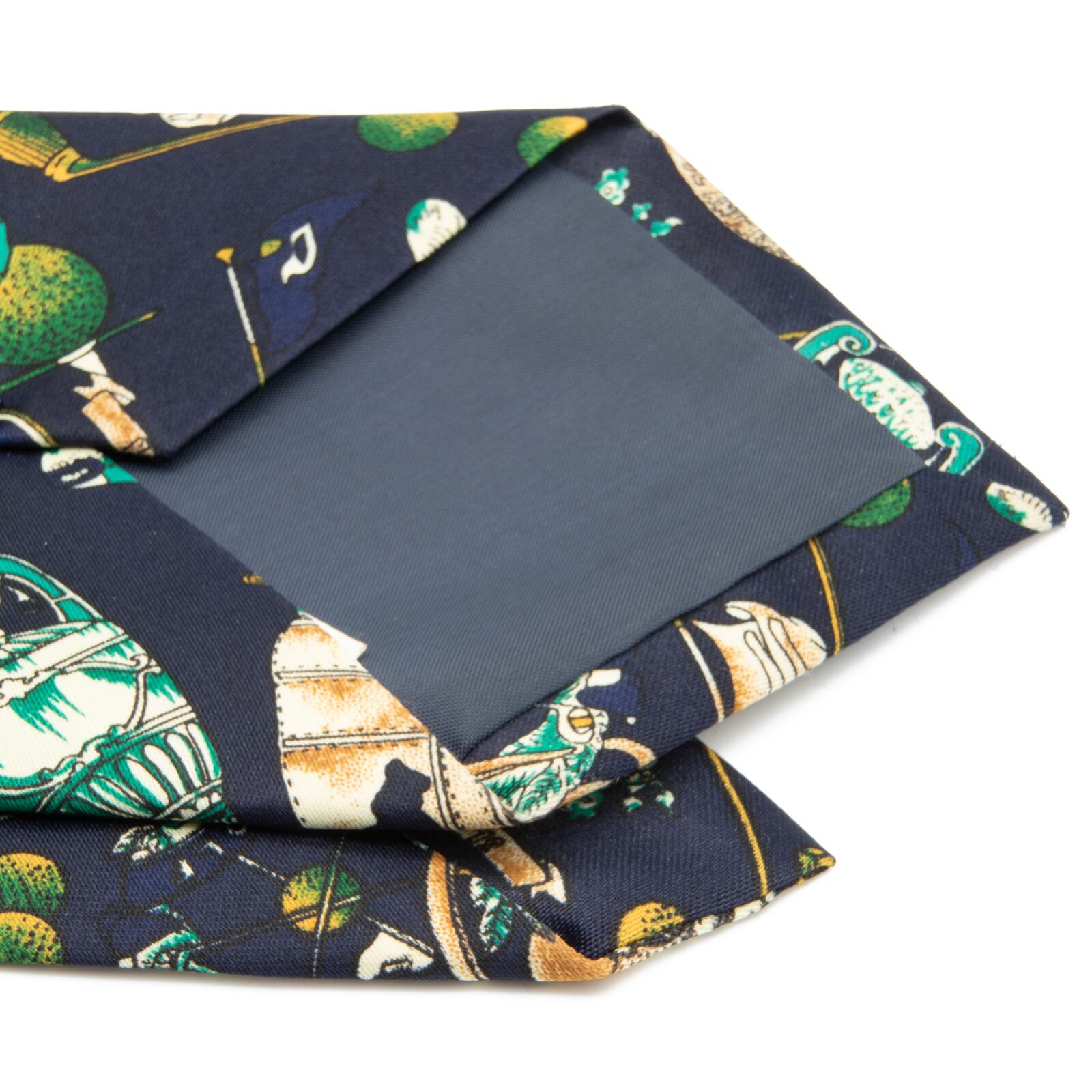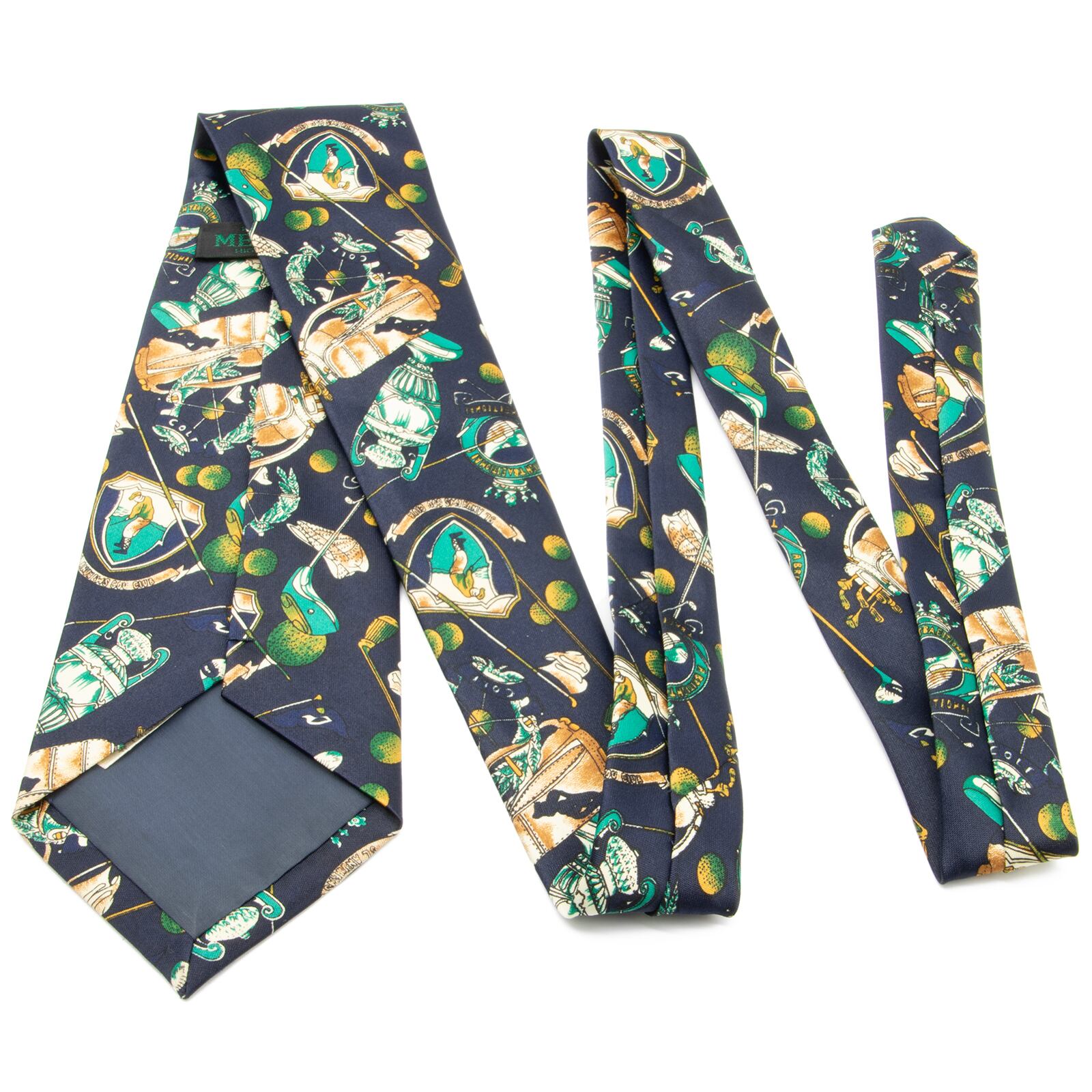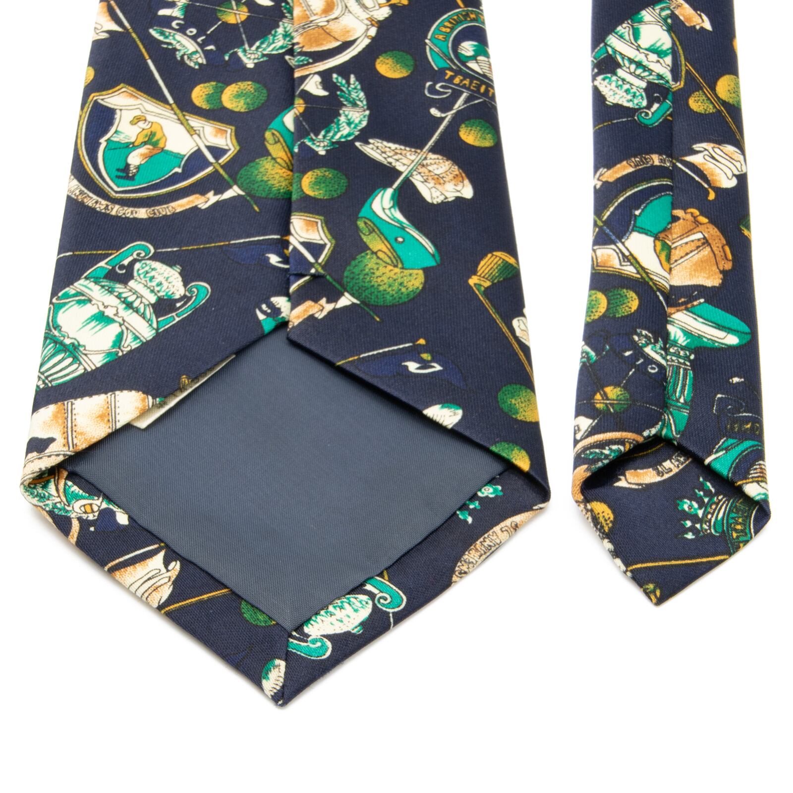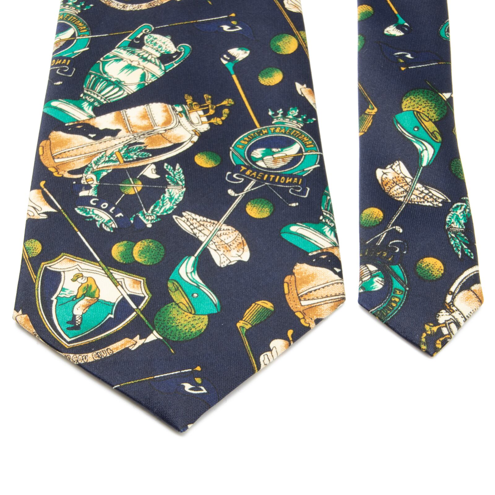 【本物・送料無料・新品同様】メルセデス・オールオーバーネクタイ(シルク・綺麗・ゴルフ柄・紺色・グリーン・カジュアル・N194)