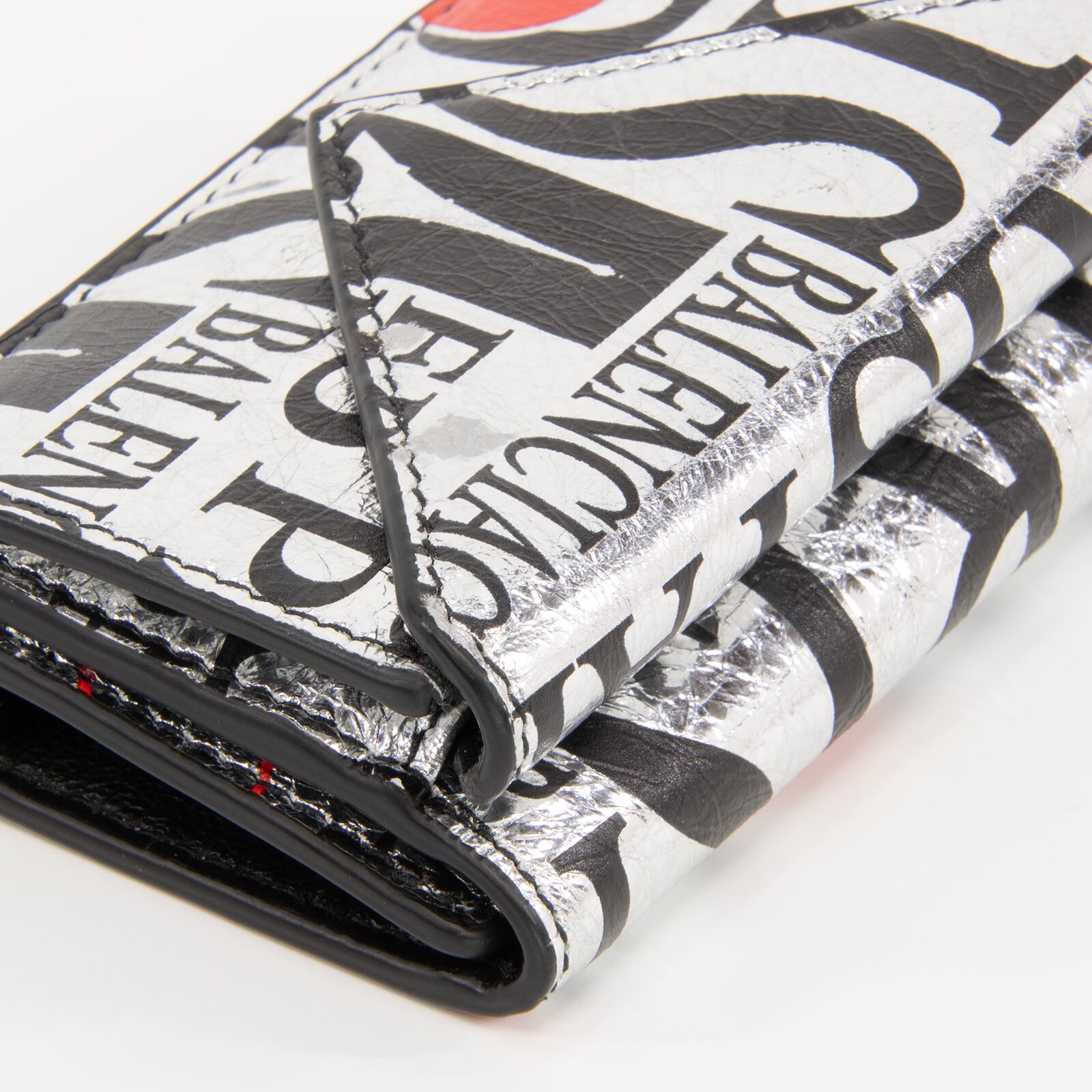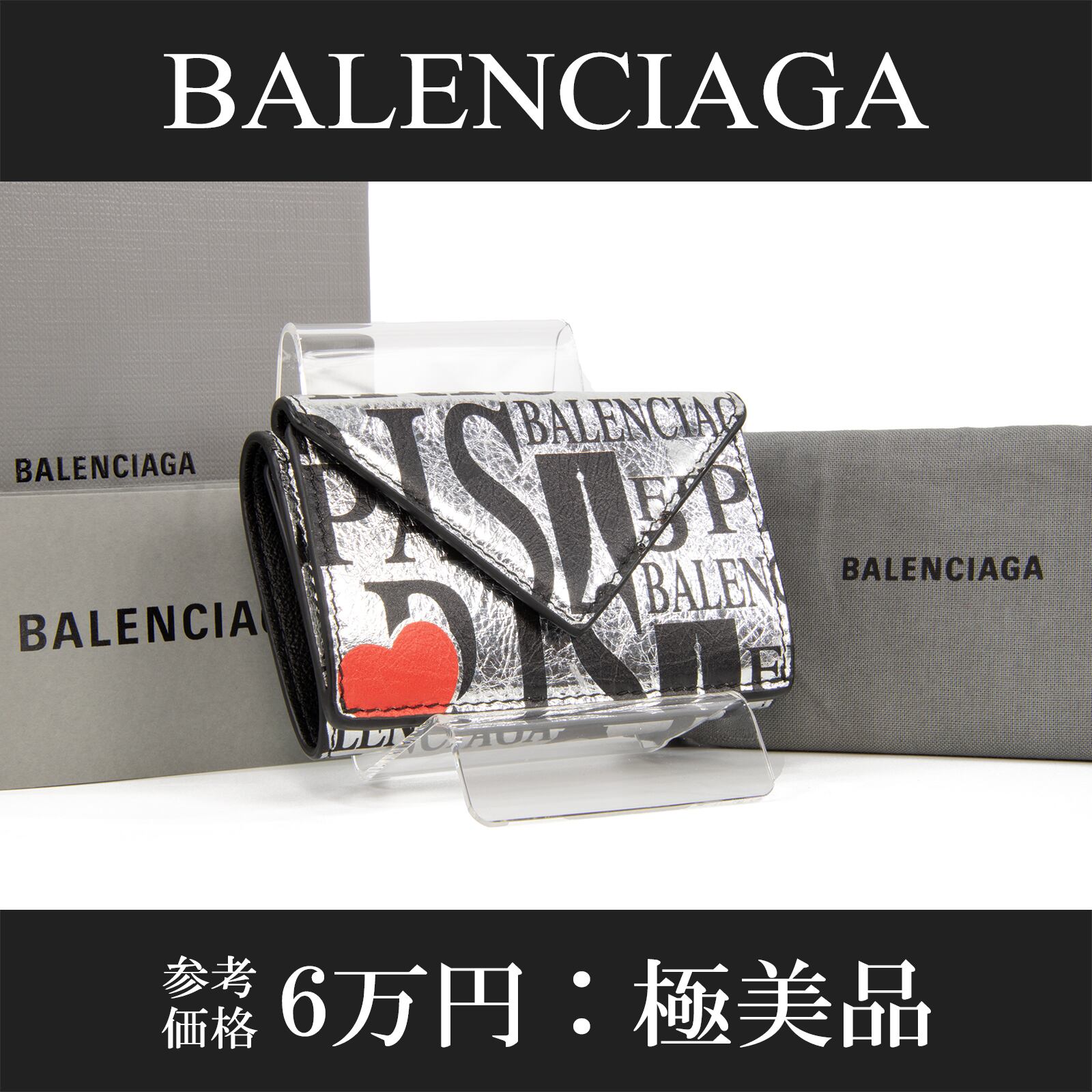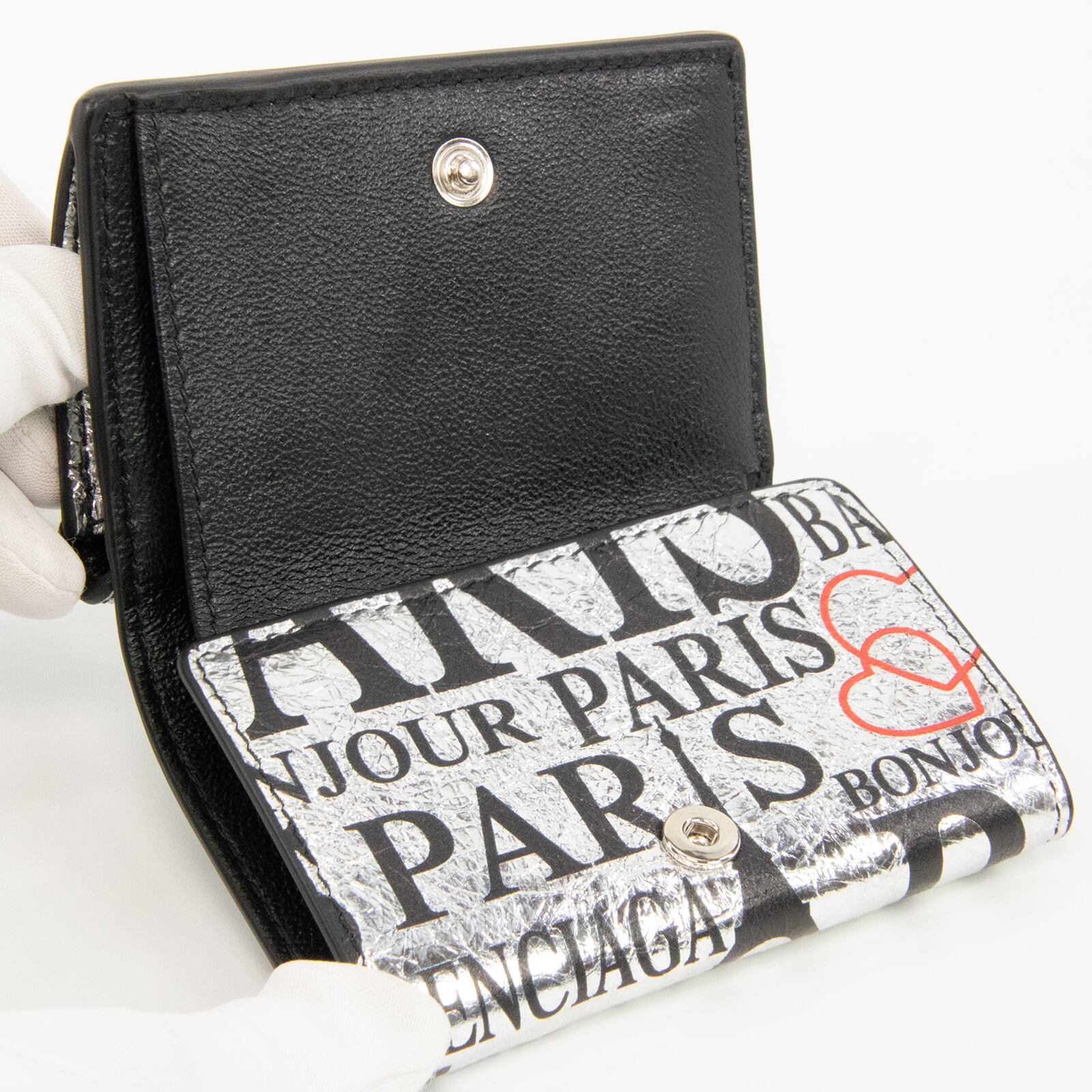 【本物・送料無料・極美品】バレンシアガ・短財布・三つ折り財布(ペーパー ミニウォレット・綺麗・レア・銀色・シルバー・D155)