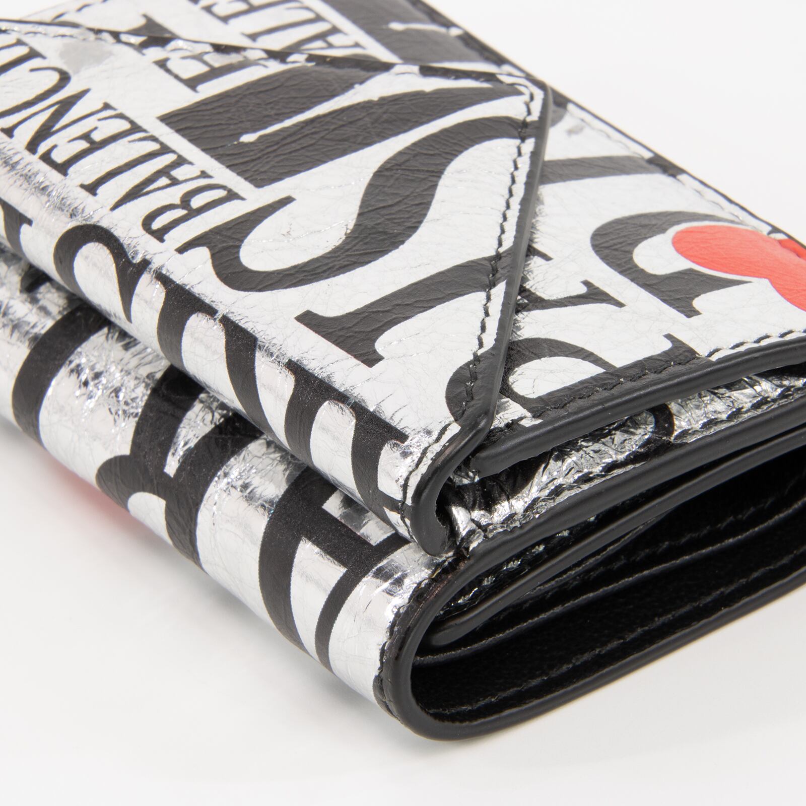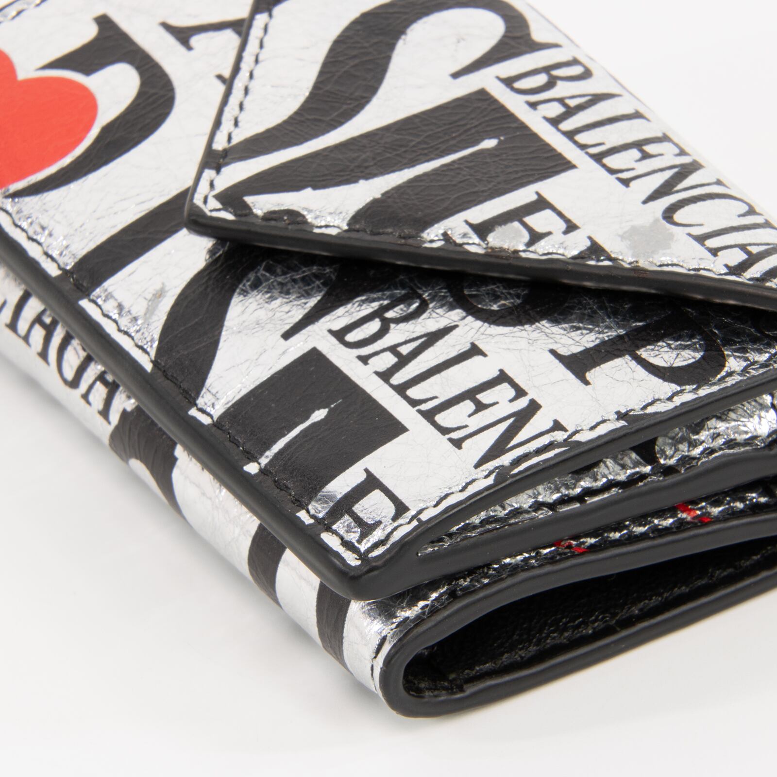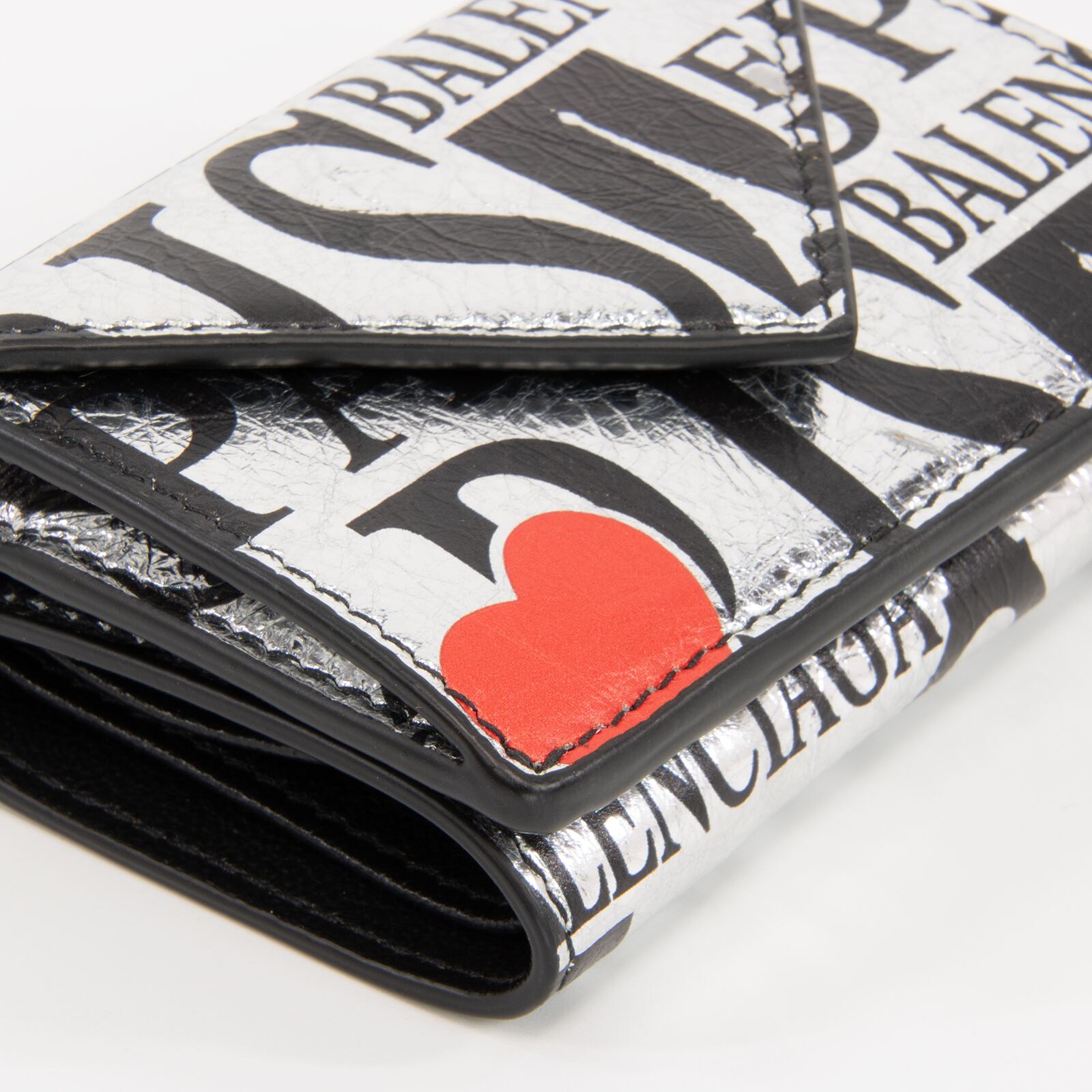 【本物・送料無料・極美品】バレンシアガ・短財布・三つ折り財布(ペーパー ミニウォレット・綺麗・レア・銀色・シルバー・D155)