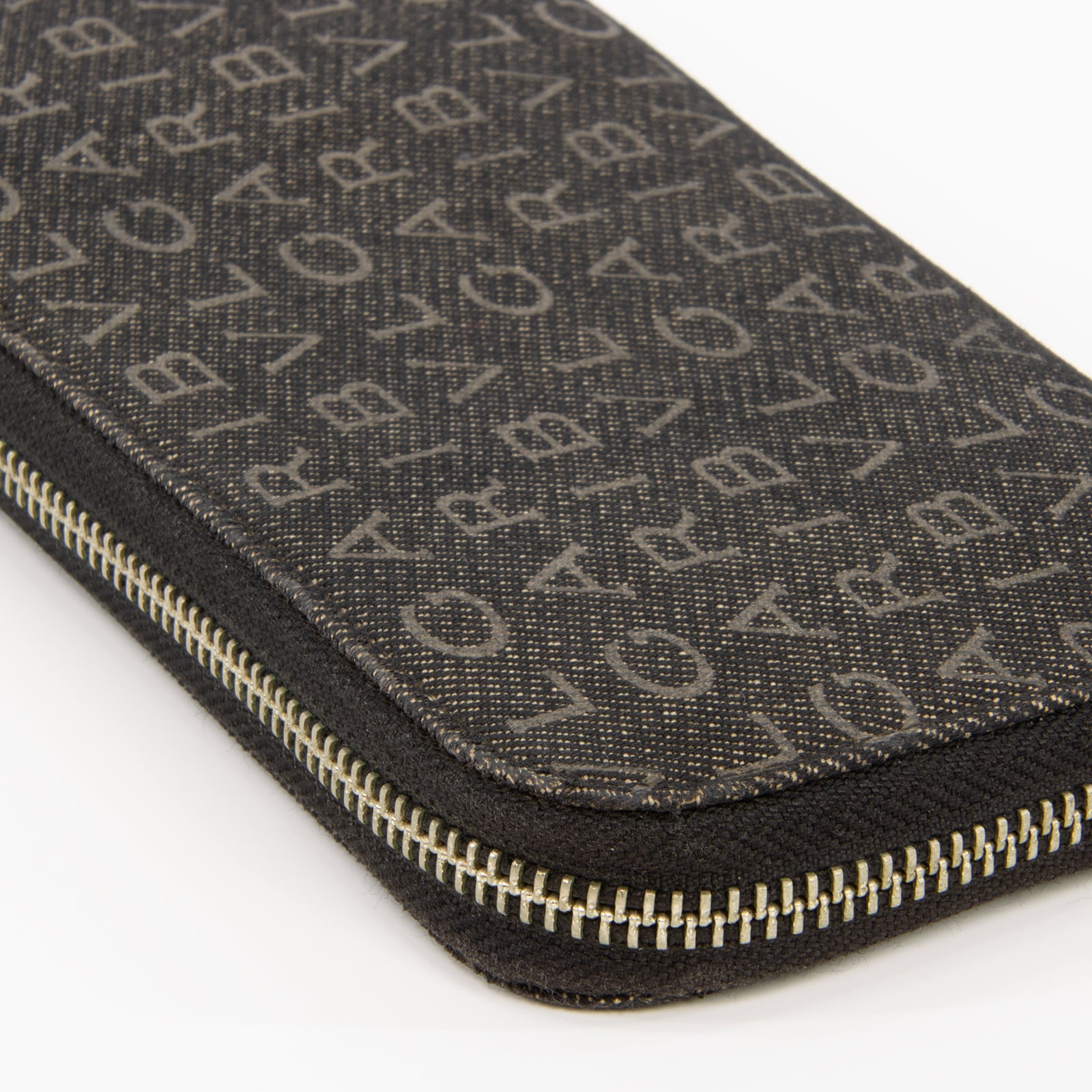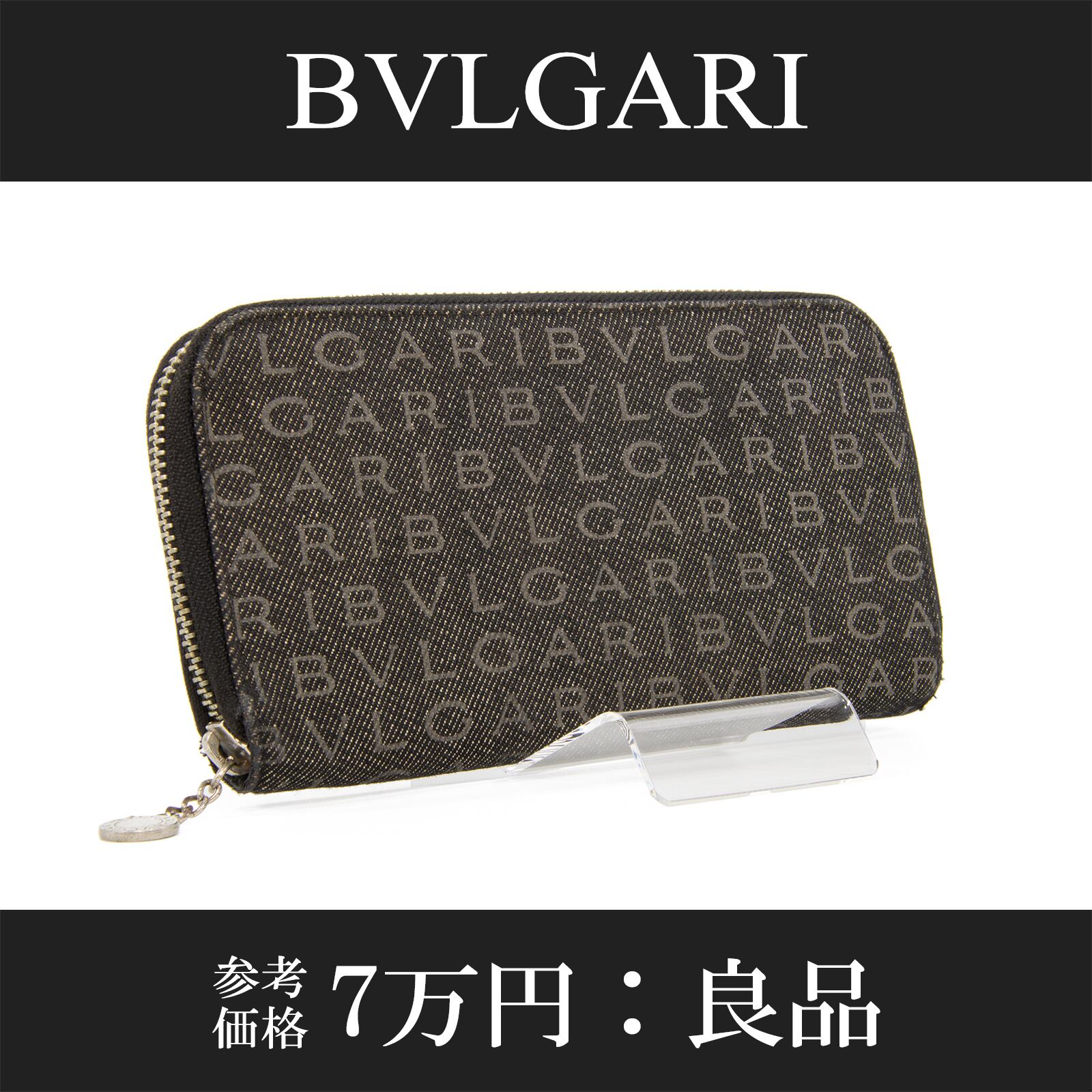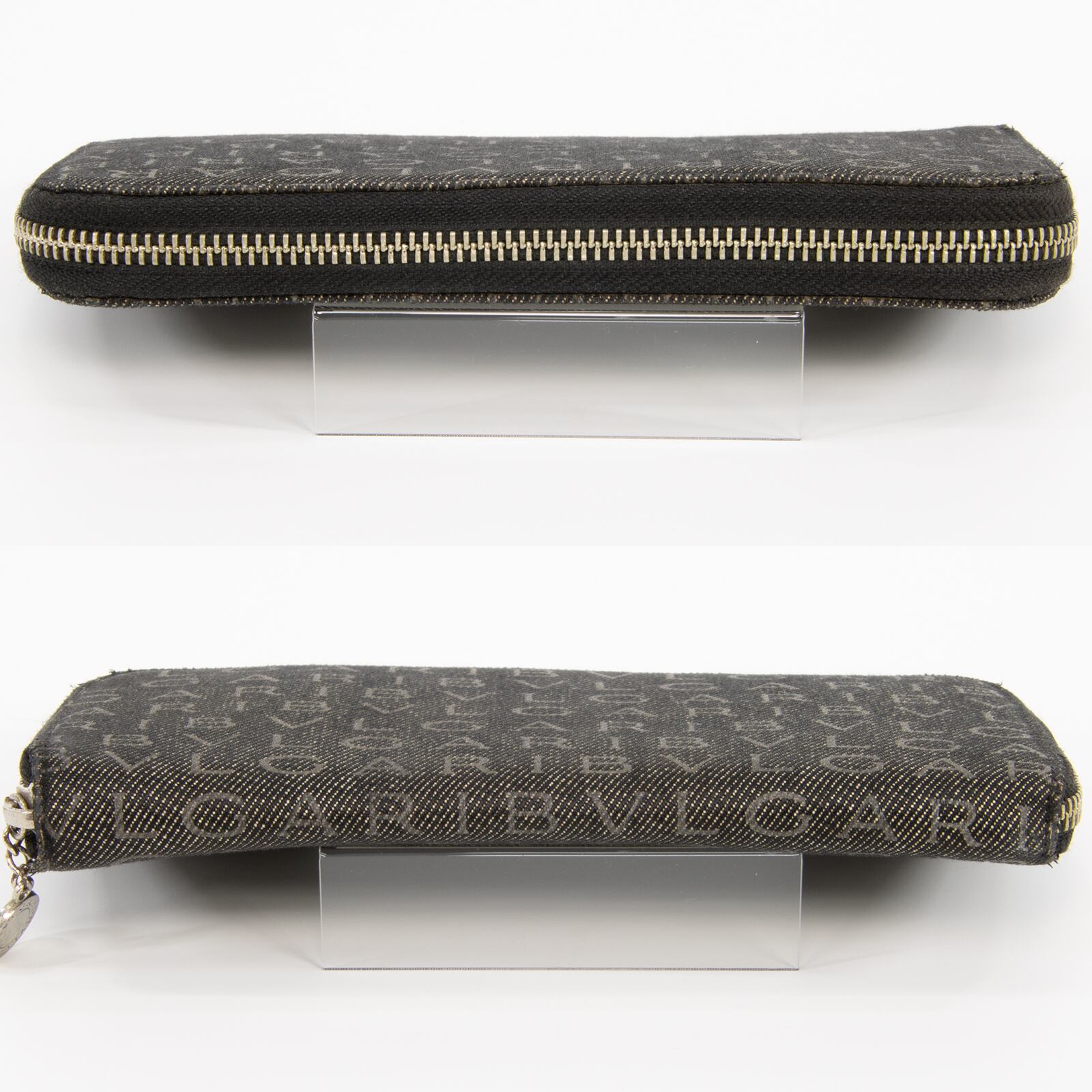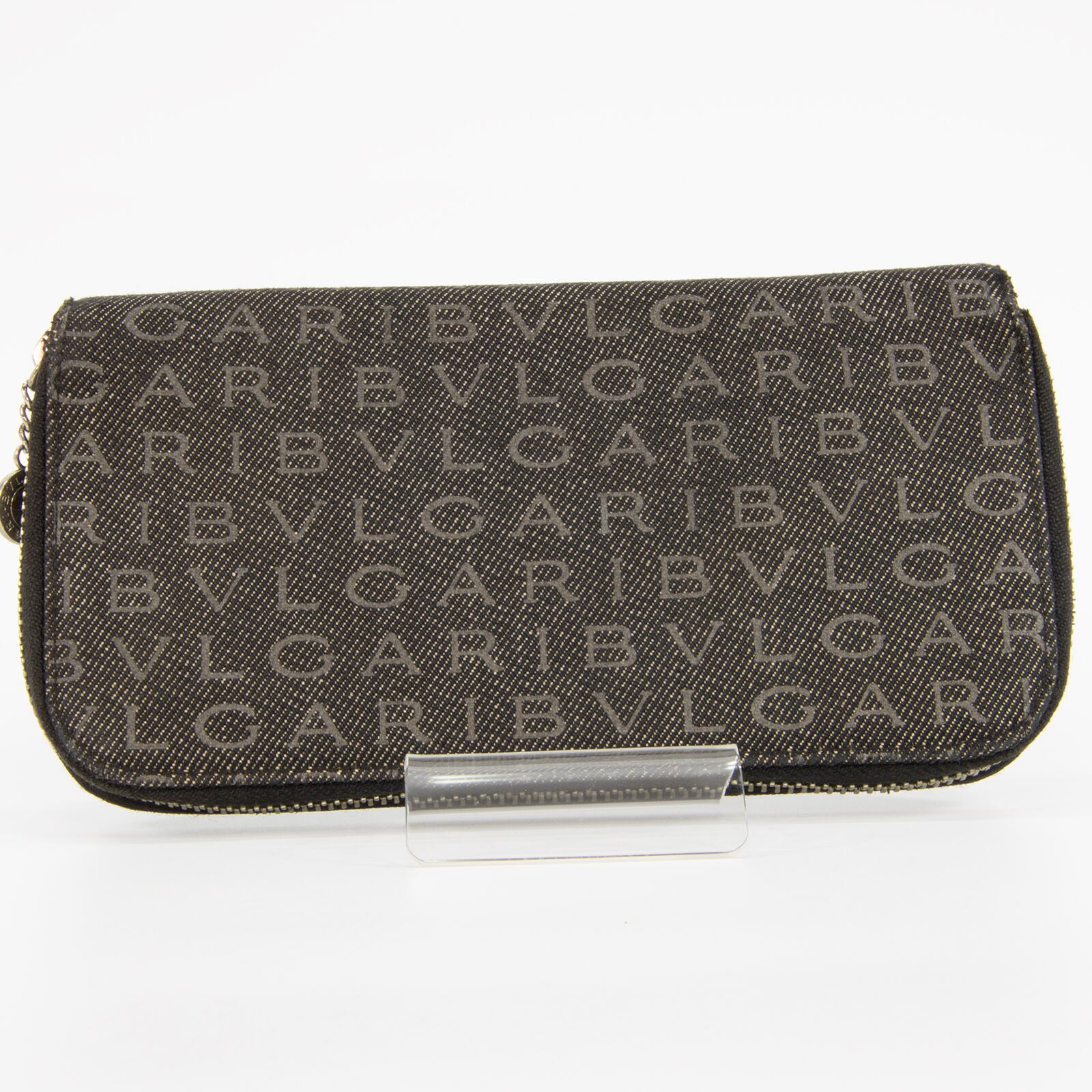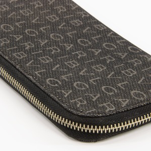 【本物・送料無料・良品】ブルガリ・長財布・ラウンドファスナー(ロゴマニア・人気・総柄・キャンバス・灰色・グレー・D156)
