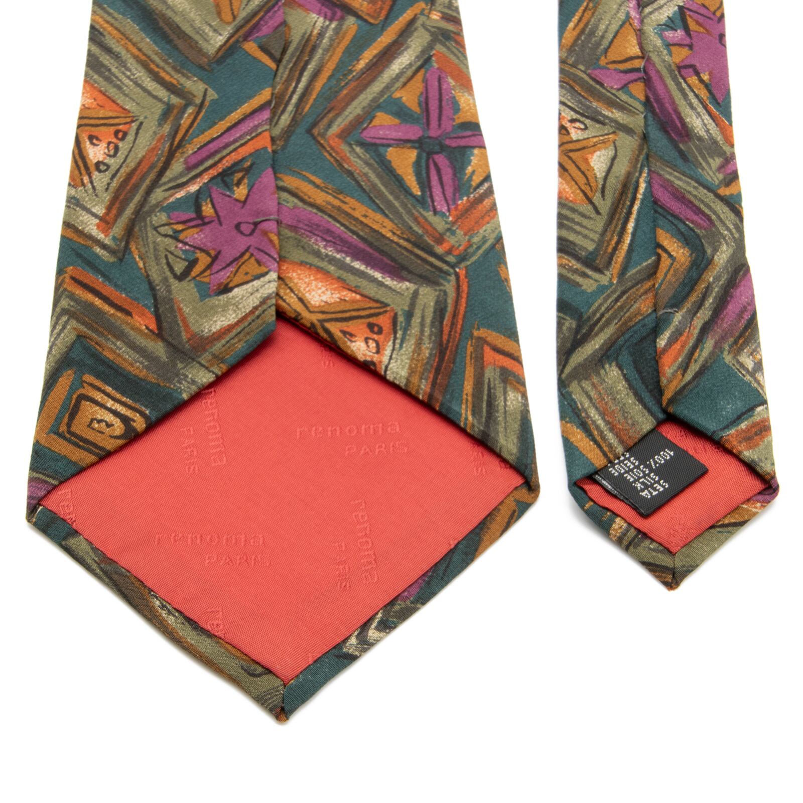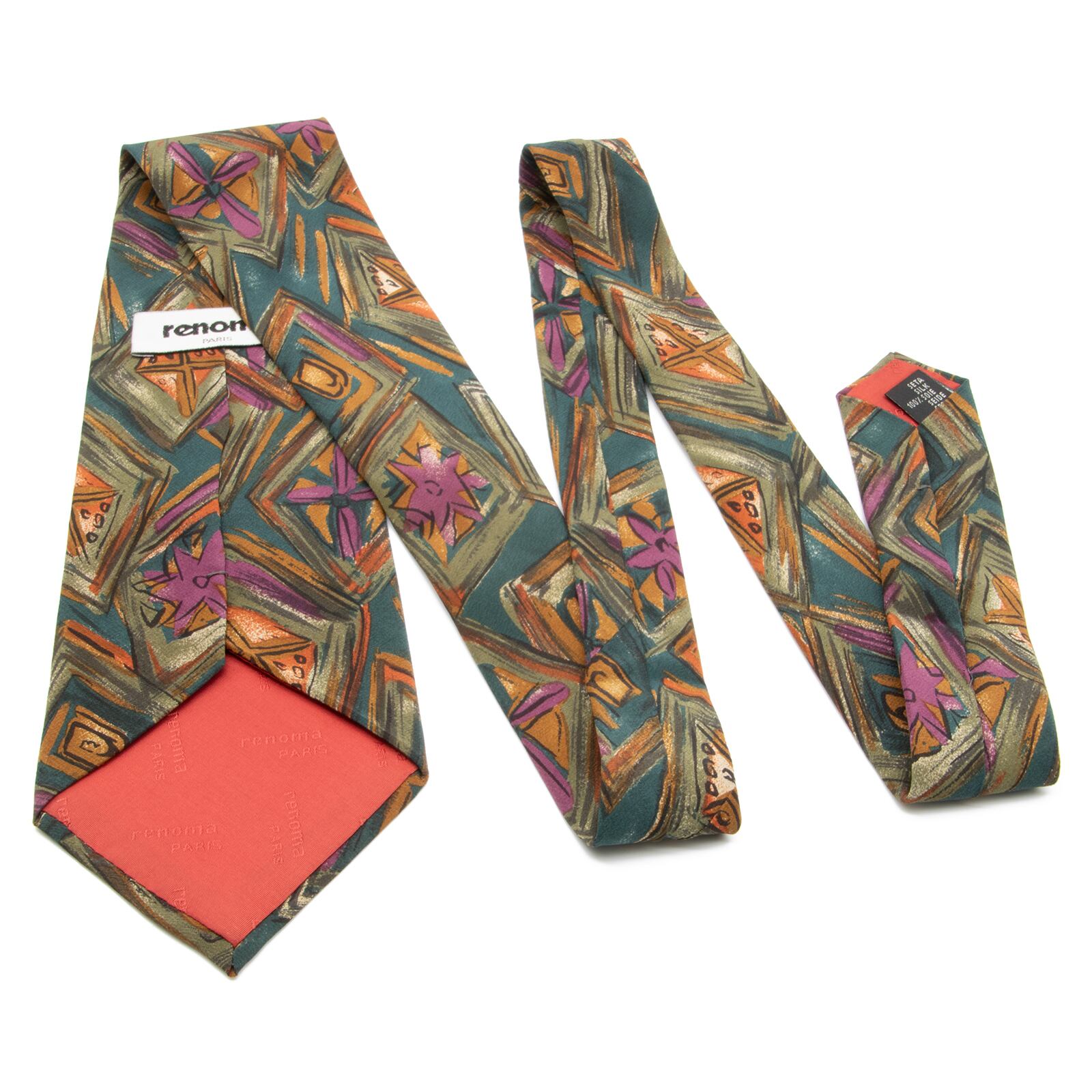 【本物 送料無料】レノマ ネクタイ ワイドタイ 新品同様 ブランド シルク 緑色 グリーン 茶色 紫色 ビジネス イタリア製 綺麗 N129