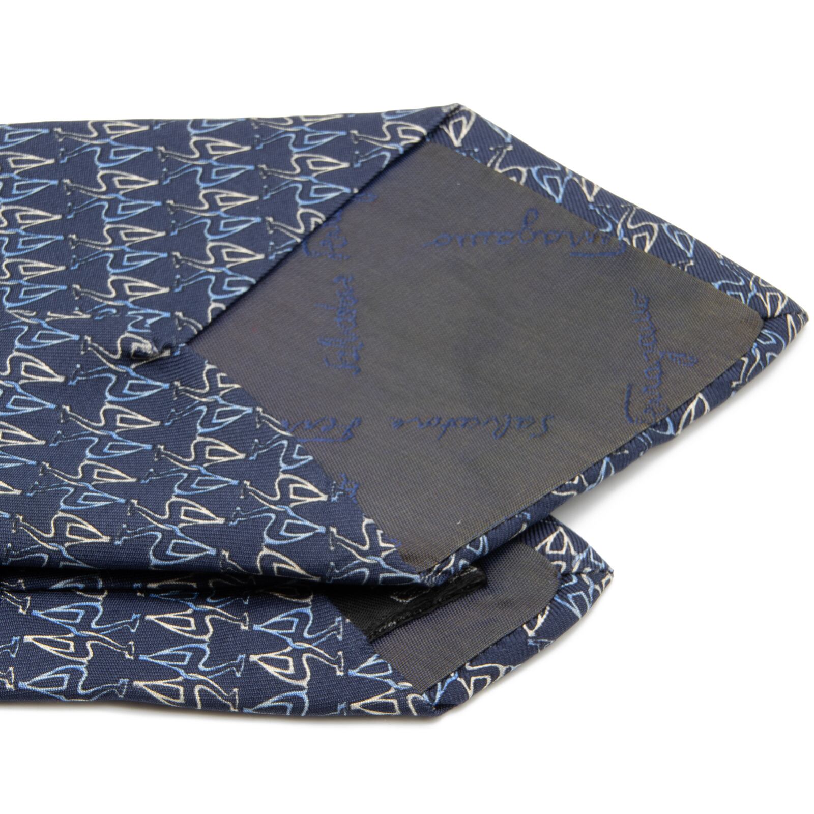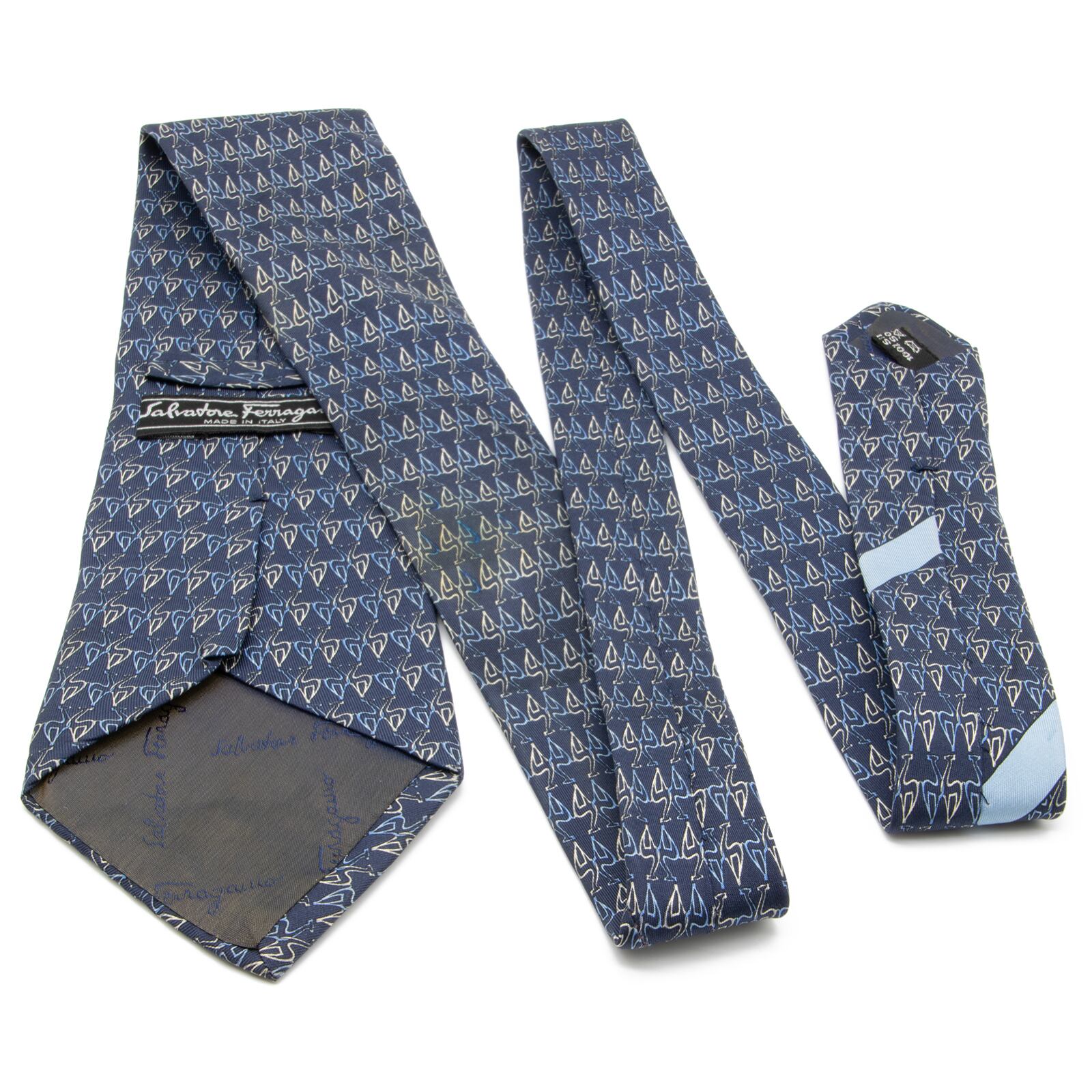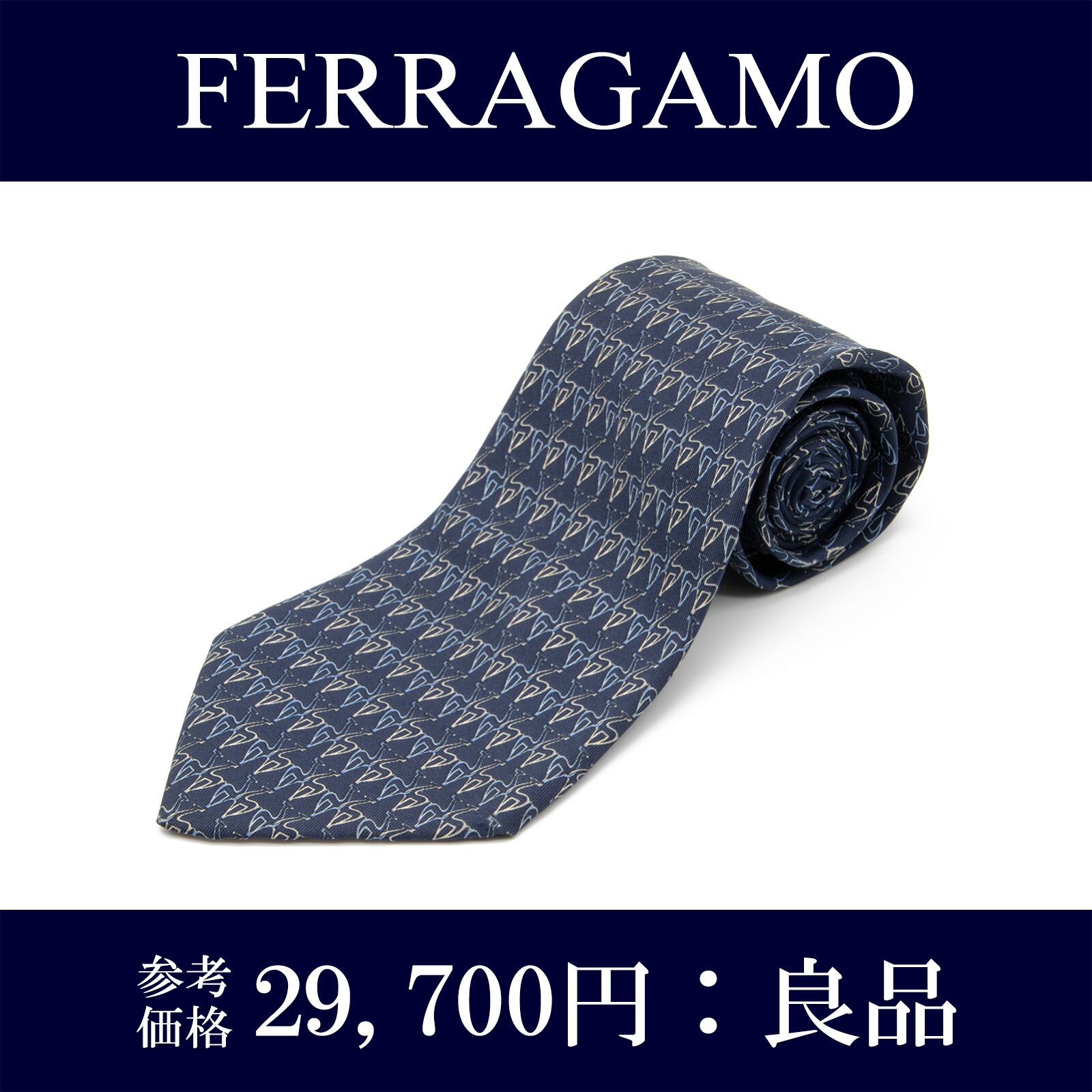 【本物 送料無料】フェラガモ ネクタイ ワイドタイ 小紋 ブランド シルク ネイビーブルー ビジネス カジュアル イタリア製 N041