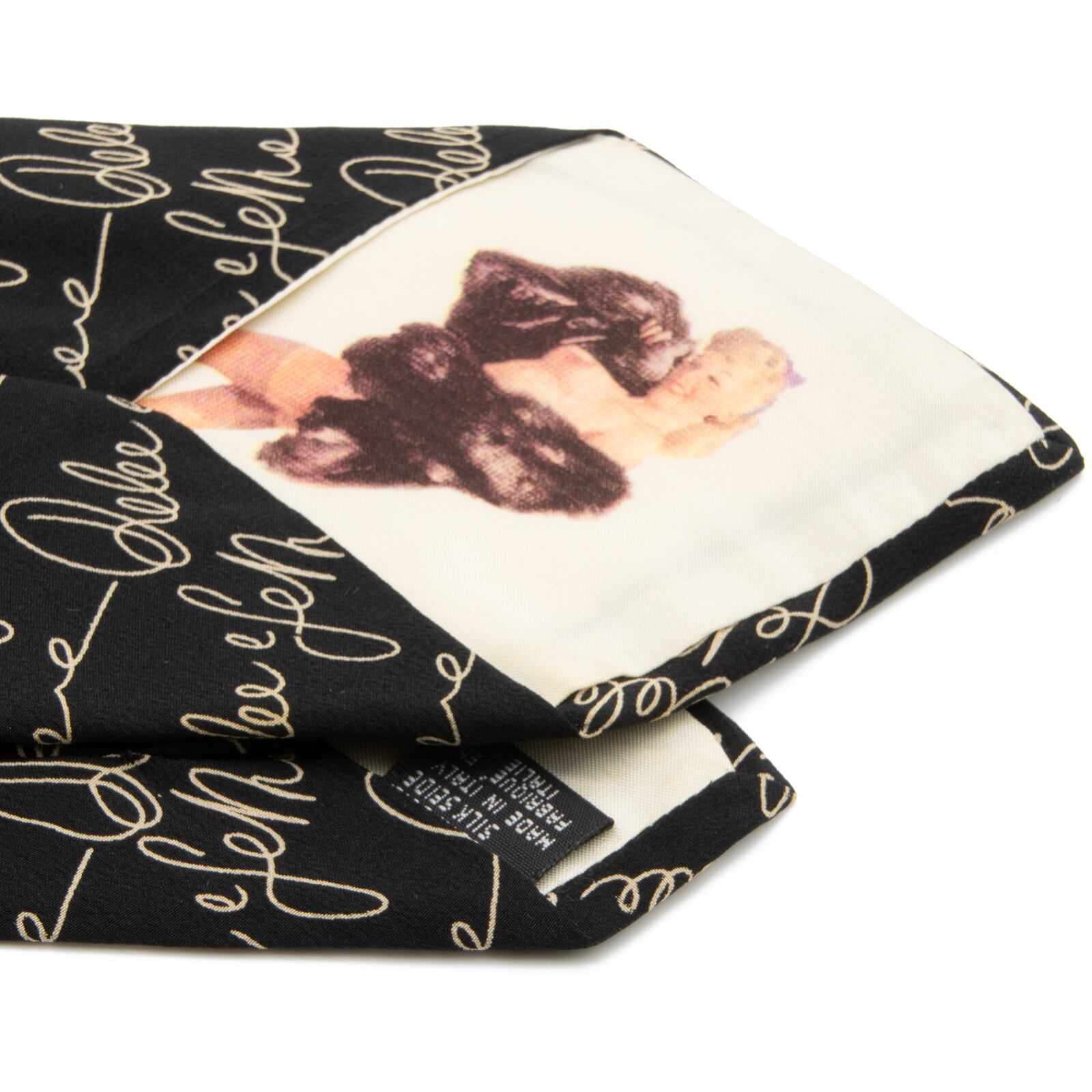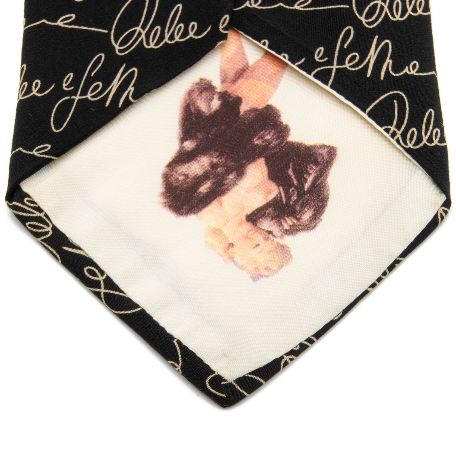 ドルチェ & ガッバーナのオールオーバーネクタイの中でも大変希少なモデルで、大剣の裏にファーコートを着たセクシーな女性・全体的にロゴががあしらわれており、最高級シルクのふっくらとした柔らかい肌触りと光沢が相まって、洗練された美しさと存在感にうっとりさせられます。