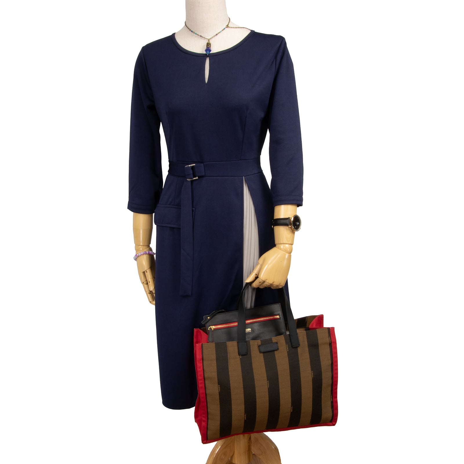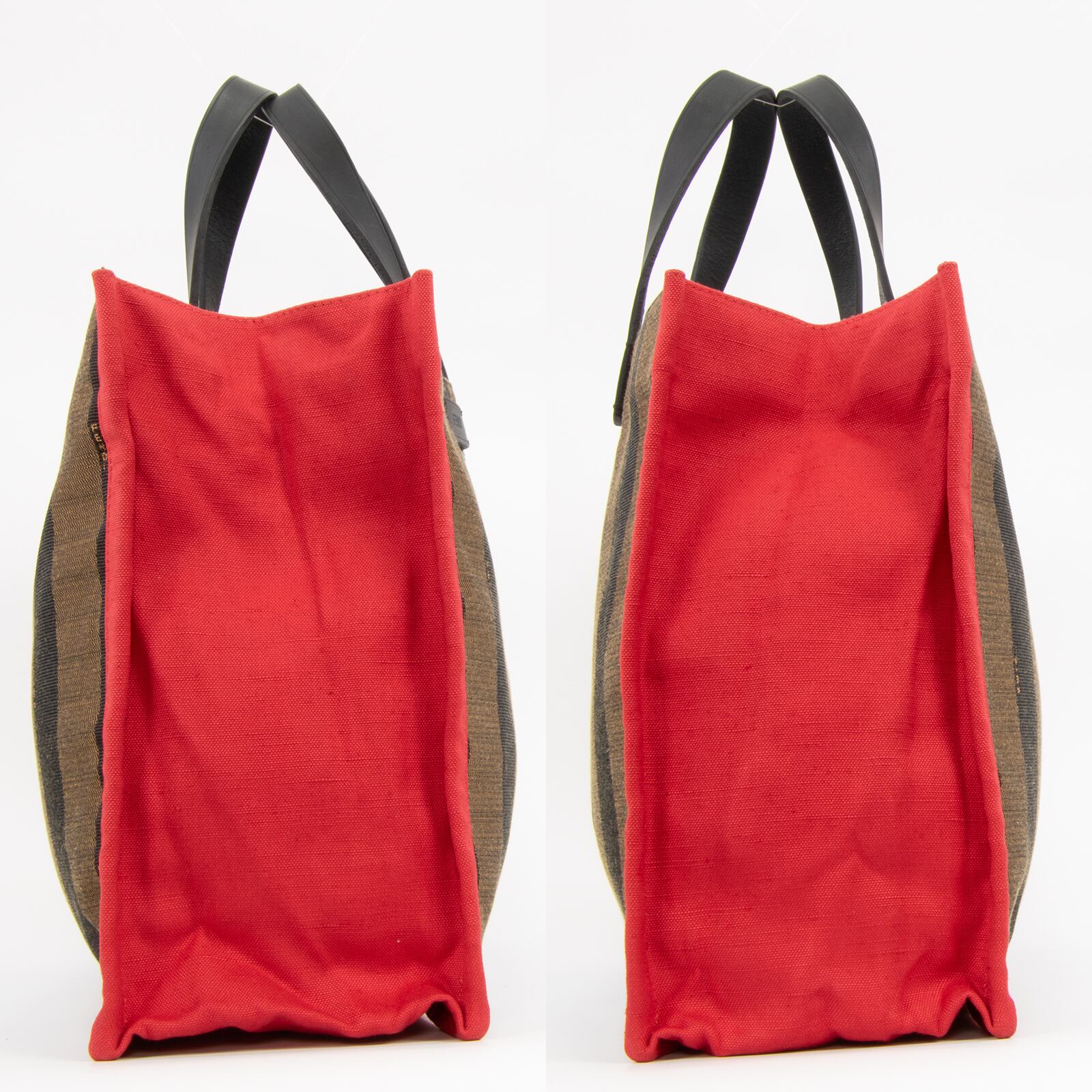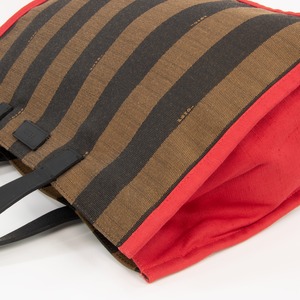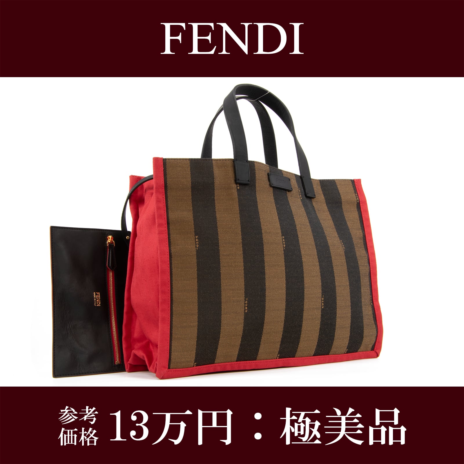 【本物 送料無料】フェンディ トートバッグ ハンドバッグ メンズ レディース ペカン 黒 赤 ロゴ しましま ストライプ バック F183