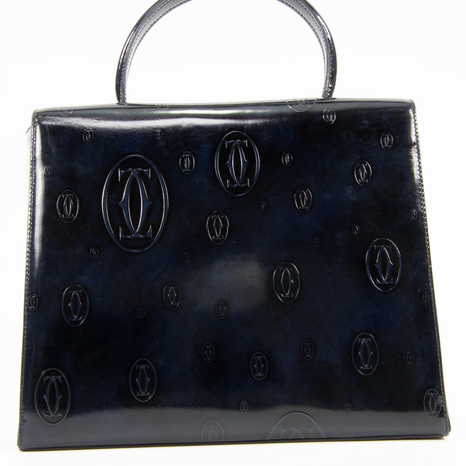 【本物 送料無料】カルティエ ハンドバッグ レディース ハッピーバースデー ネイビーブルー 2Cロゴ ターンロック バック 綺麗 F184