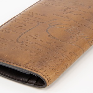 【本物 送料無料】ベルルッティ 長財布 二つ折り財布 メンズ エベネ 茶色 ブラウン 革 レザー パティーヌ カリグラフィ 綺麗 D160