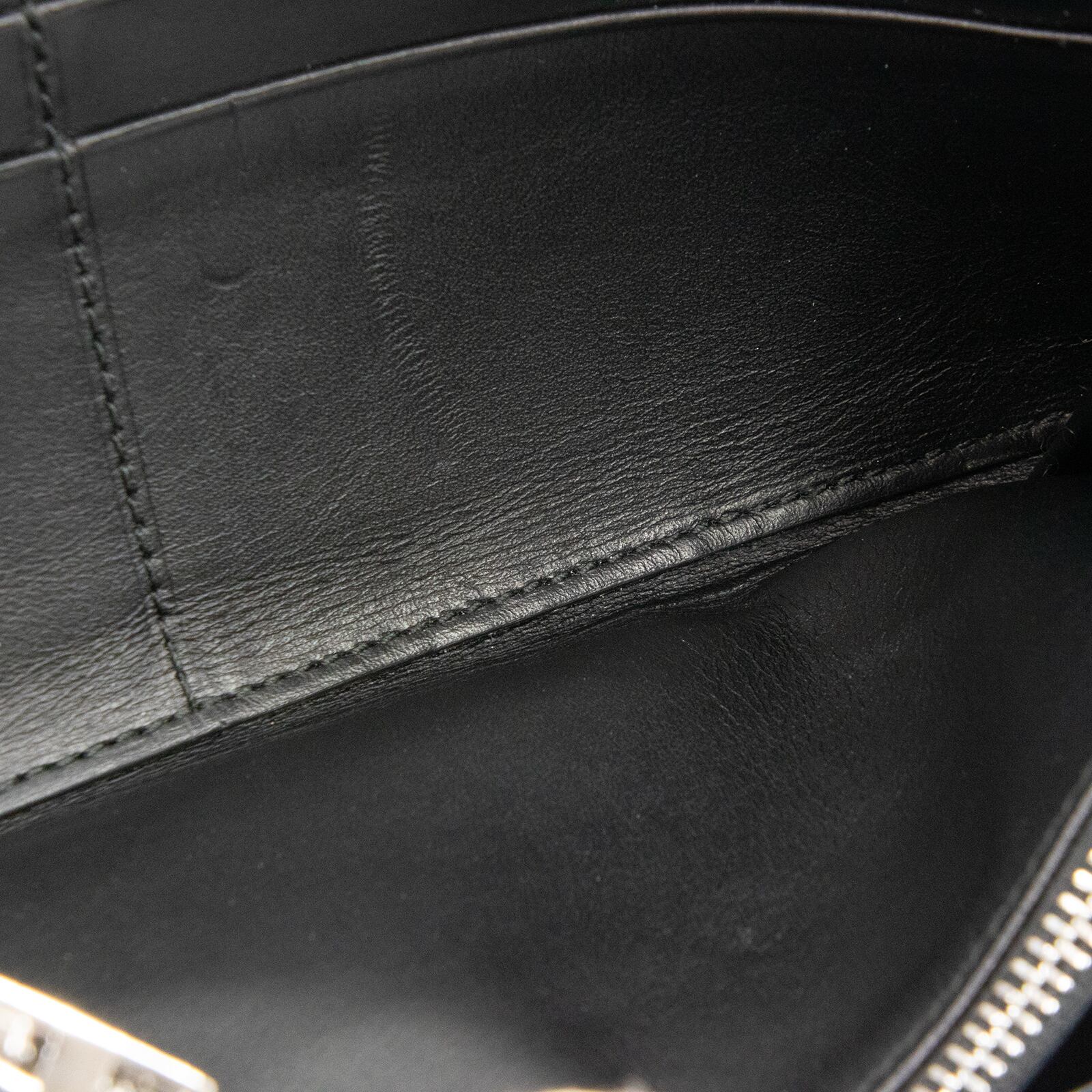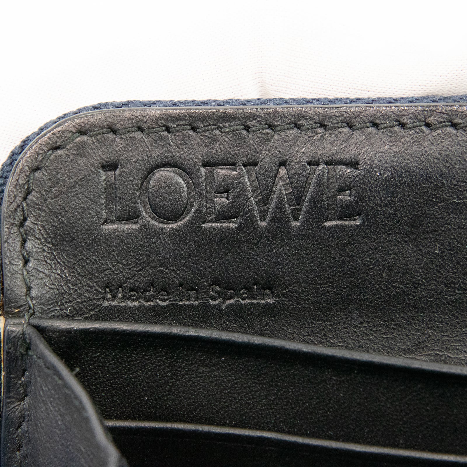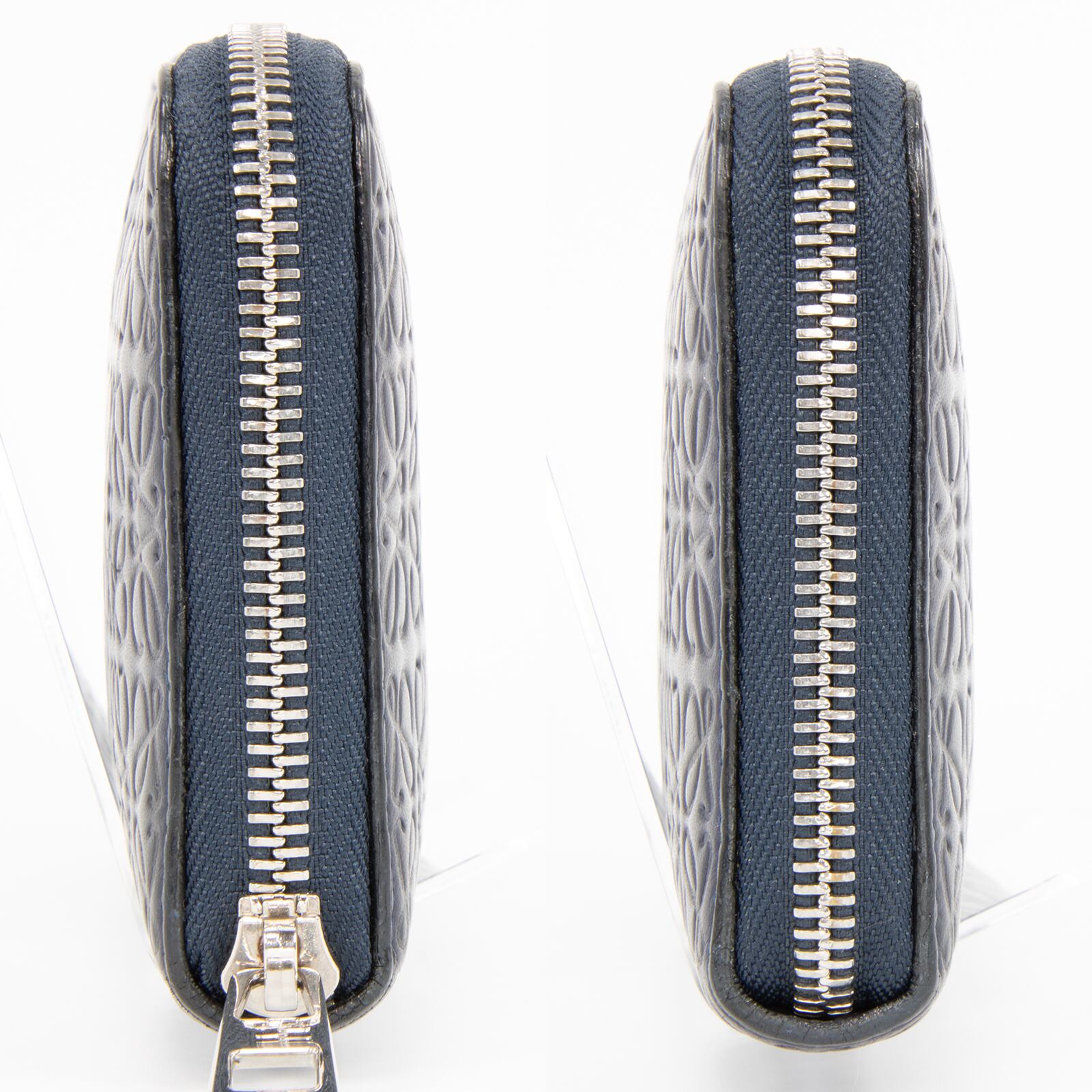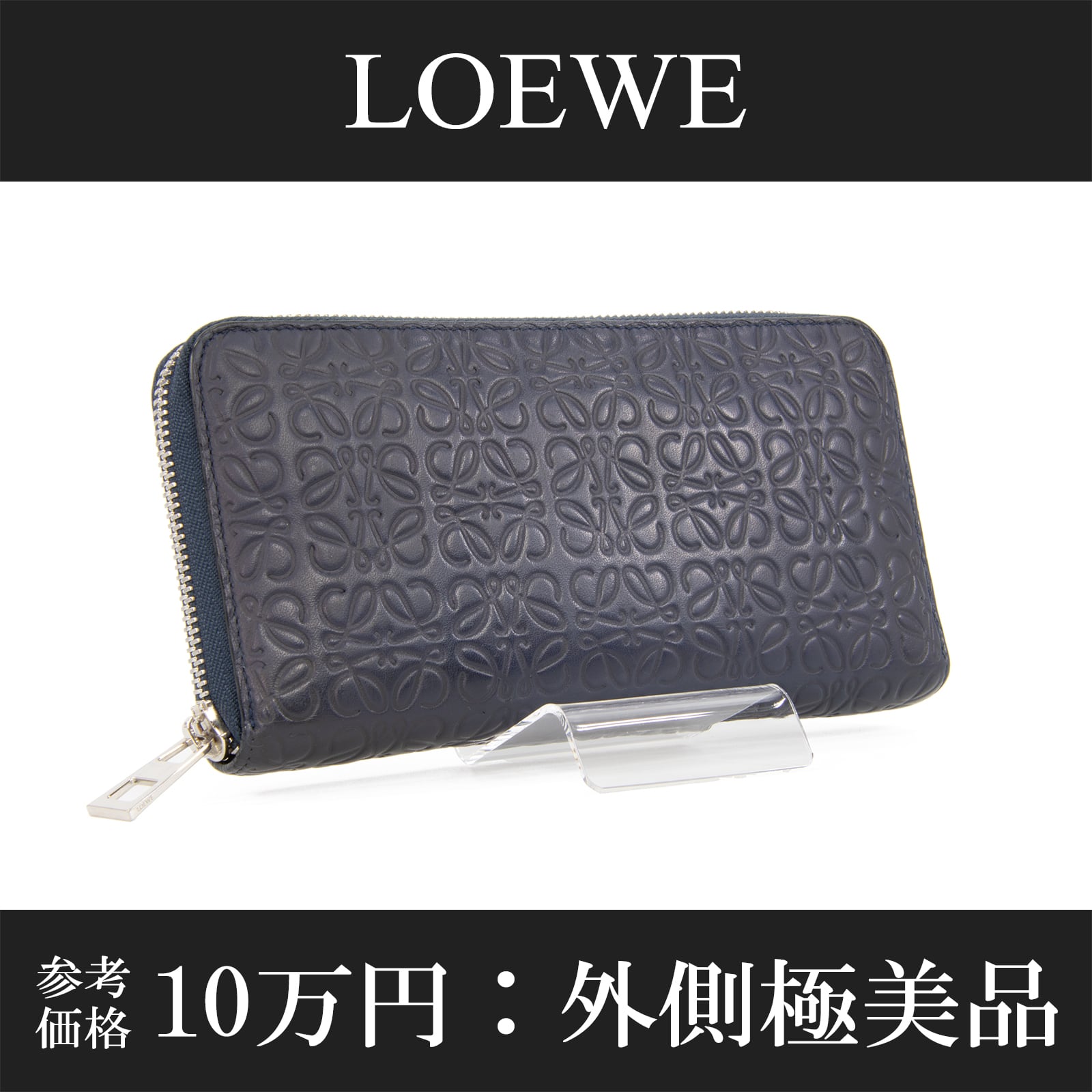リピートはロエベのブランドロゴであるアナグラムを、いくつも組み合わせてモノグラム調にエンボス加工したラインで、最高級カーフスキンに繊細なタッチで型押しされたこちらの財布は、エレガントで高級感溢れる逸品でございます。