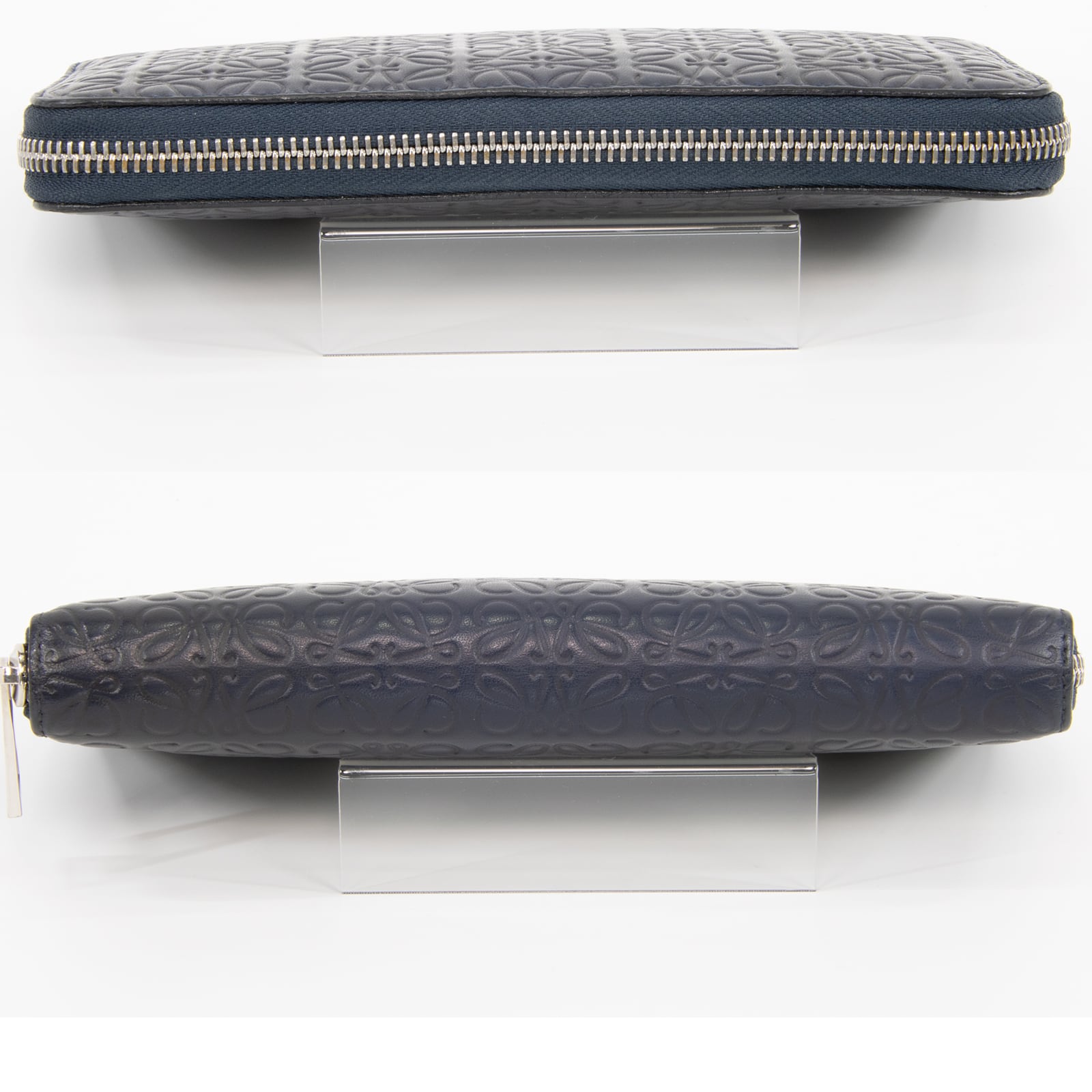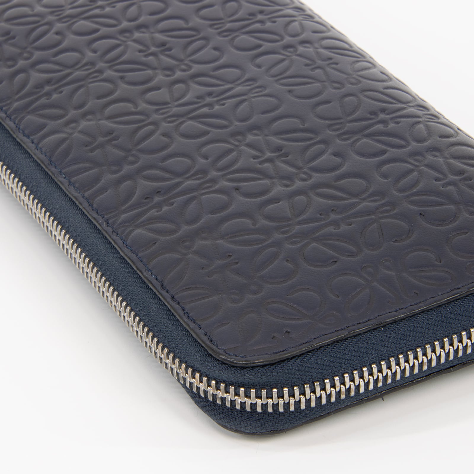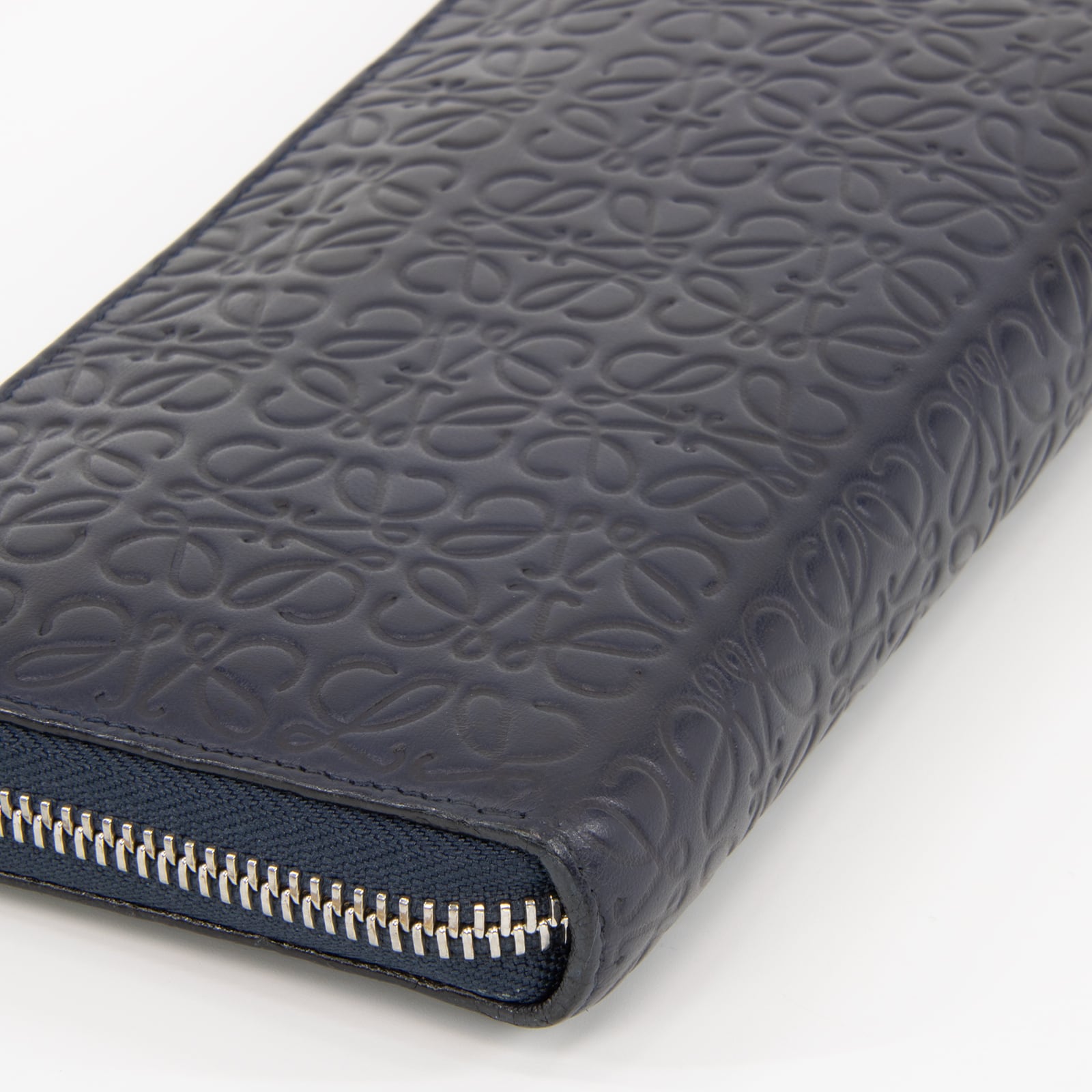 【本物 送料無料】ロエベ 長財布 ラウンドファスナー メンズ レディース リピート ネイビーブルー 革 レザー アナグラム ロゴ D161