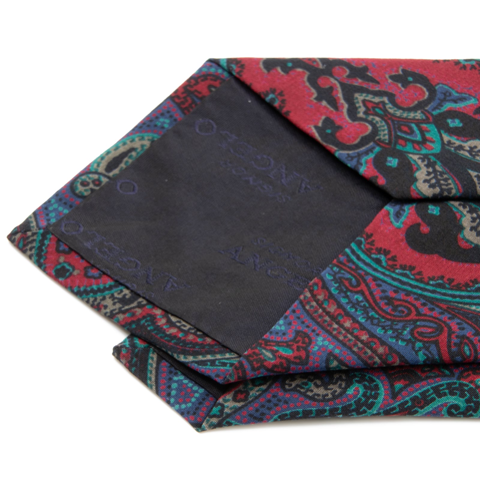アンジェロのエスニックパターンネクタイの中でも大変希少なモデルで、その中でも新品同様のものはさらにとても珍しいです。多数の独特な色の組み合わせと、ただならぬ雰囲気を感じさせるデザインで、最高級シルクのふっくらとした柔らかい肌触りと光沢が相まって、洗練された美しさと存在感にうっとりさせられます。