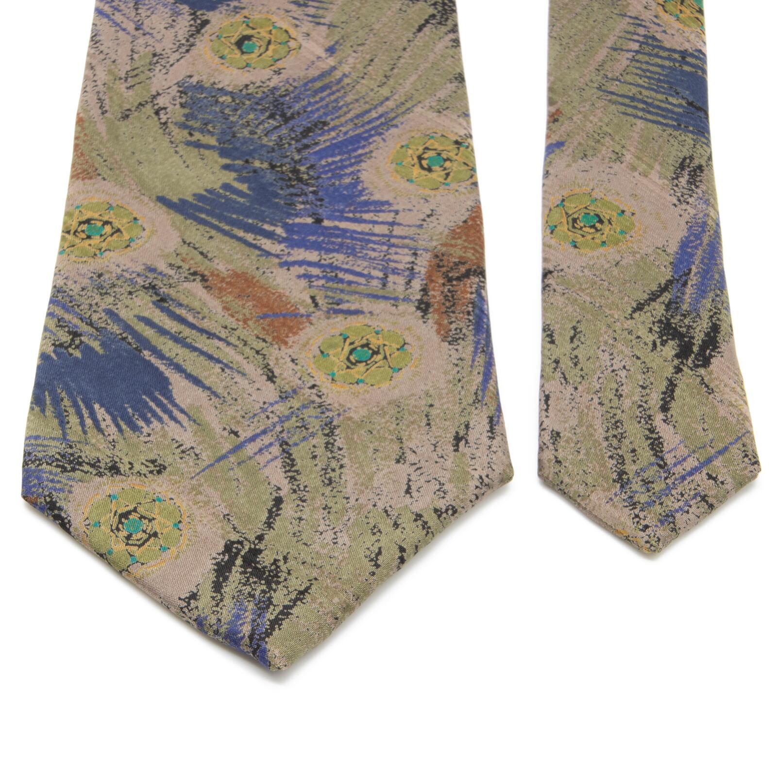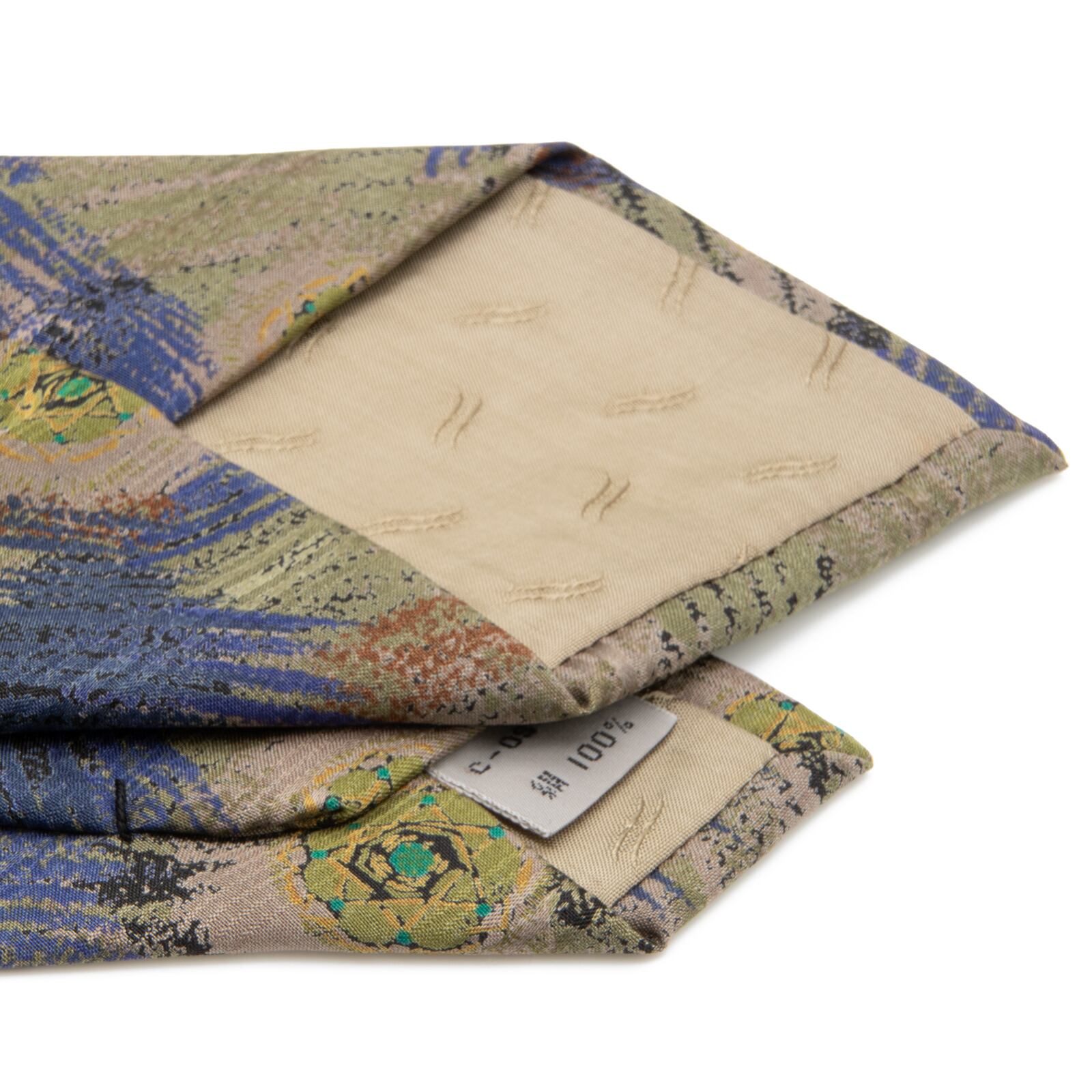 ダーバンのオールオーバーネクタイの中でも大変希少なモデルで、その中でも新品のものはさらにとても珍しいです。落ち着いた配色でありながら、ただならぬ雰囲気を感じさせるデザインで、最高級シルクのふっくらとした柔らかい肌触りと光沢が相まって、洗練された美しさと存在感にうっとりさせられます。