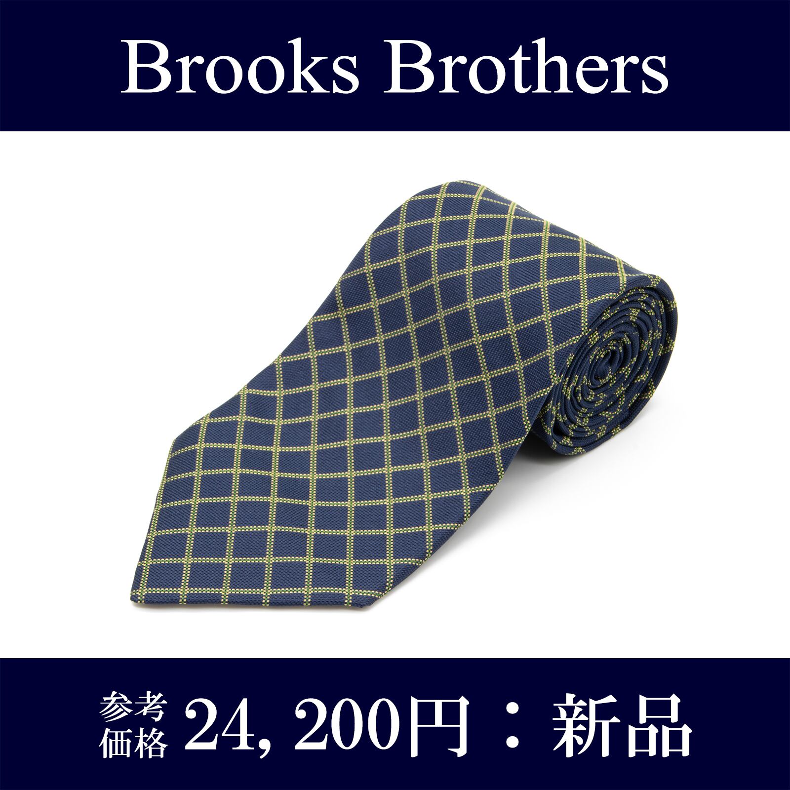 【全額返金保証 送料無料】ブルックスブラザーズ ネクタイ ワイドタイ ジャガードタイ 新品 チェック ブランド シルク ネイビーブルー N197