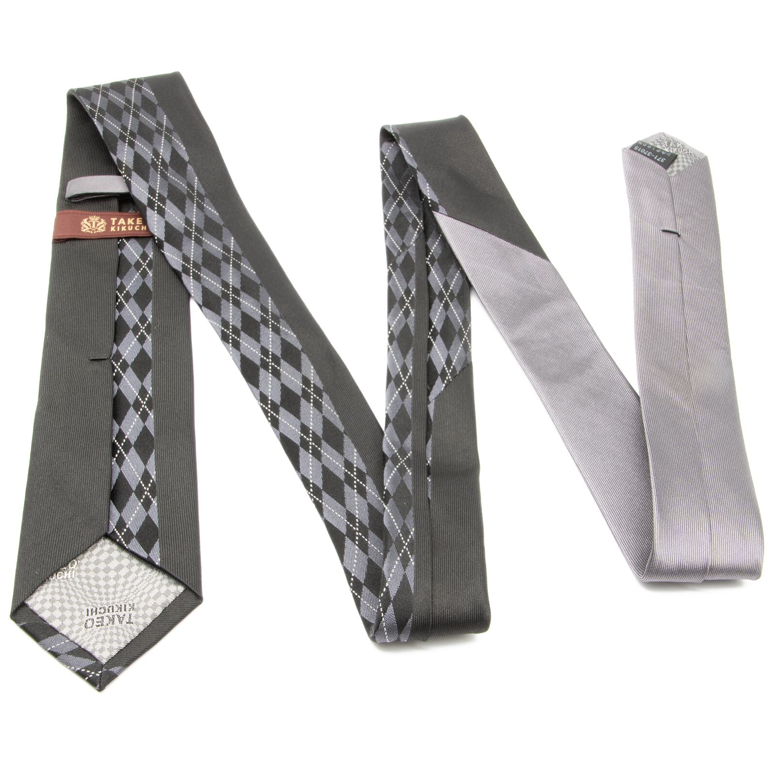 【全額返金保証 送料無料】タケオキクチ ネクタイ ナロータイ ジャガードタイ ブランド シルク 黒 グレー シルバー フォーマル 綺麗 N216