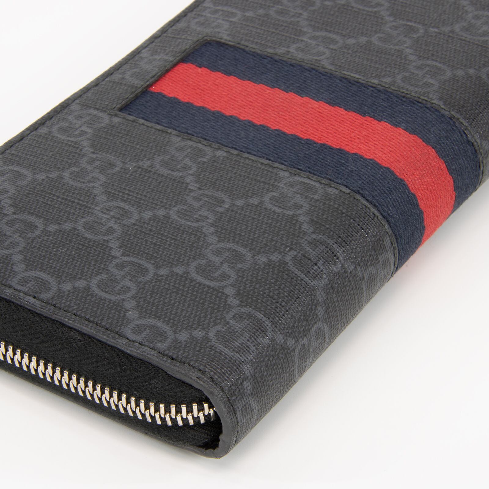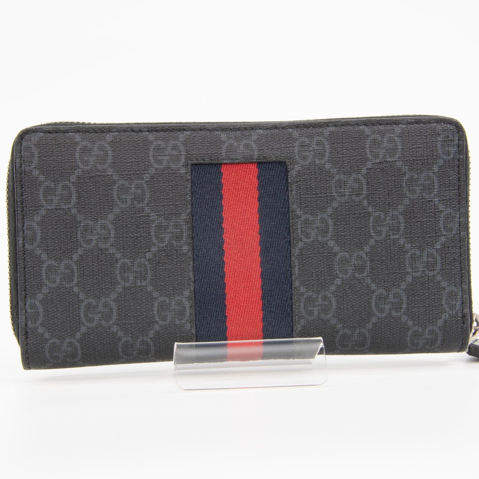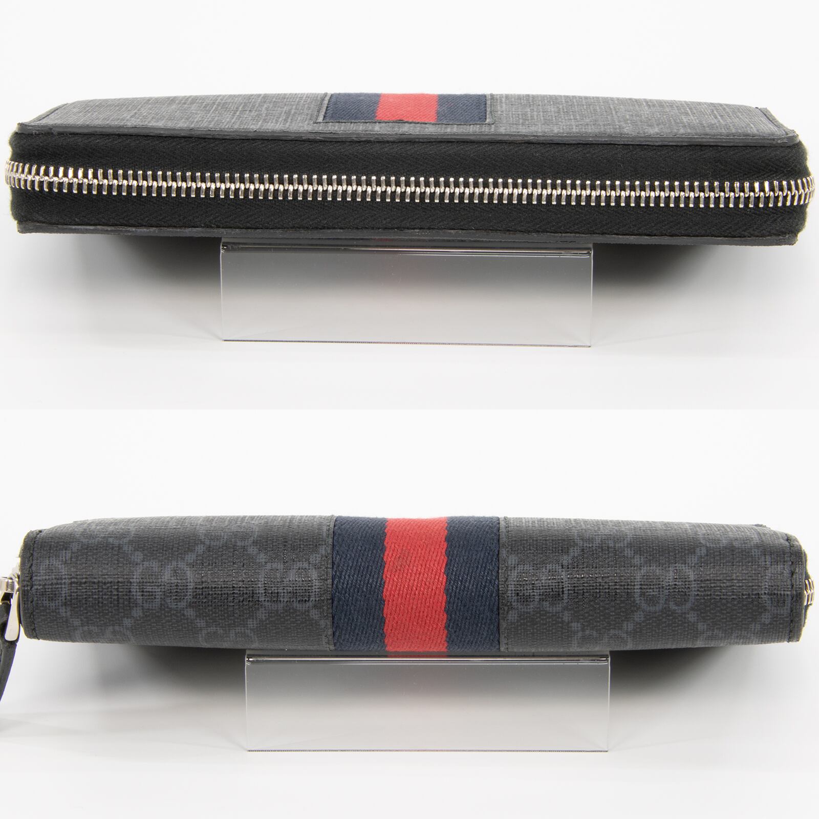 【全額返金保証 送料無料】グッチ 長財布 ラウンドファスナー メンズ レディース シェリーライン GGスプリーム グレー 赤 レッド 綺麗 G077