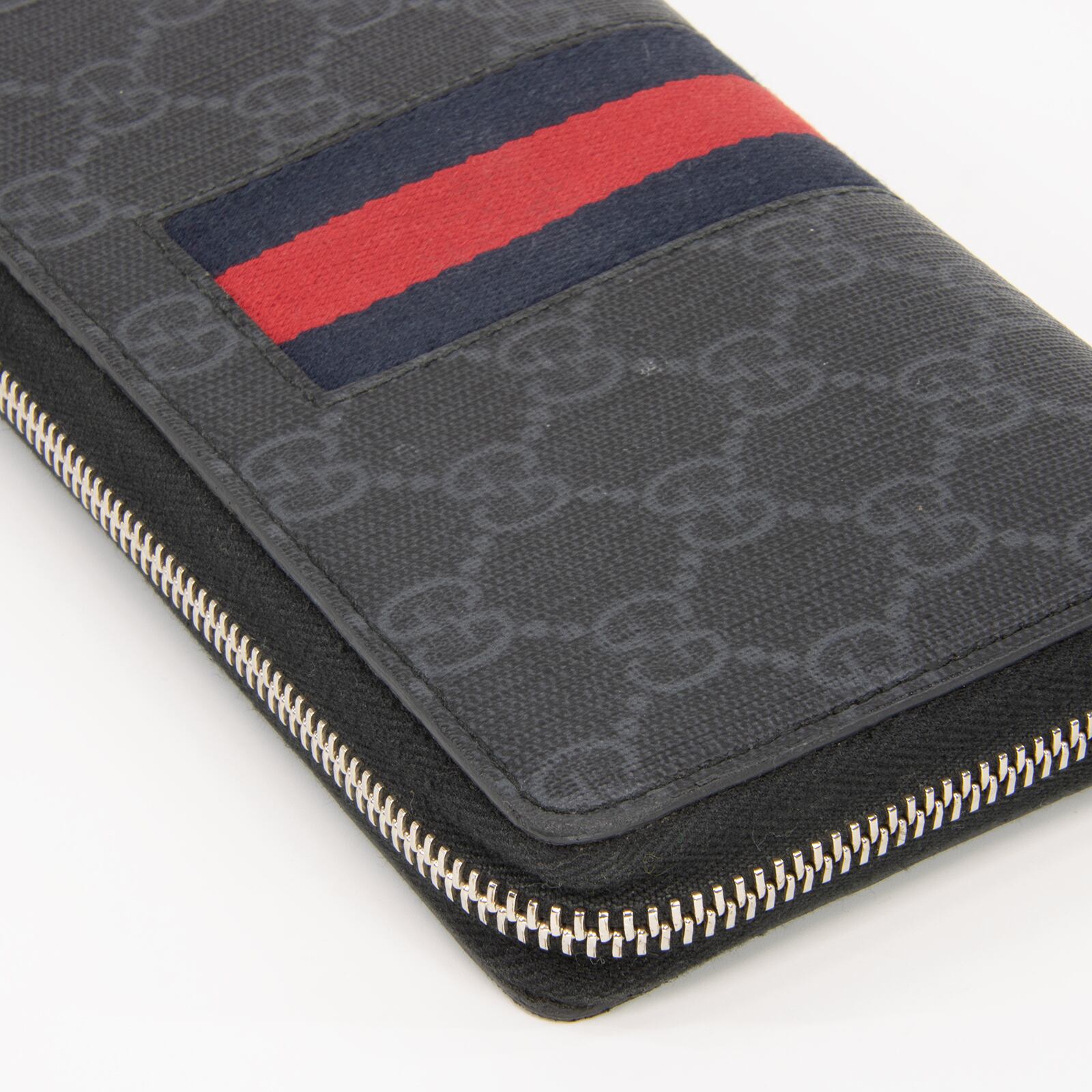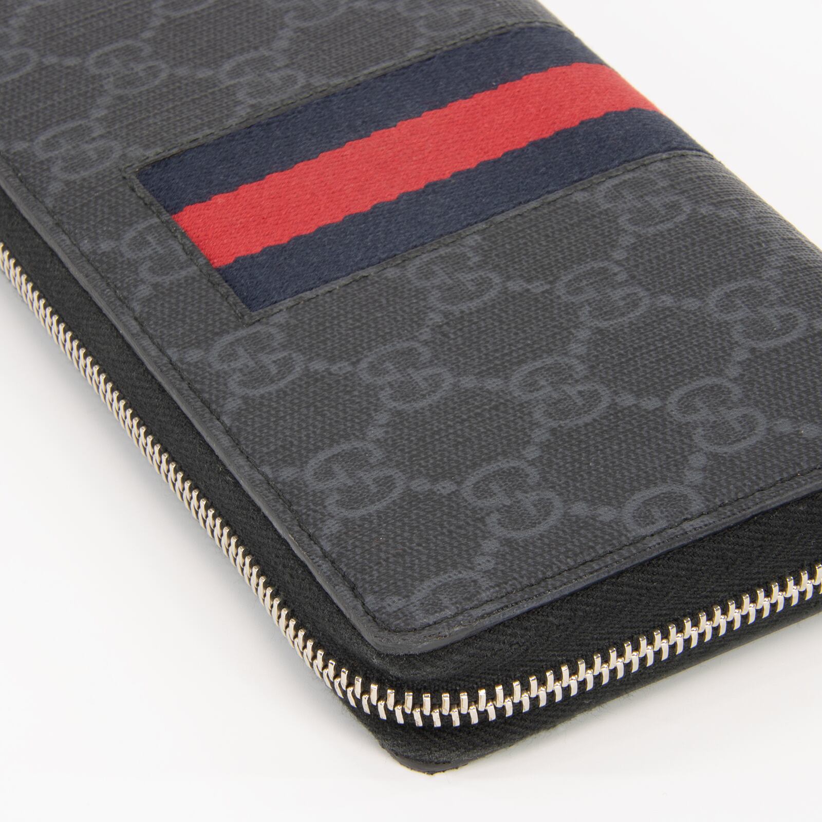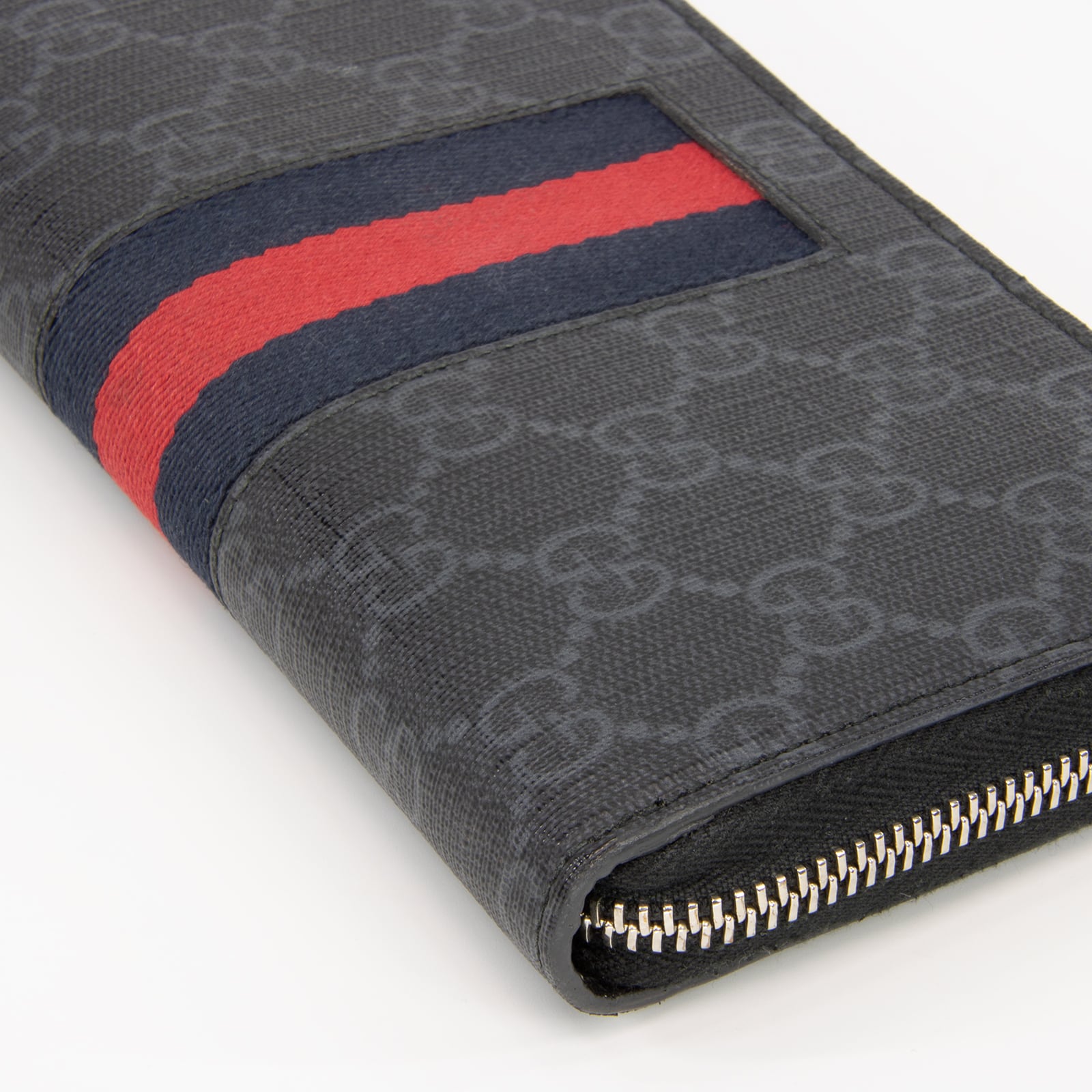 【全額返金保証 送料無料】グッチ 長財布 ラウンドファスナー メンズ レディース シェリーライン GGスプリーム グレー 赤 レッド 綺麗 G077