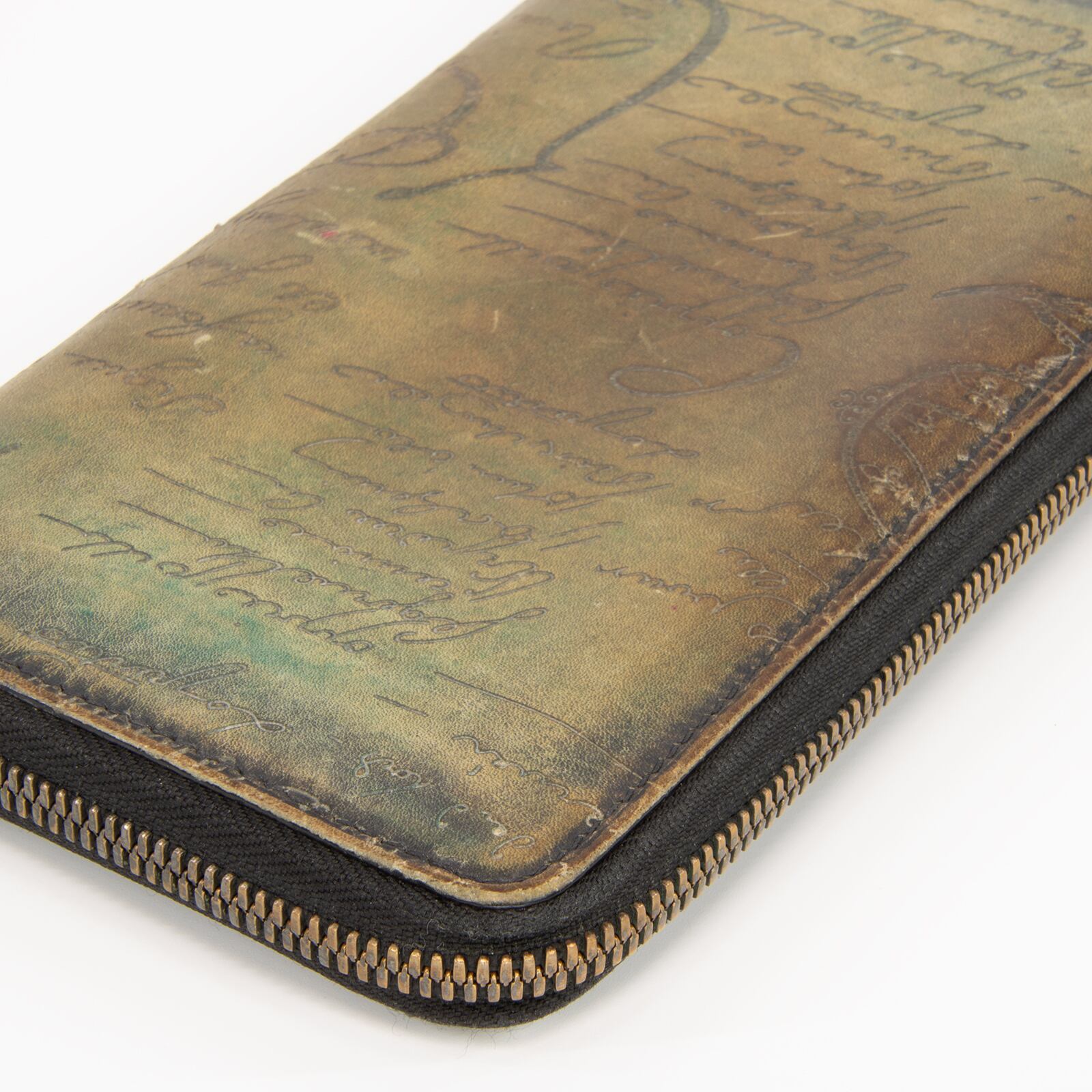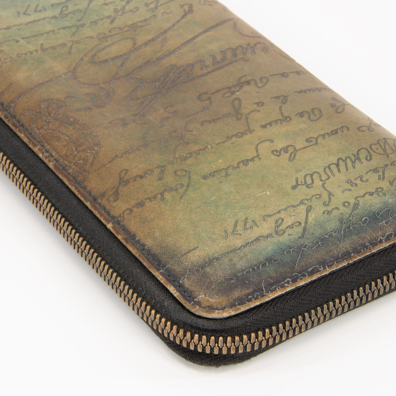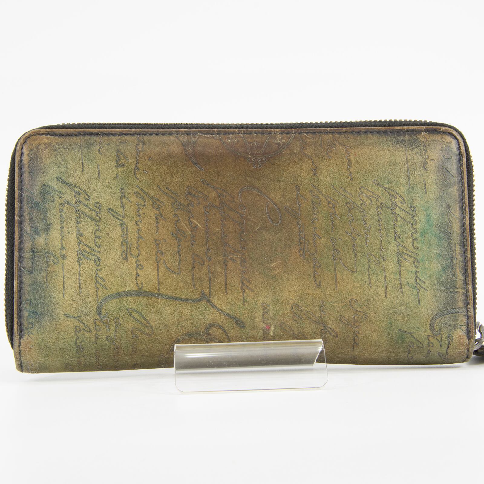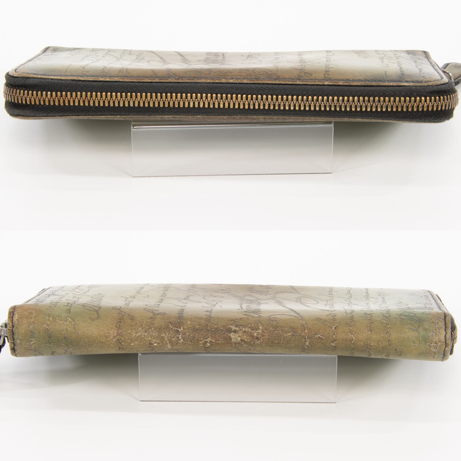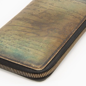 【全額返金保証 送料無料】ベルルッティ 長財布 ラウンドファスナー 見開き メンズ 緑色 グリーン パティーヌ カリグラフィ 革 レア D167