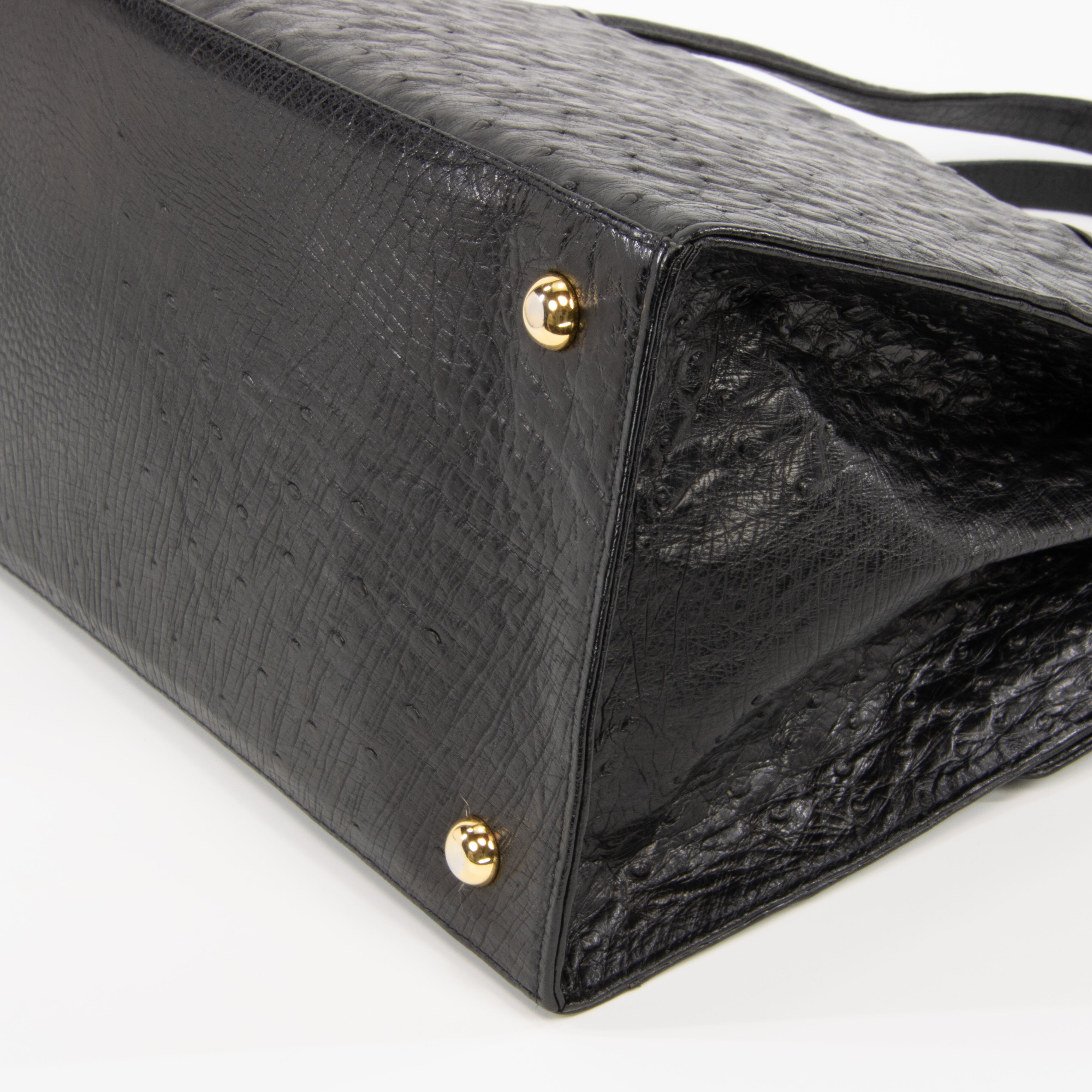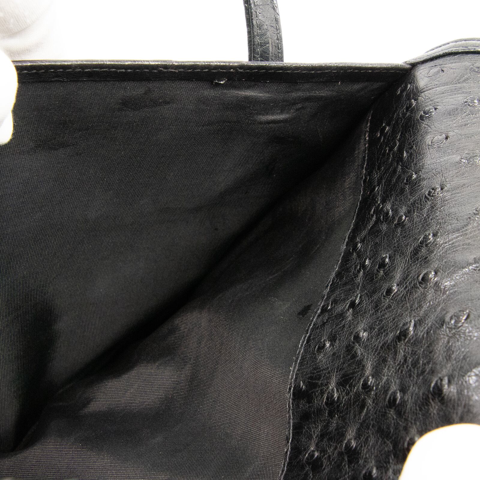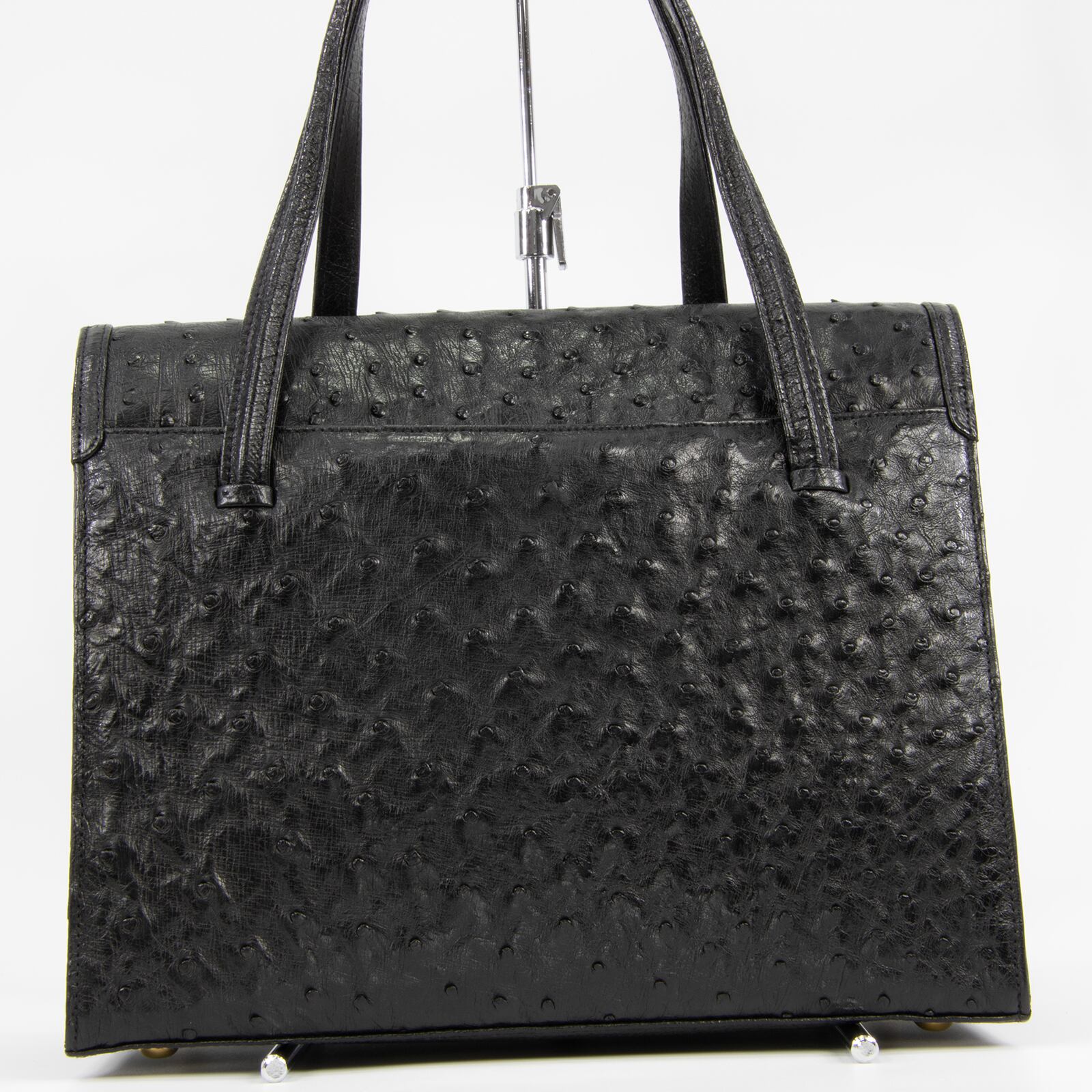 【全額返金保証 送料無料】コンテス ハンドバッグ レディース オーストリッチ 黒 ブラック 自立 ロゴ ゴールド 革 レザー 鞄 バック I161