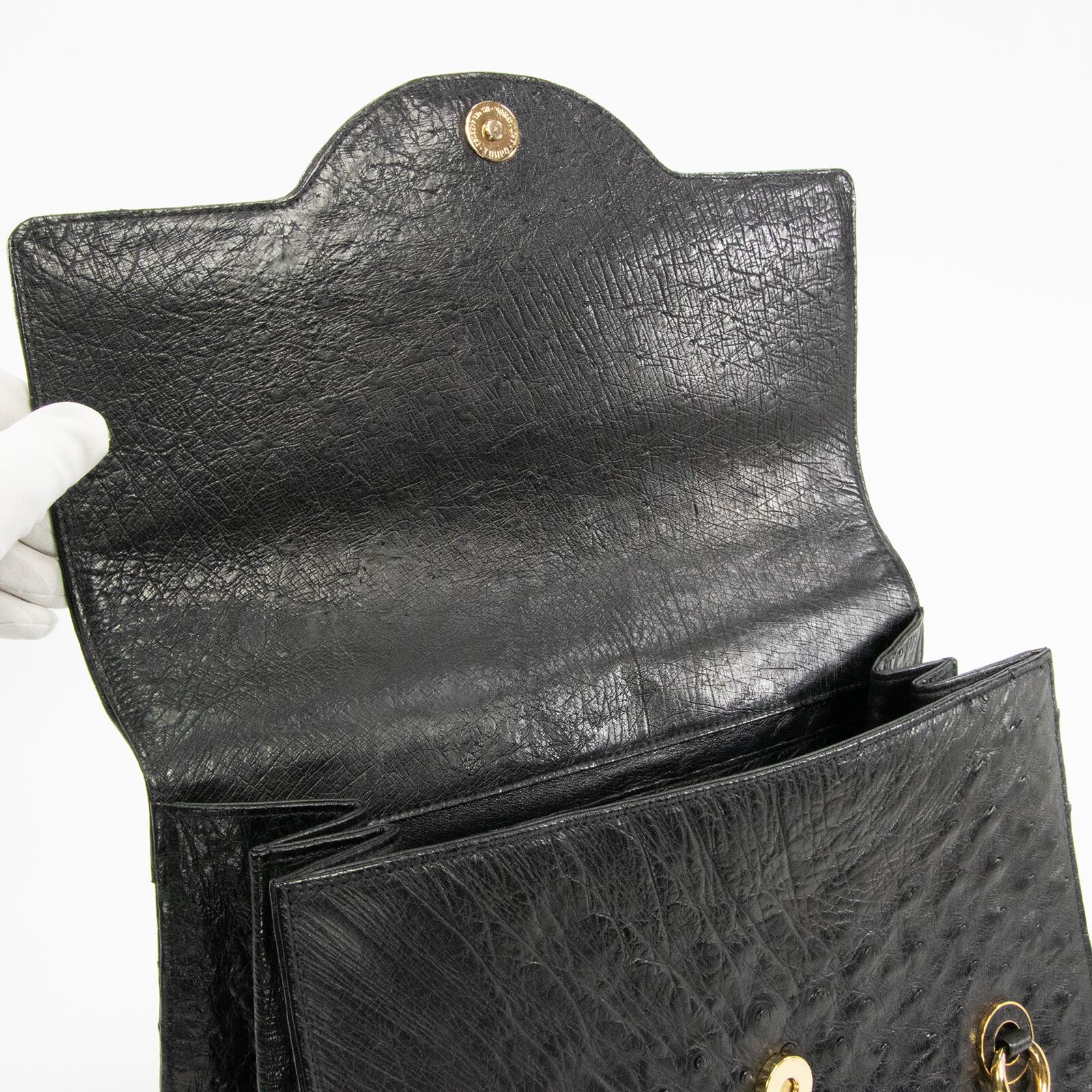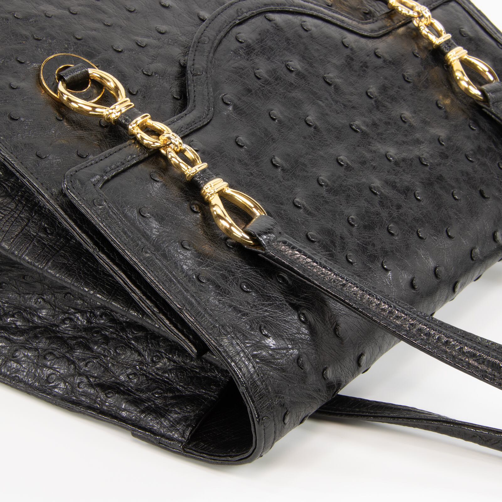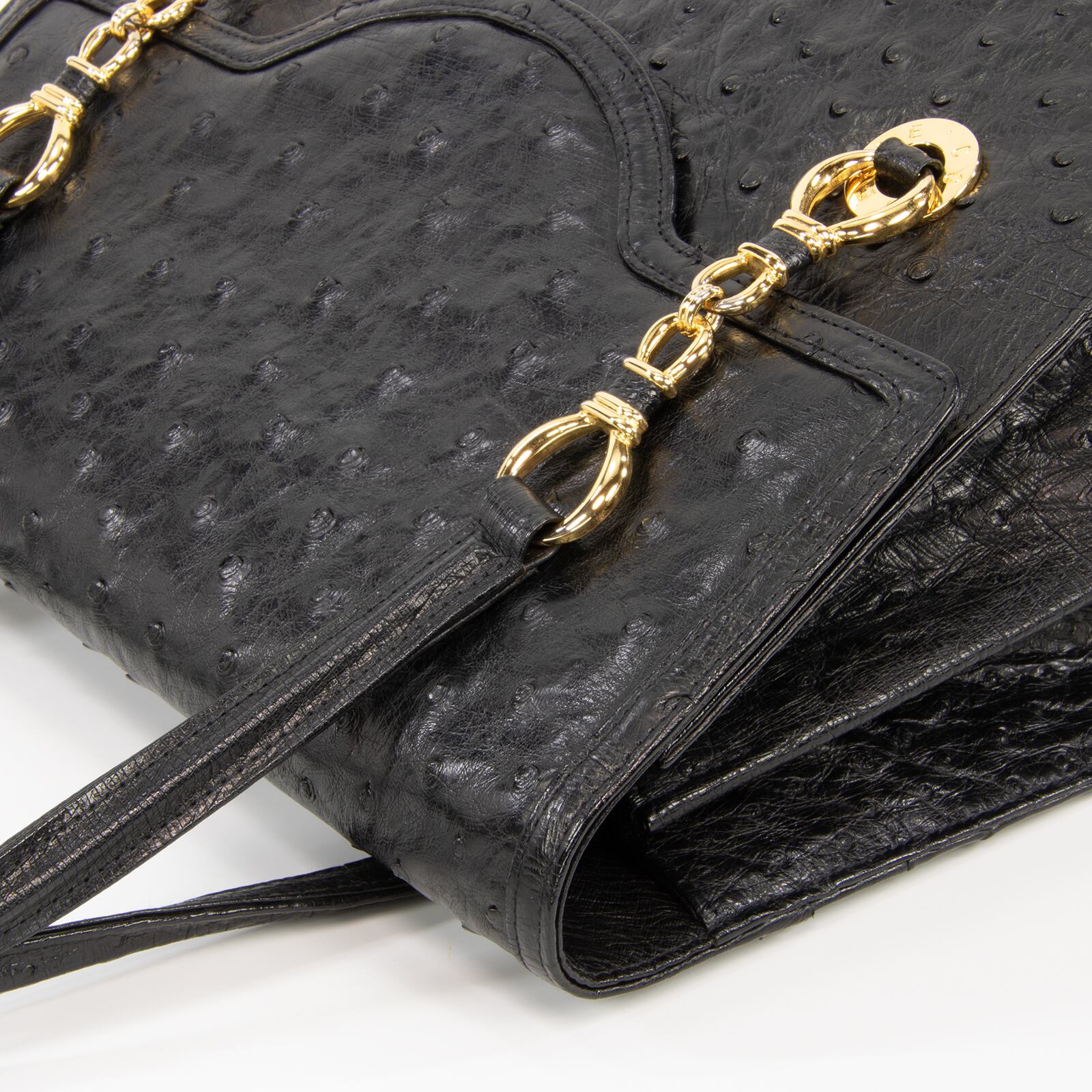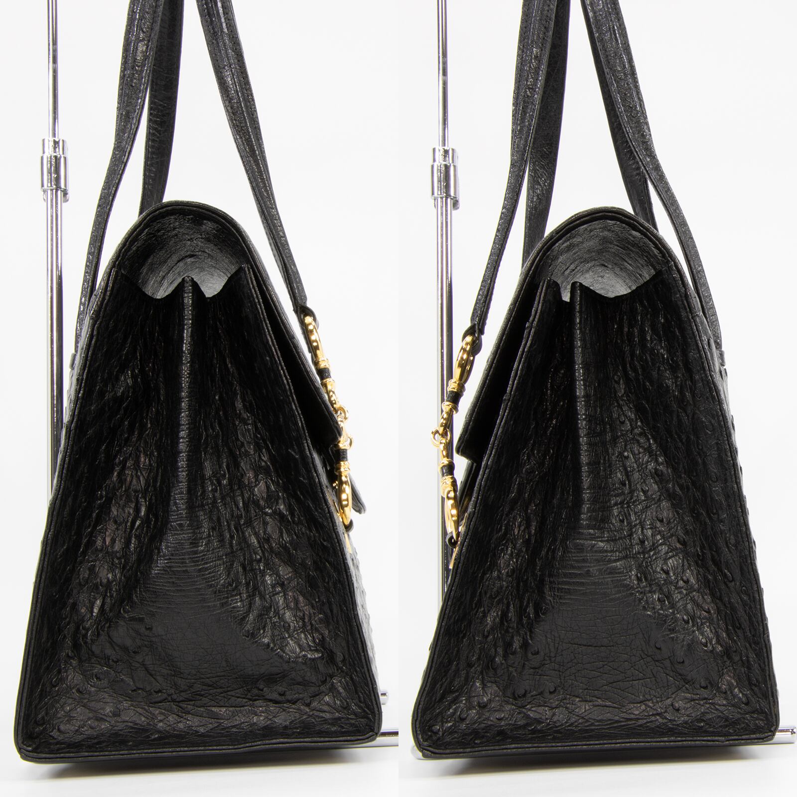 【全額返金保証 送料無料】コンテス ハンドバッグ レディース オーストリッチ 黒 ブラック 自立 ロゴ ゴールド 革 レザー 鞄 バック I161