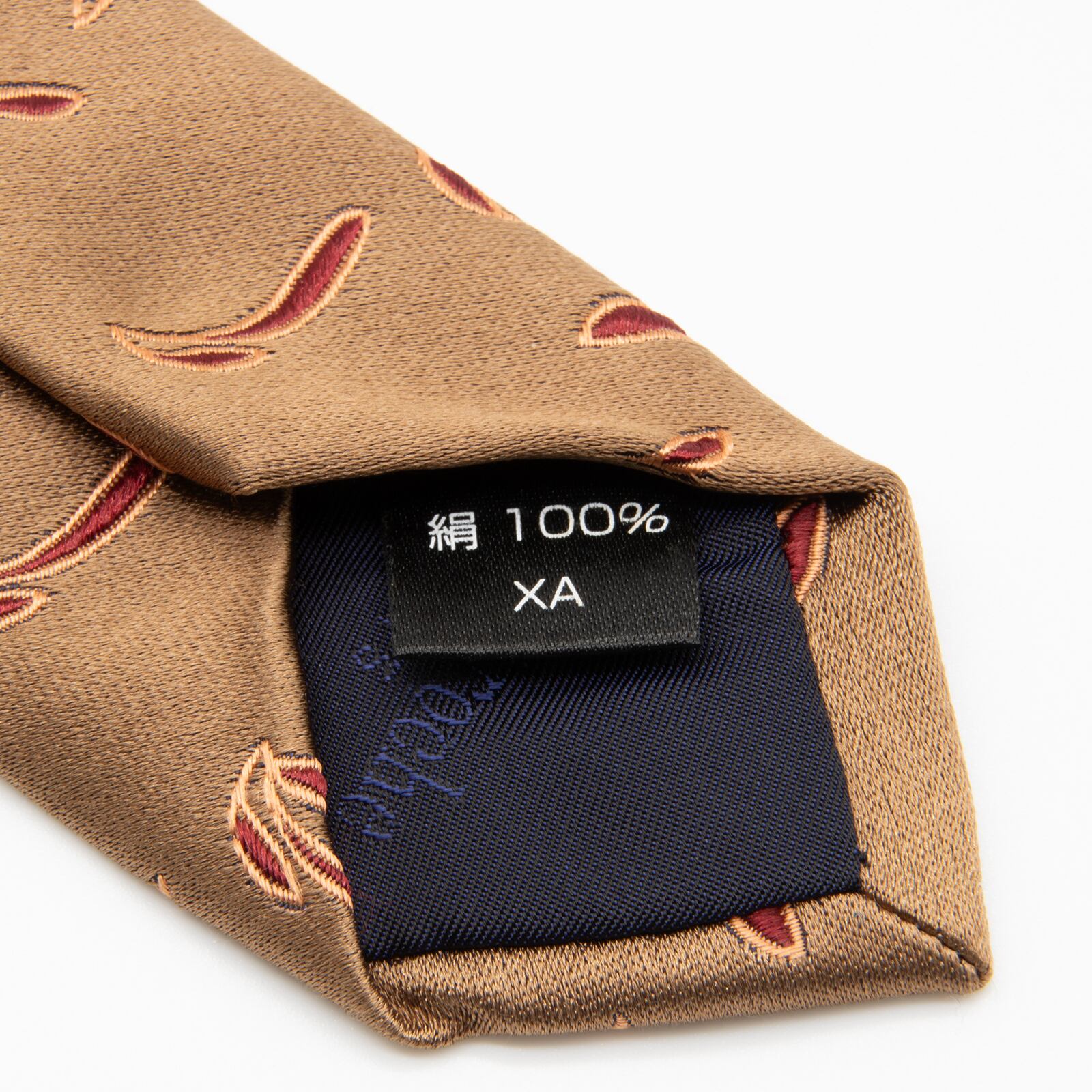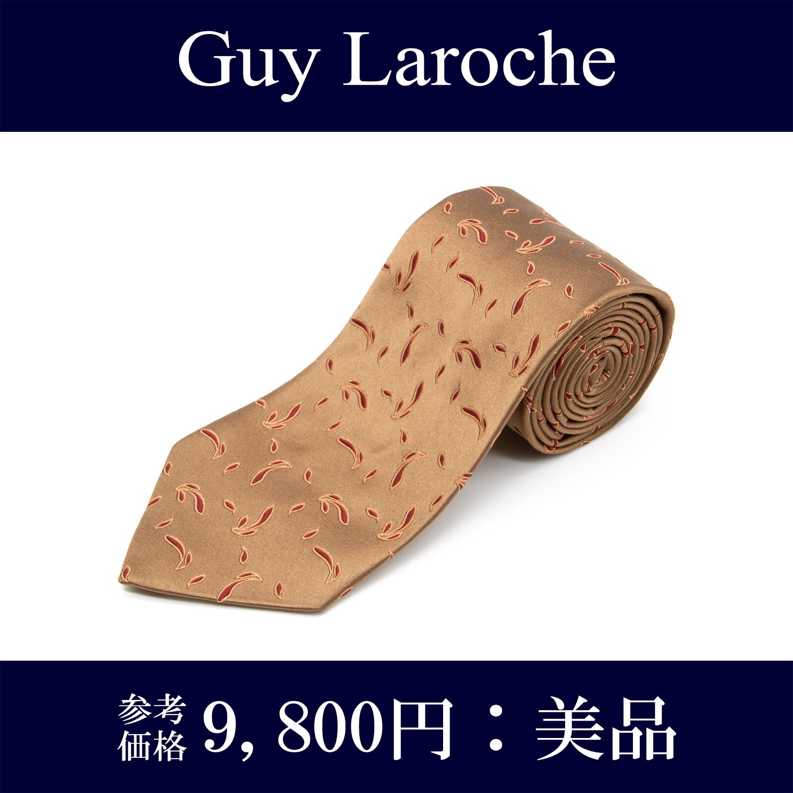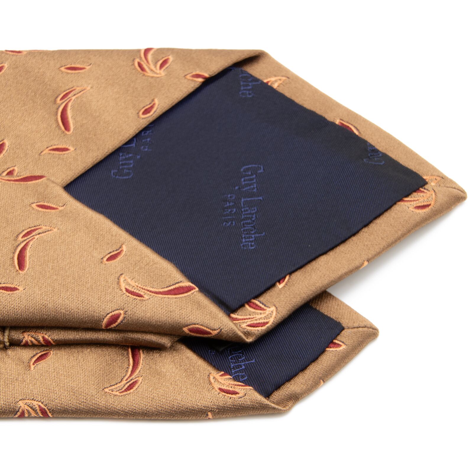 ギラロッシュのオールオーバー・ジャガードタイの中でも大変希少なモデルで、大剣と小剣の裏には「Guy Laroche」のロゴがあしらわれており、落ち着いた配色と秋を感じさせるデザインで、最高級シルクのふっくらとした柔らかい肌触りと光沢が相まって、洗練された美しさと存在感にうっとりさせられます。