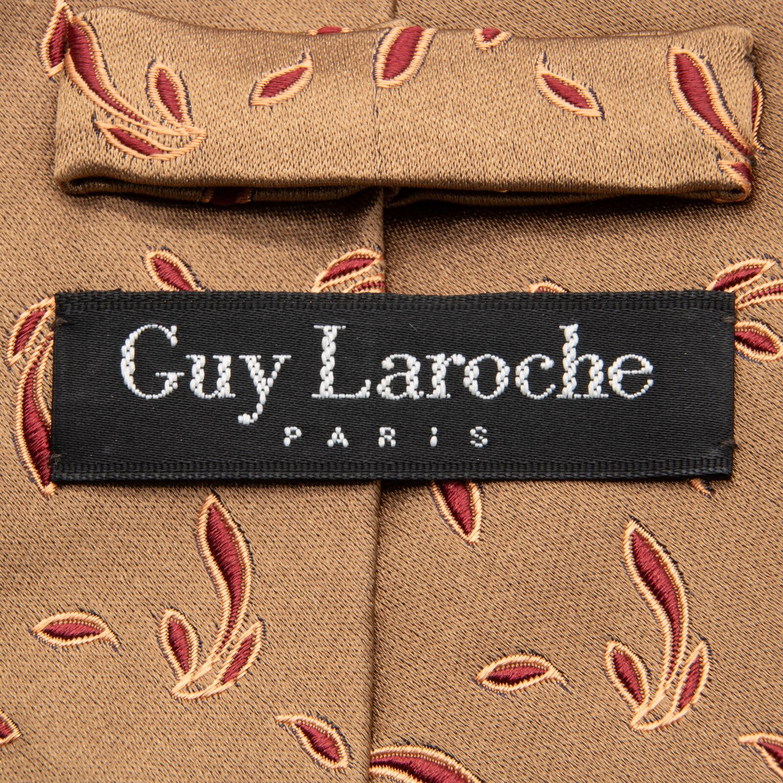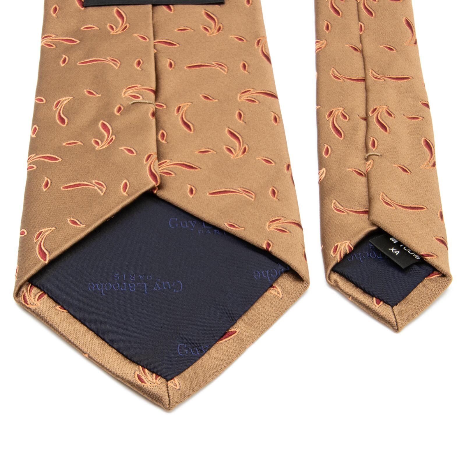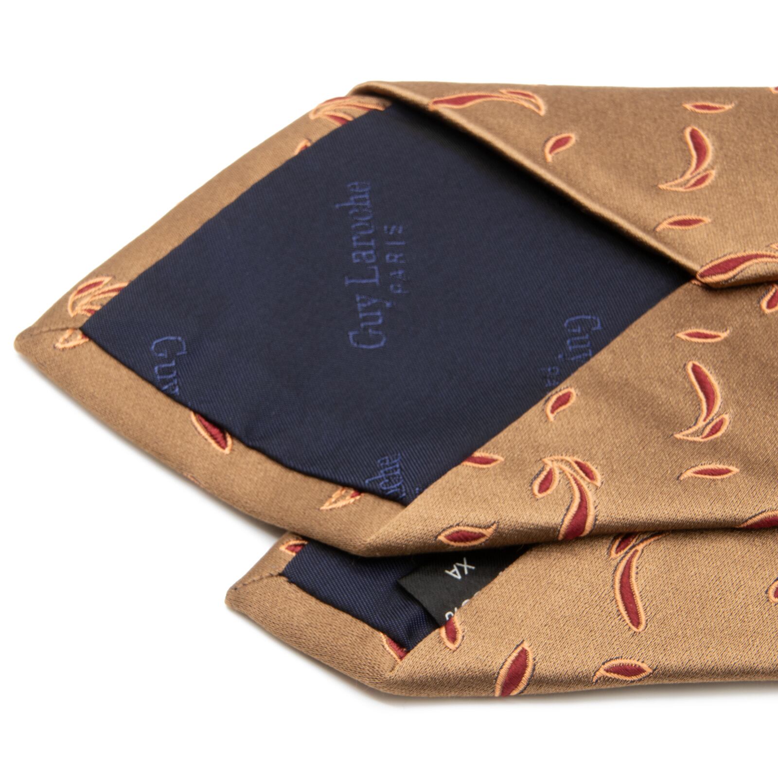 ギラロッシュのオールオーバー・ジャガードタイの中でも大変希少なモデルで、大剣と小剣の裏には「Guy Laroche」のロゴがあしらわれており、落ち着いた配色と秋を感じさせるデザインで、最高級シルクのふっくらとした柔らかい肌触りと光沢が相まって、洗練された美しさと存在感にうっとりさせられます。