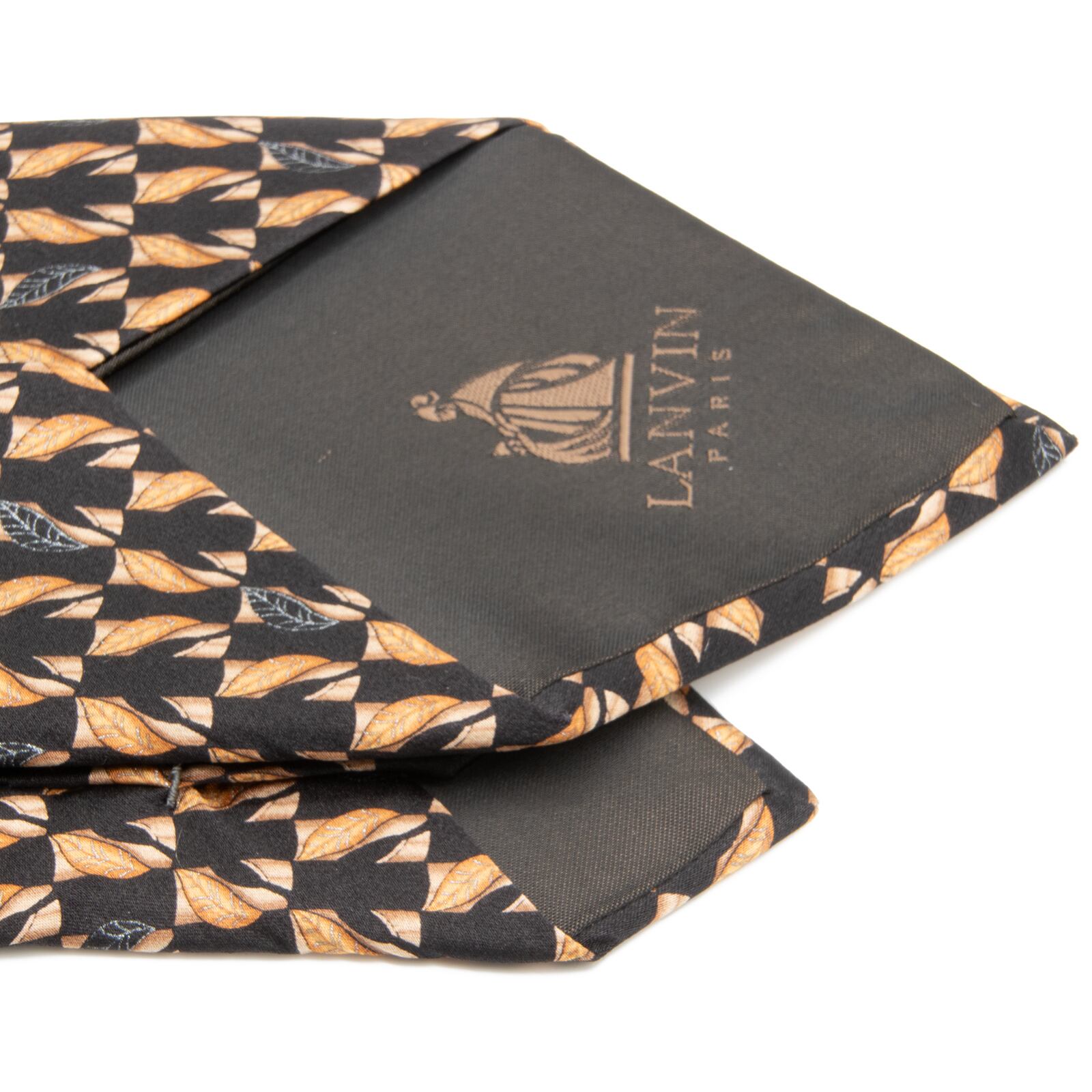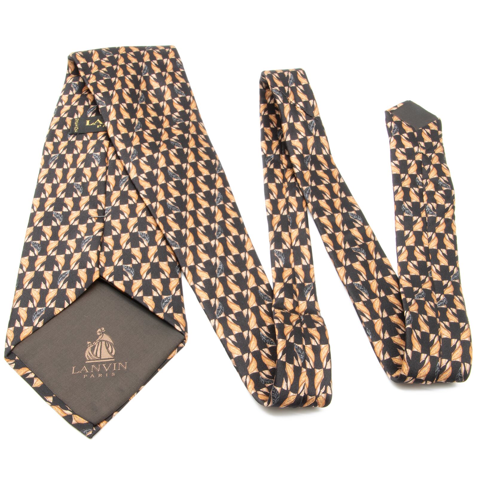極美品 送料無料 ランバン ネクタイ ワイドタイ ブランド シルク 茶色 ブラウン 黒 ブラック ベージュ ビジネス 秋 葉 キラキラ 綺麗 N218