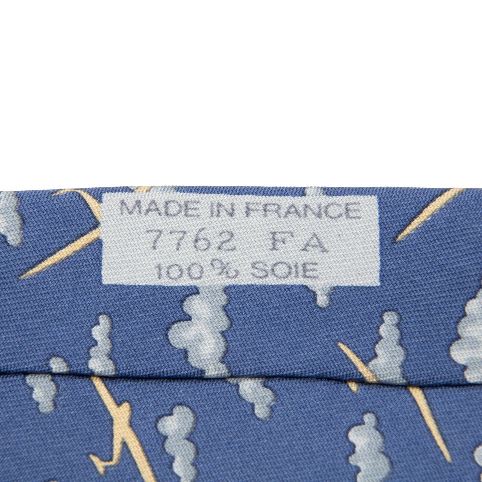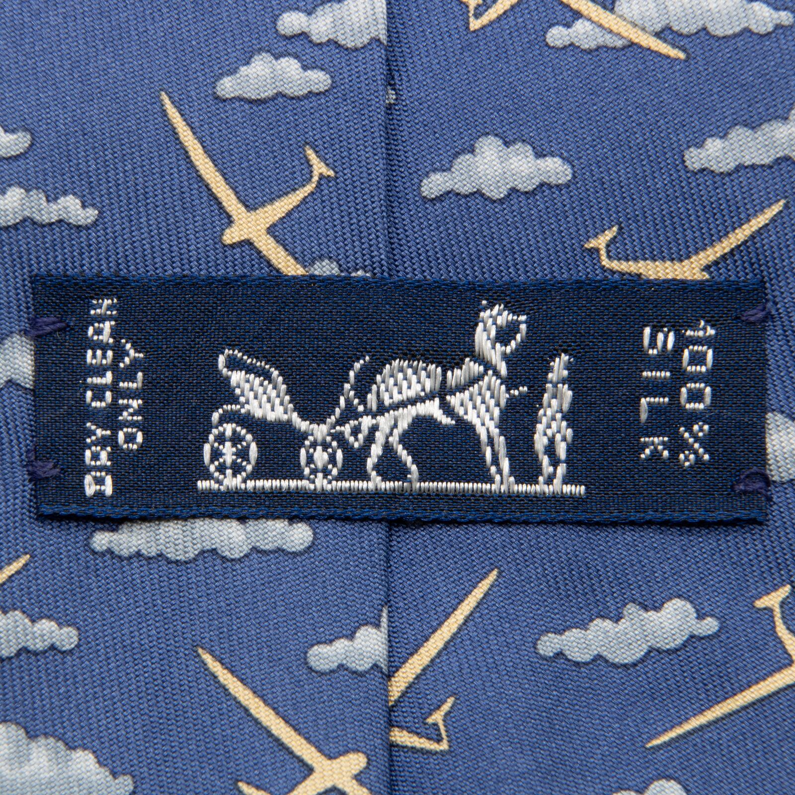 極美品 送料無料 エルメス ネクタイ ワイドタイ ブランド シルク 青 ブルー カジュアル 空 飛行機 雲 爽やか フランス製 レア 綺麗 N361