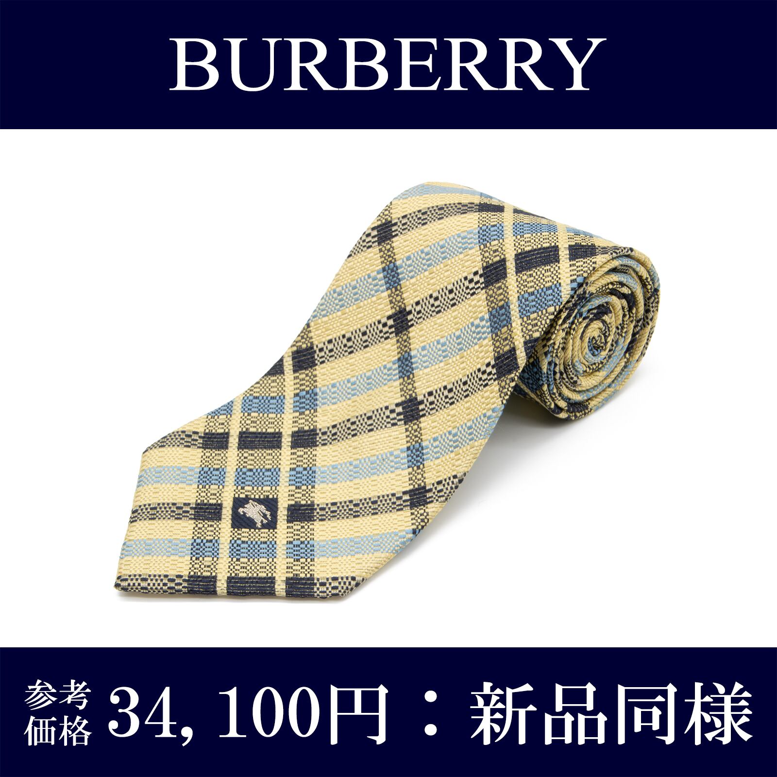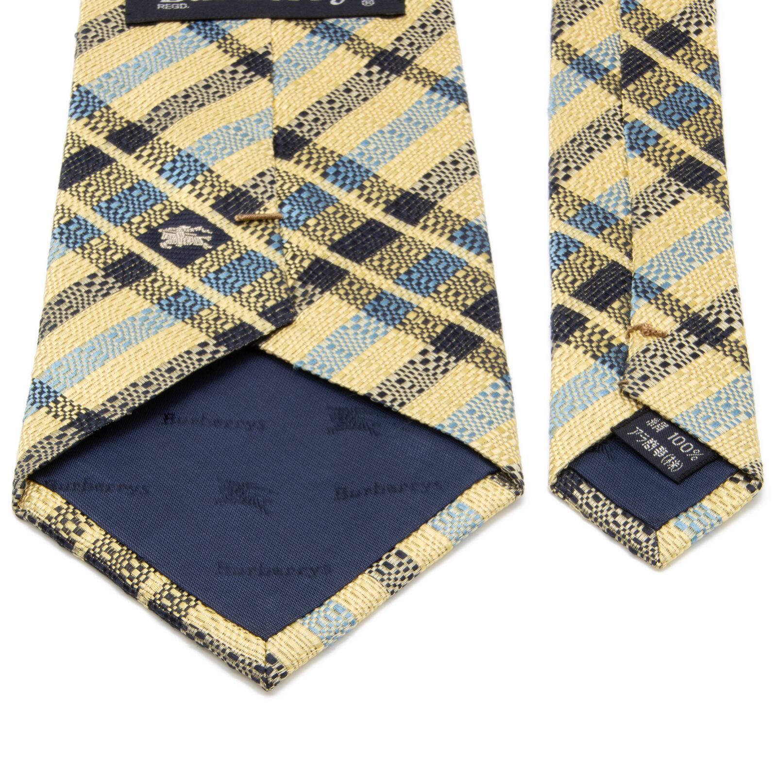 新品同様 送料無料 バーバリー ネクタイ ワイドタイ ジャガードタイ チェック ブランド シルク 黄色 青 黒 ホースロゴ マーク 馬 綺麗 N372