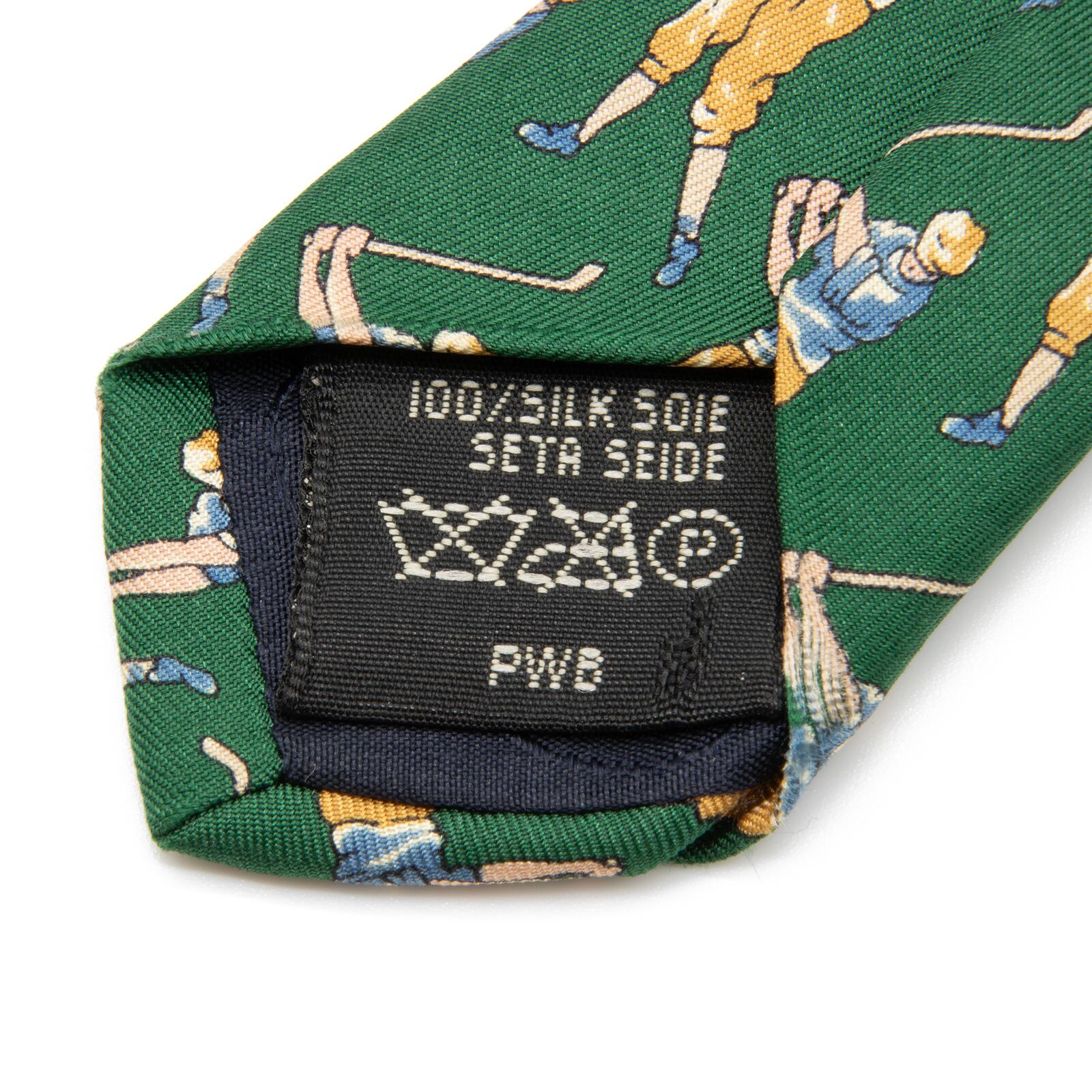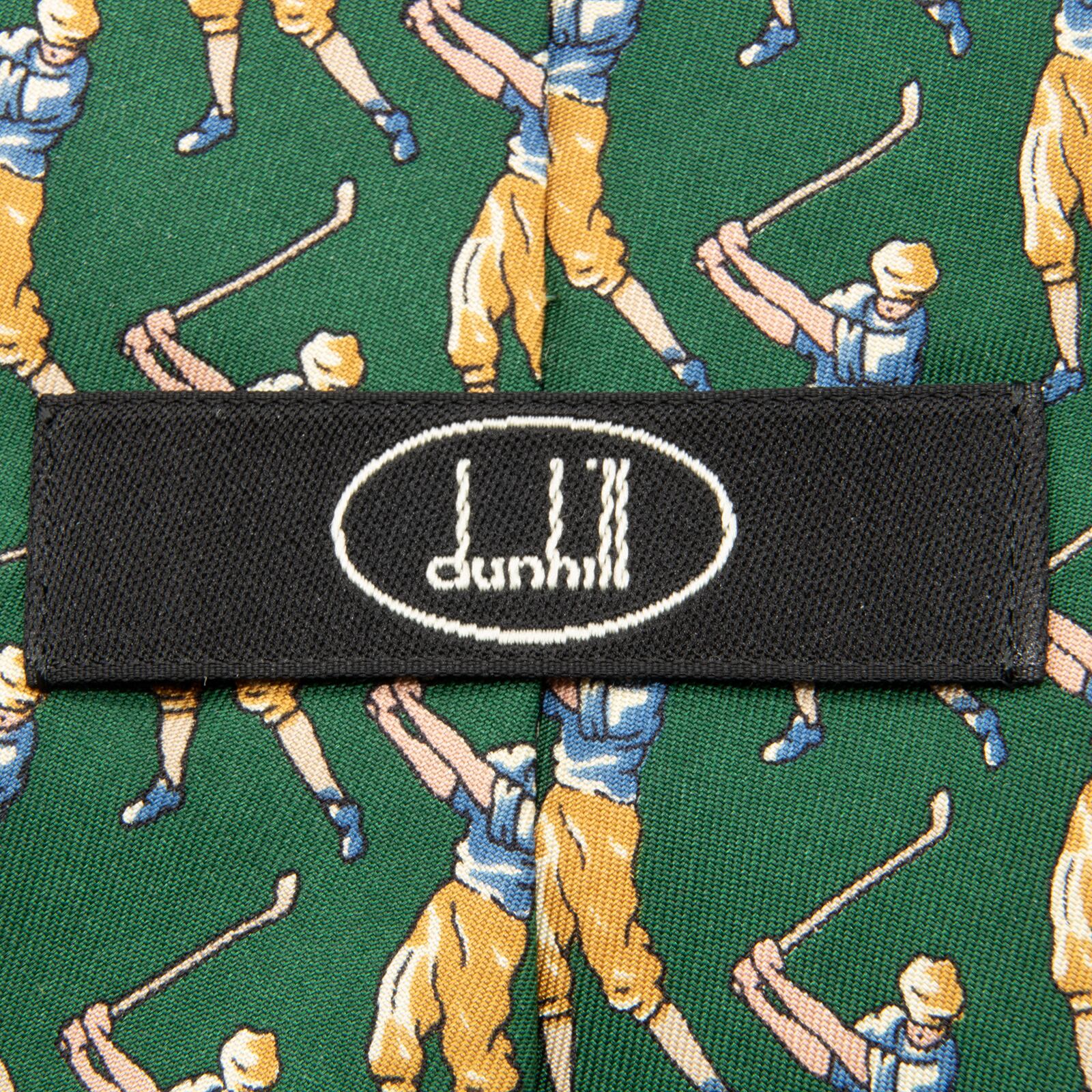 良品 送料無料 ダンヒル ネクタイ ワイドタイ ブランド シルク 緑 グリーン ゴールド 青 ブルー ゴルファー 8番フラッグ カップ レア N358