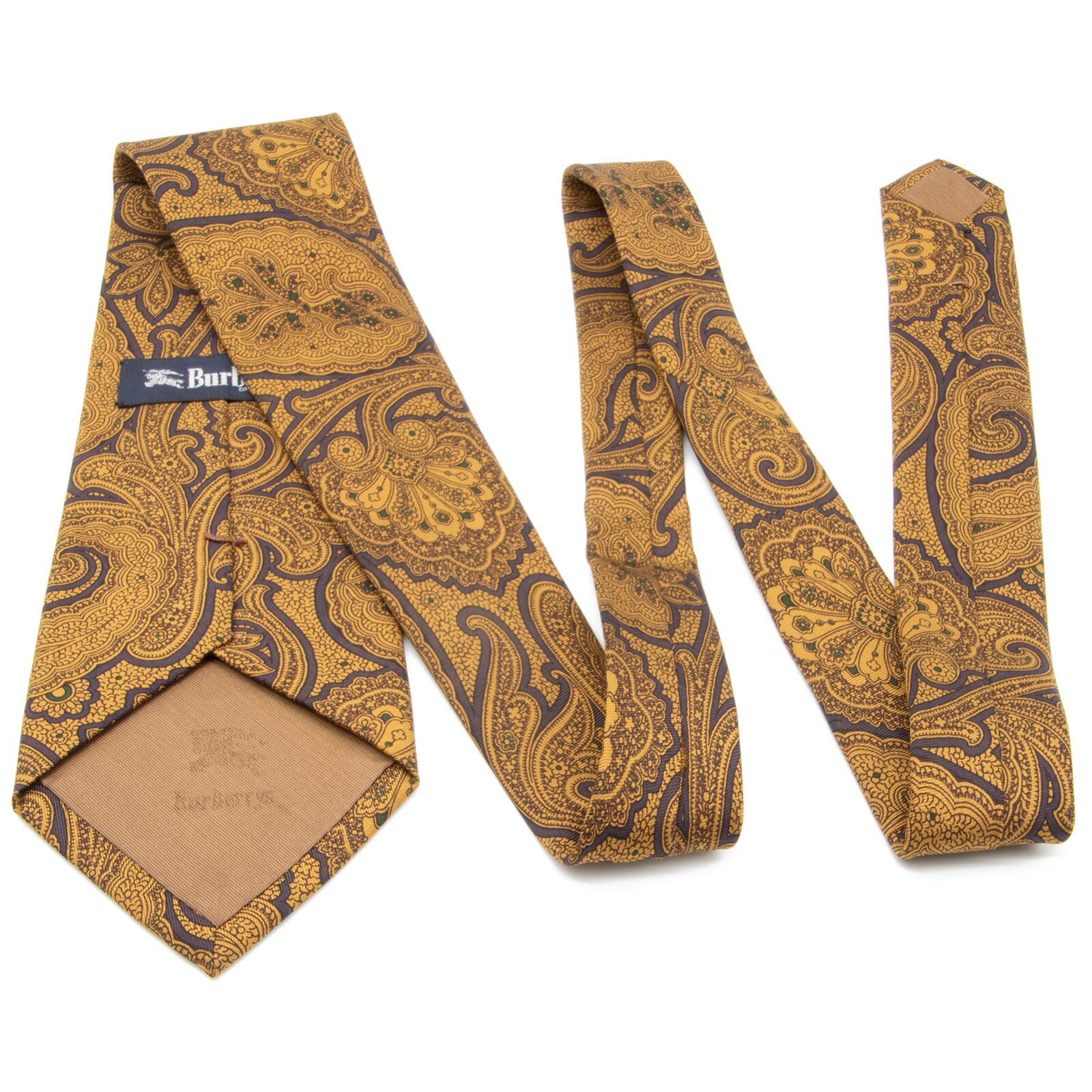 バーバリーのエスニックパターンネクタイの中でも大変希少なモデルで、大剣の裏にはホースロゴがあしらわれており、落ち着いた配色でありながら、ただならぬ雰囲気を感じさせるデザインで、最高級シルクのふっくらとした柔らかい肌触りと光沢が相まって、洗練された美しさと存在感にうっとりさせられます。
