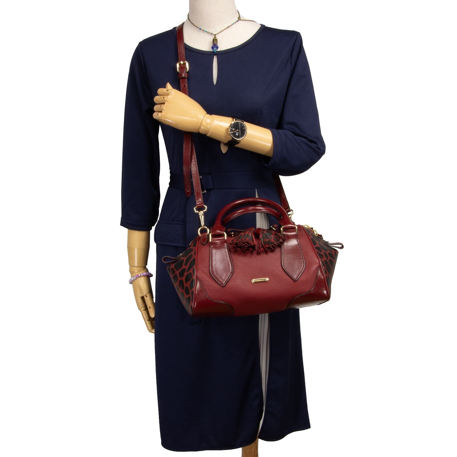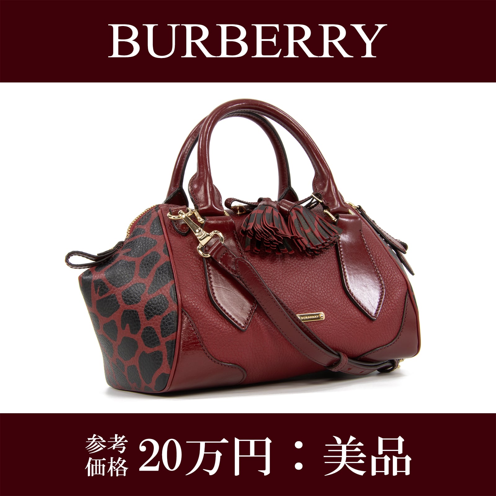 美品 送料無料 バーバリー 2WAYショルダーバッグ ハンドバッグ レディース ボルドー 黒 ブラック 革 レザー 斜め掛け 綺麗 鞄 バック I165