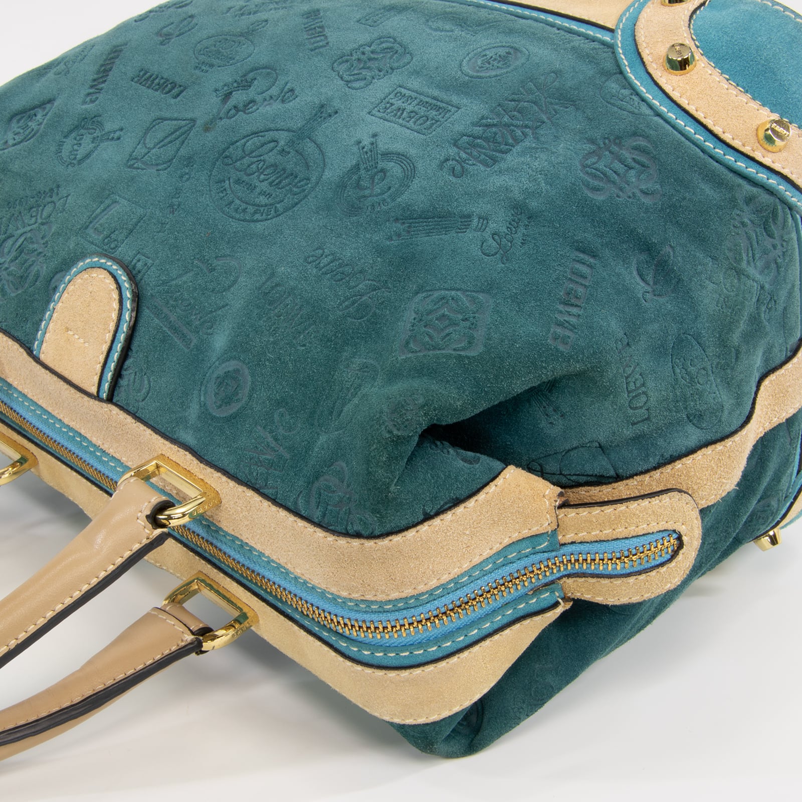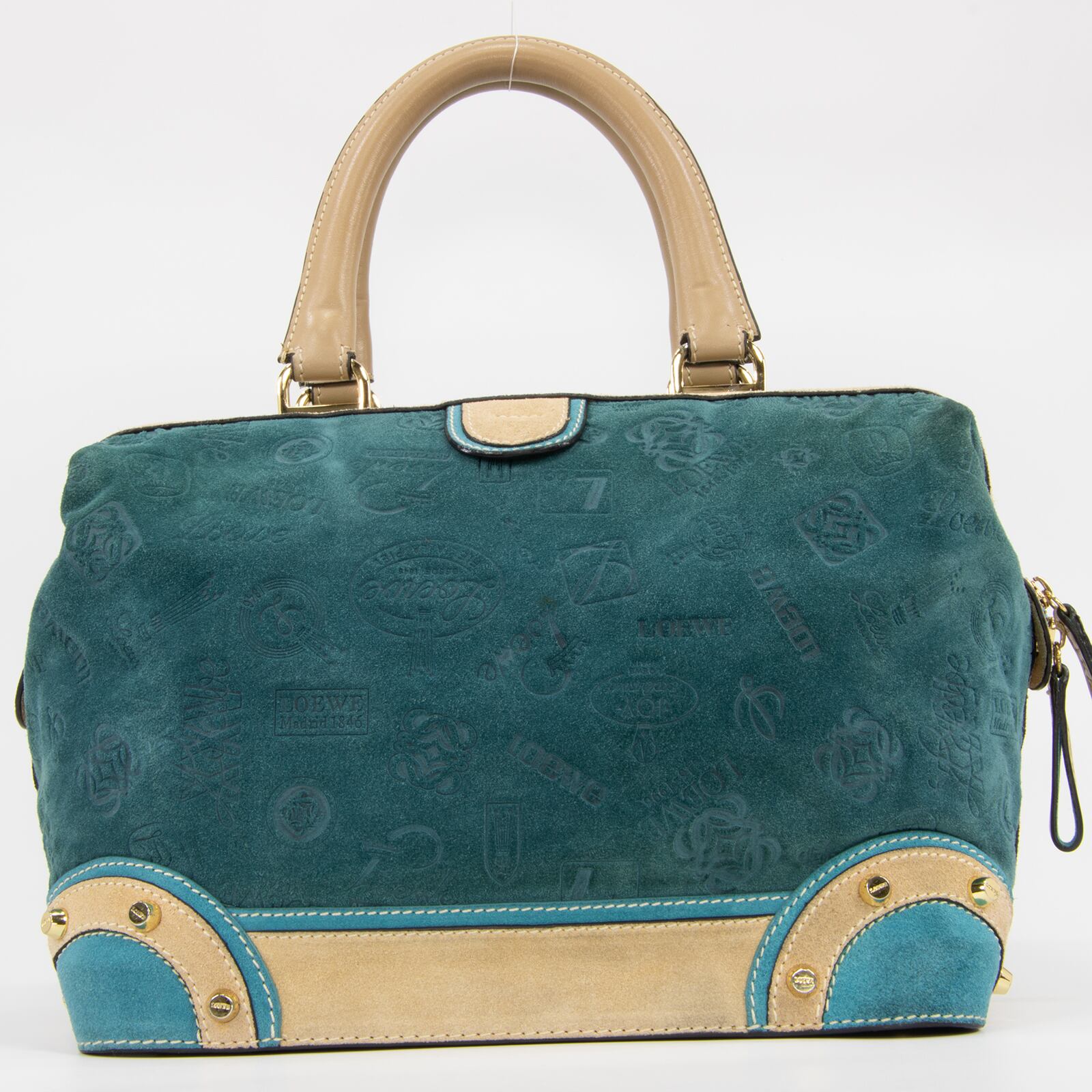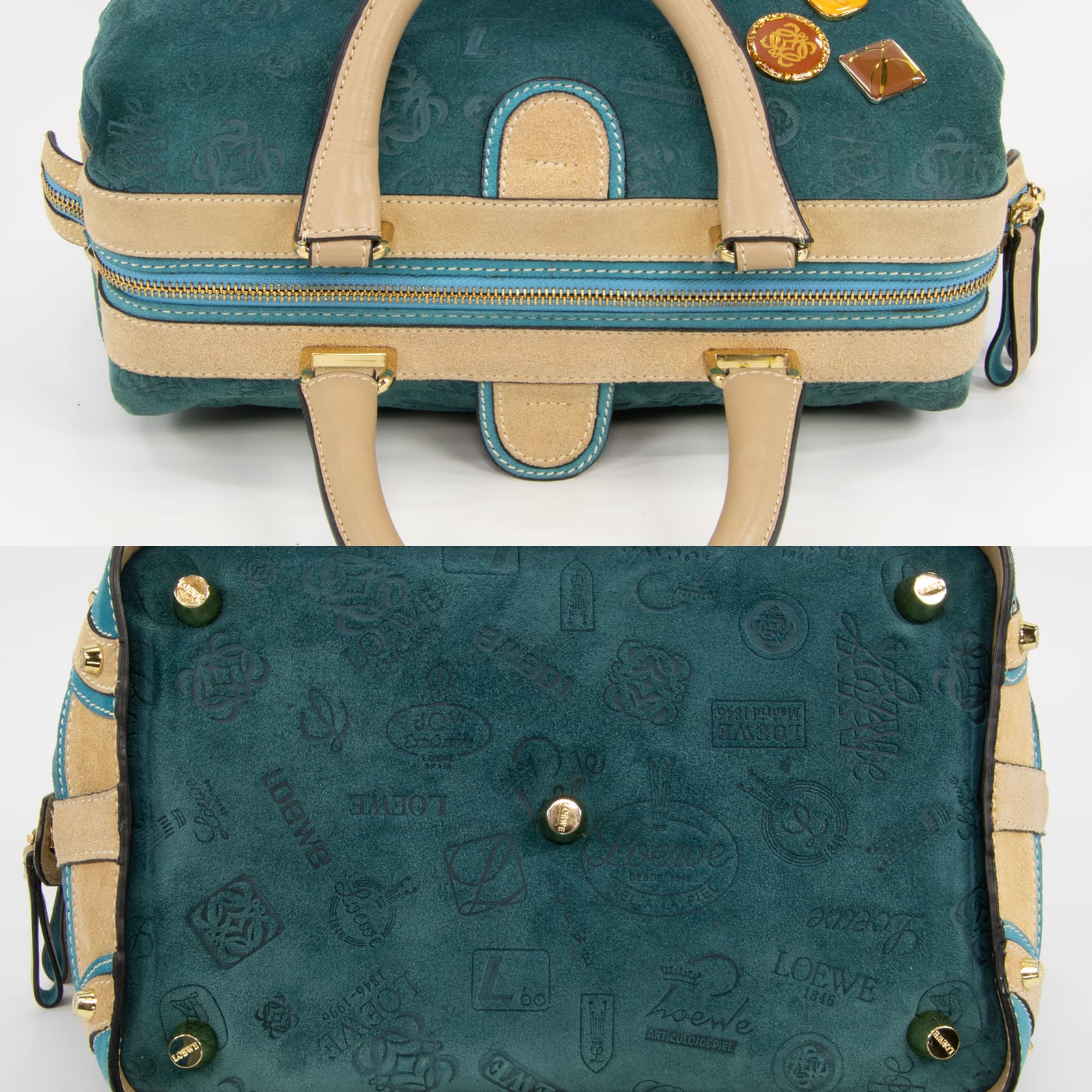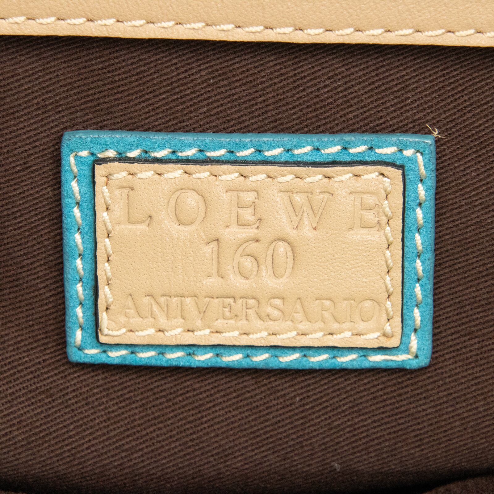 美品 送料無料 ロエベ ハンドバッグ レディース 160周年記念モデル ベージュ ブルー 革 レザー バッジ ロゴ プレート 綺麗 鞄 バック A787