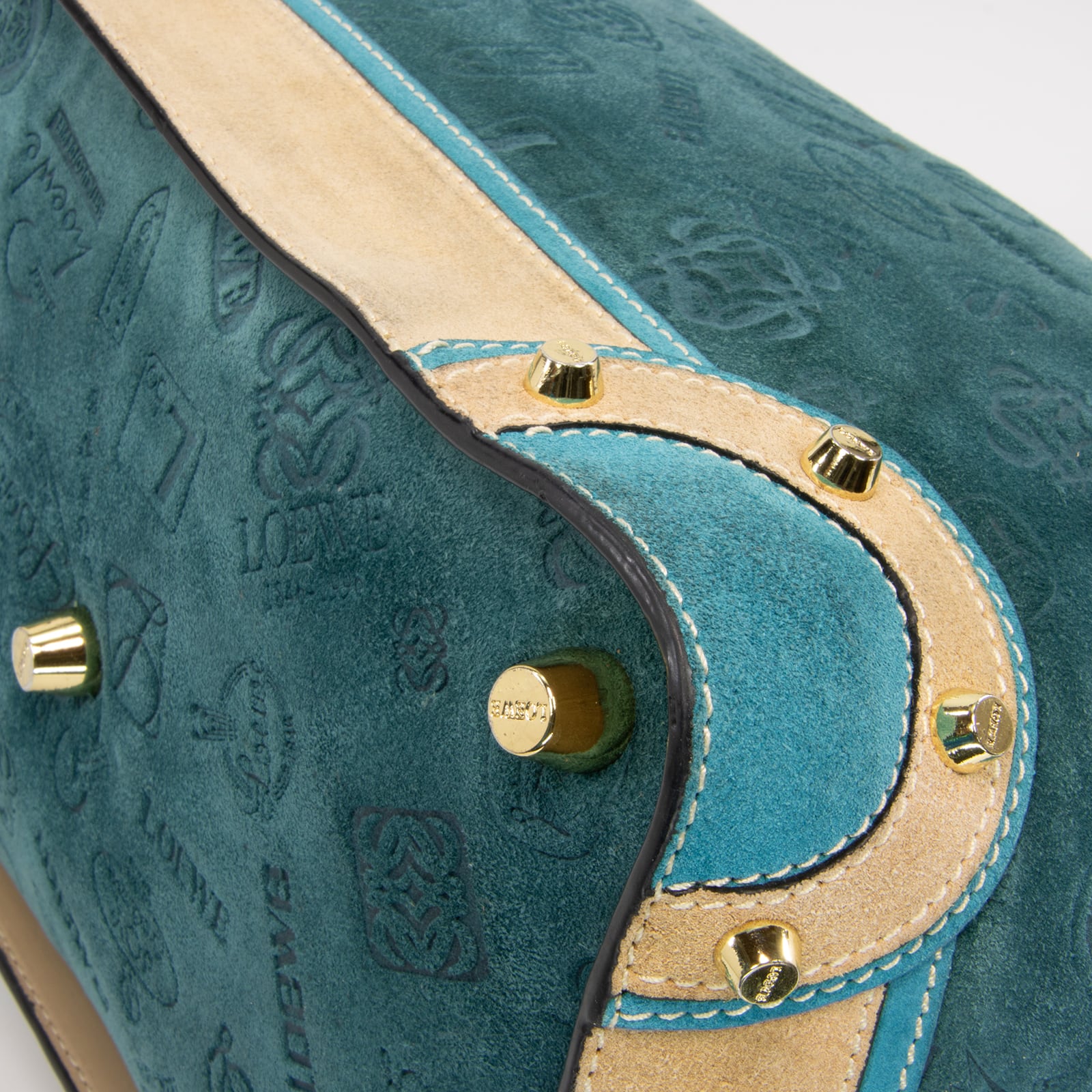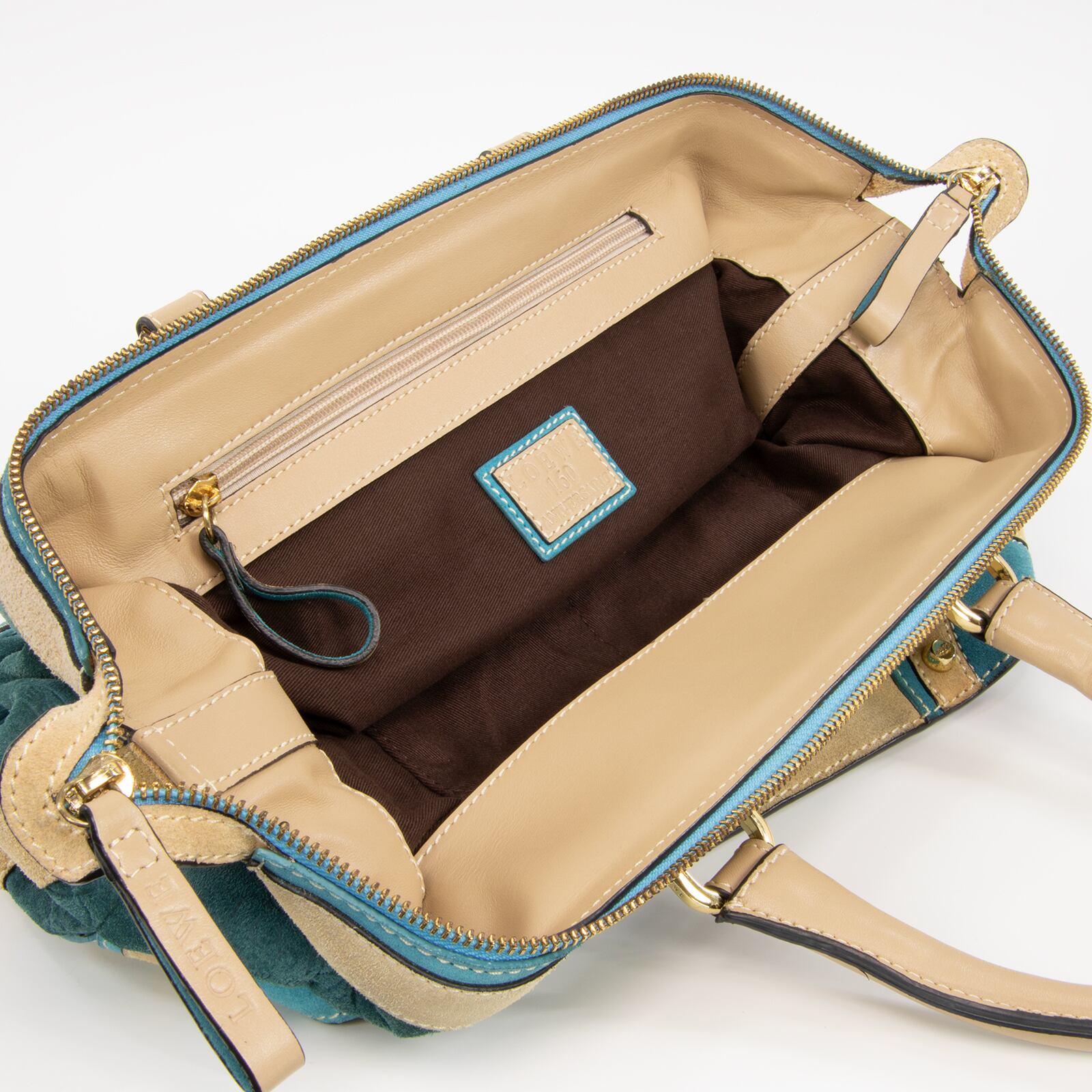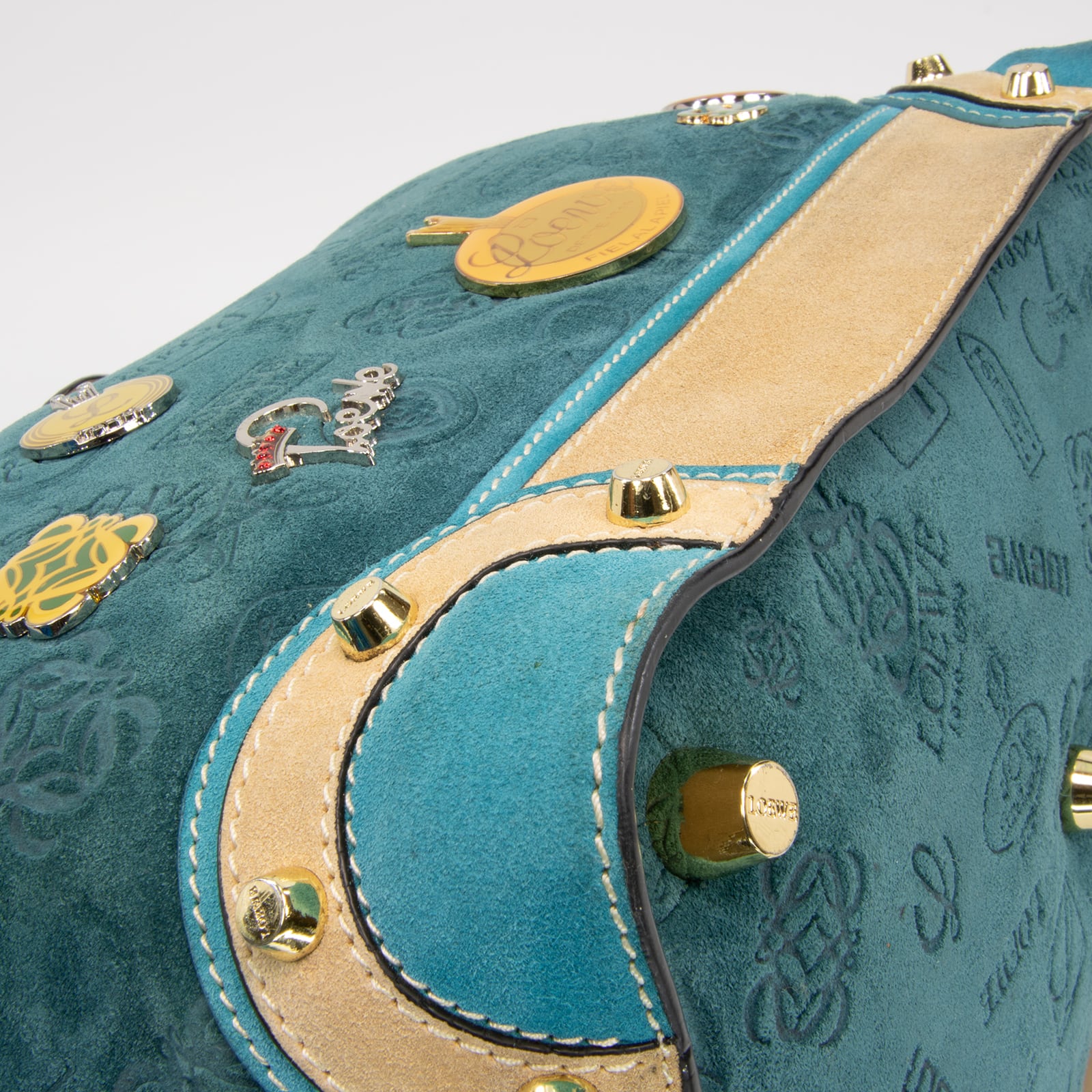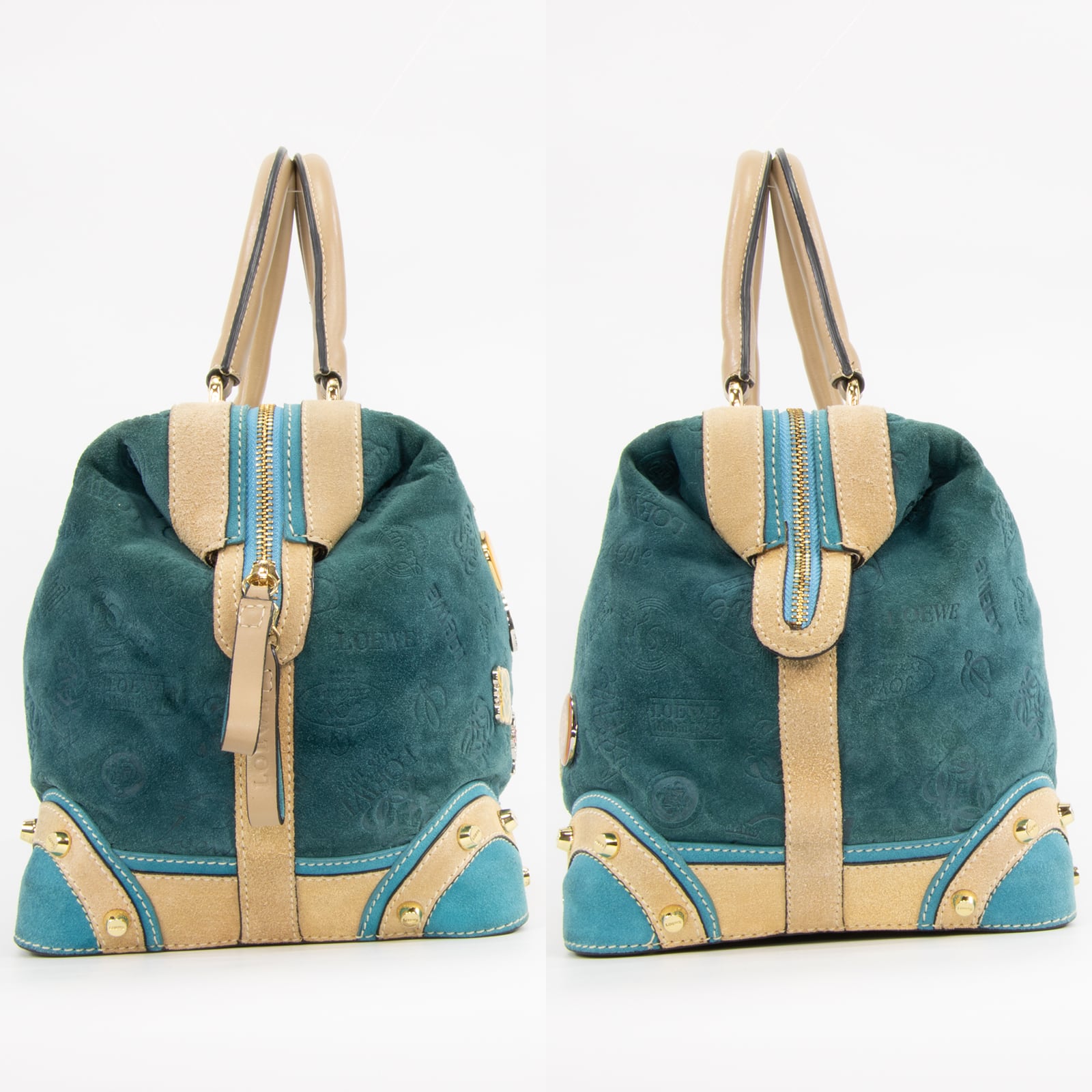 美品 送料無料 ロエベ ハンドバッグ レディース 160周年記念モデル ベージュ ブルー 革 レザー バッジ ロゴ プレート 綺麗 鞄 バック A787