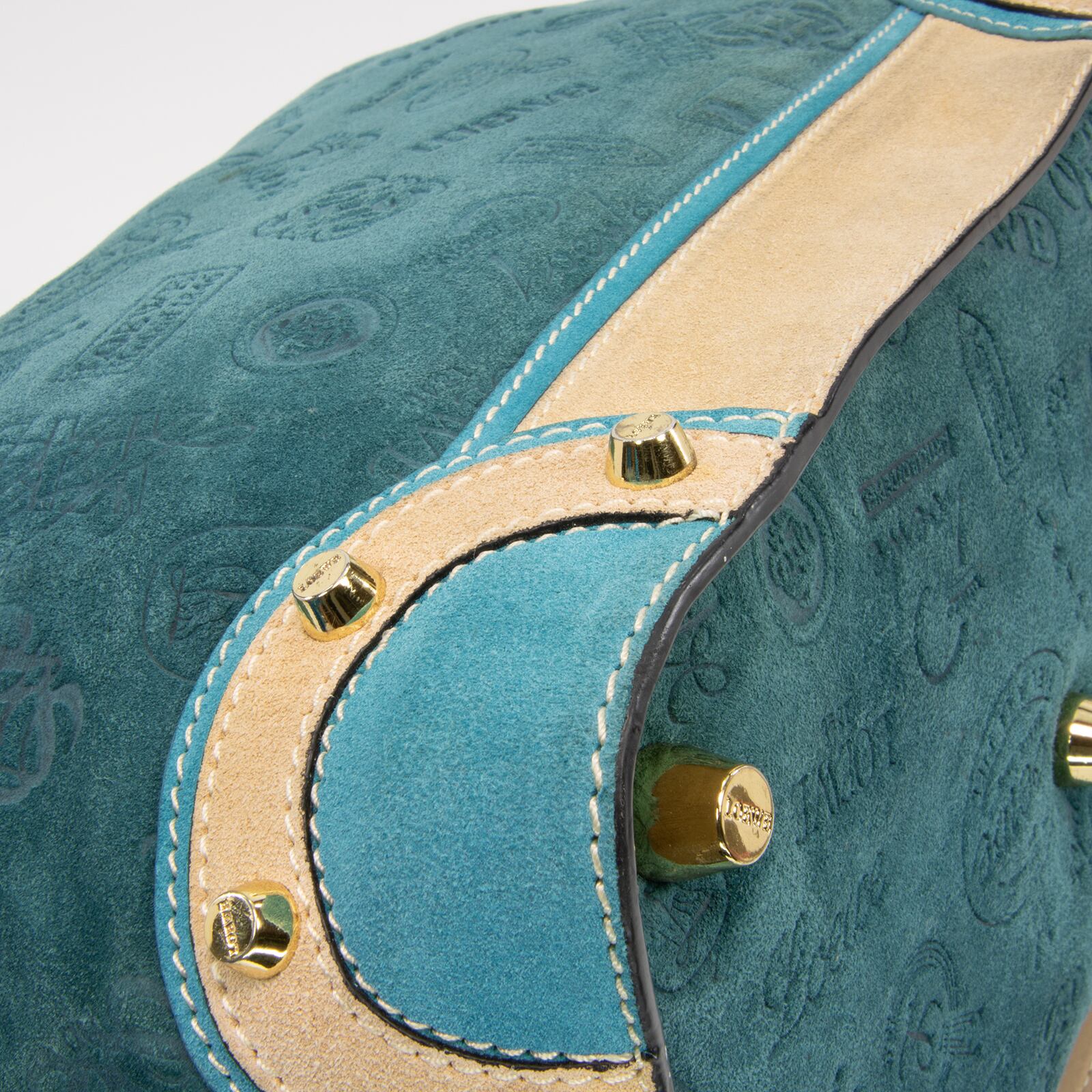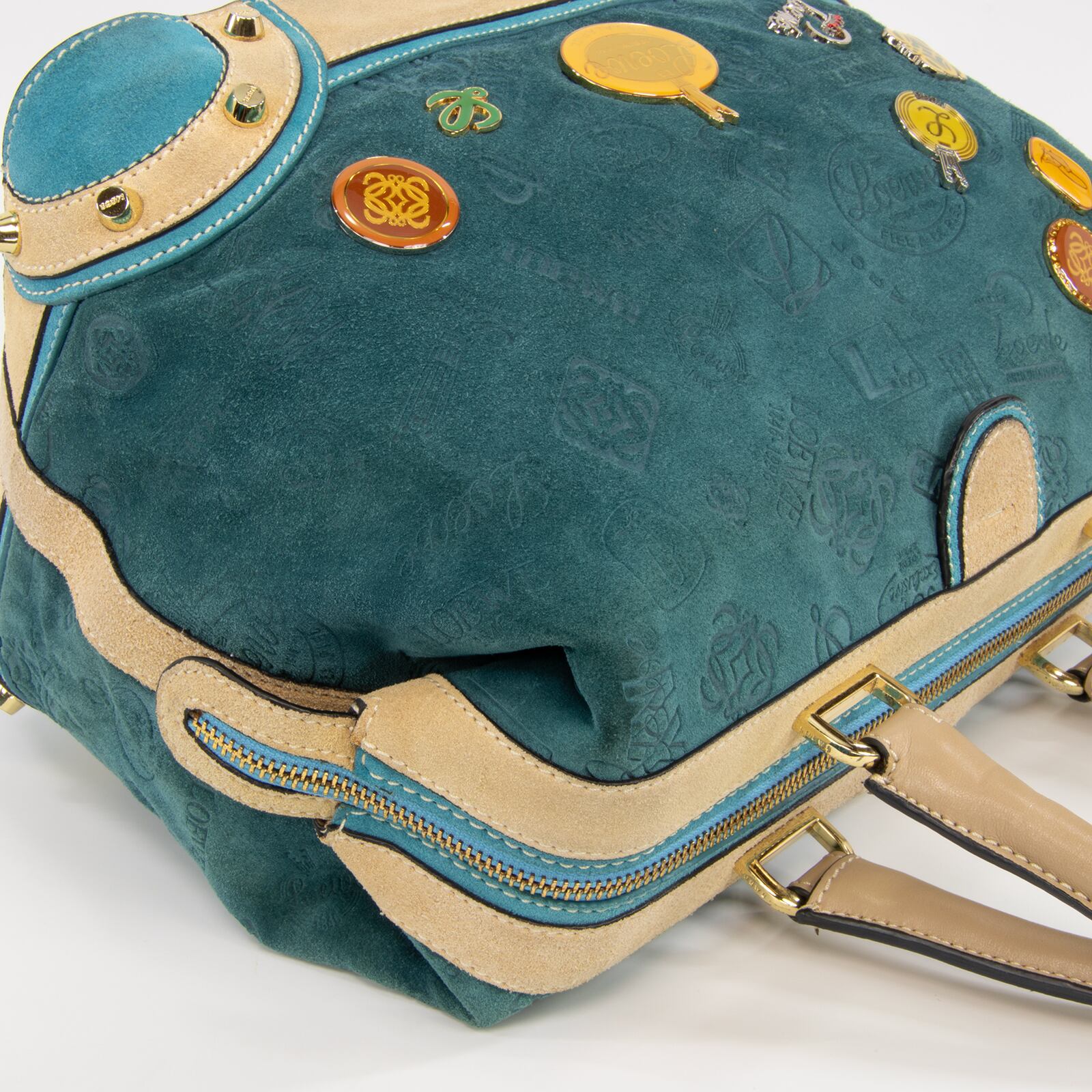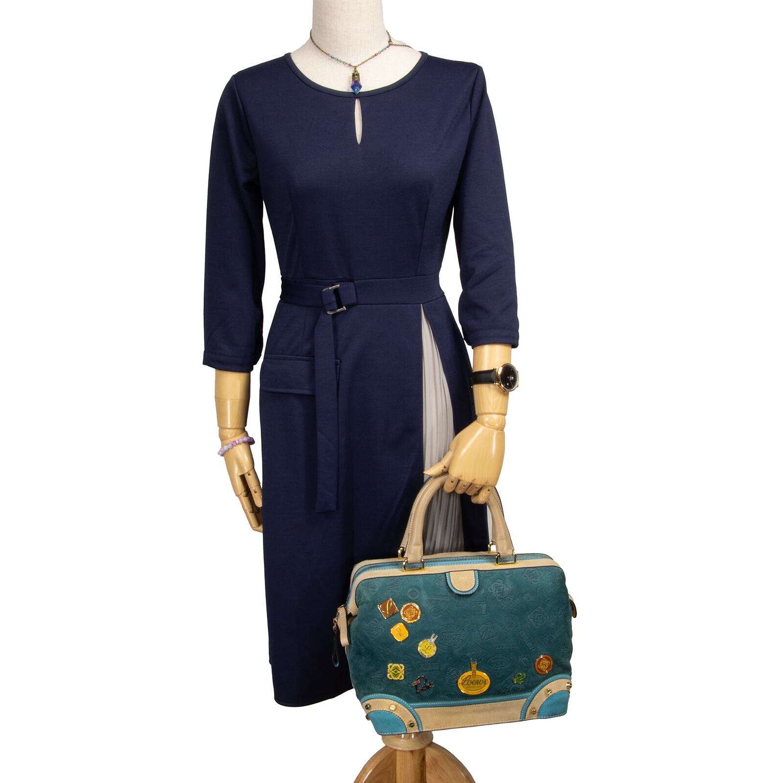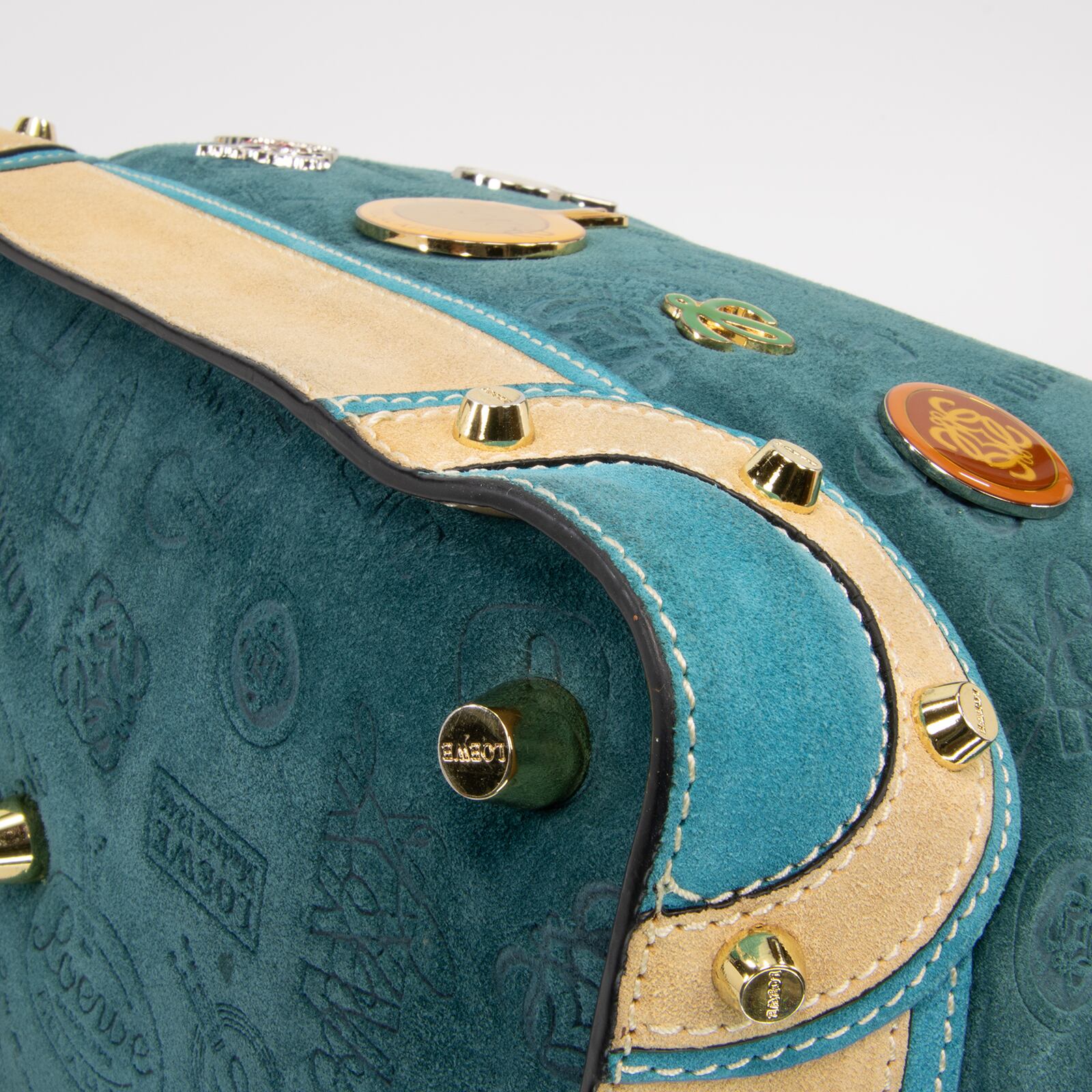 美品 送料無料 ロエベ ハンドバッグ レディース 160周年記念モデル ベージュ ブルー 革 レザー バッジ ロゴ プレート 綺麗 鞄 バック A787
