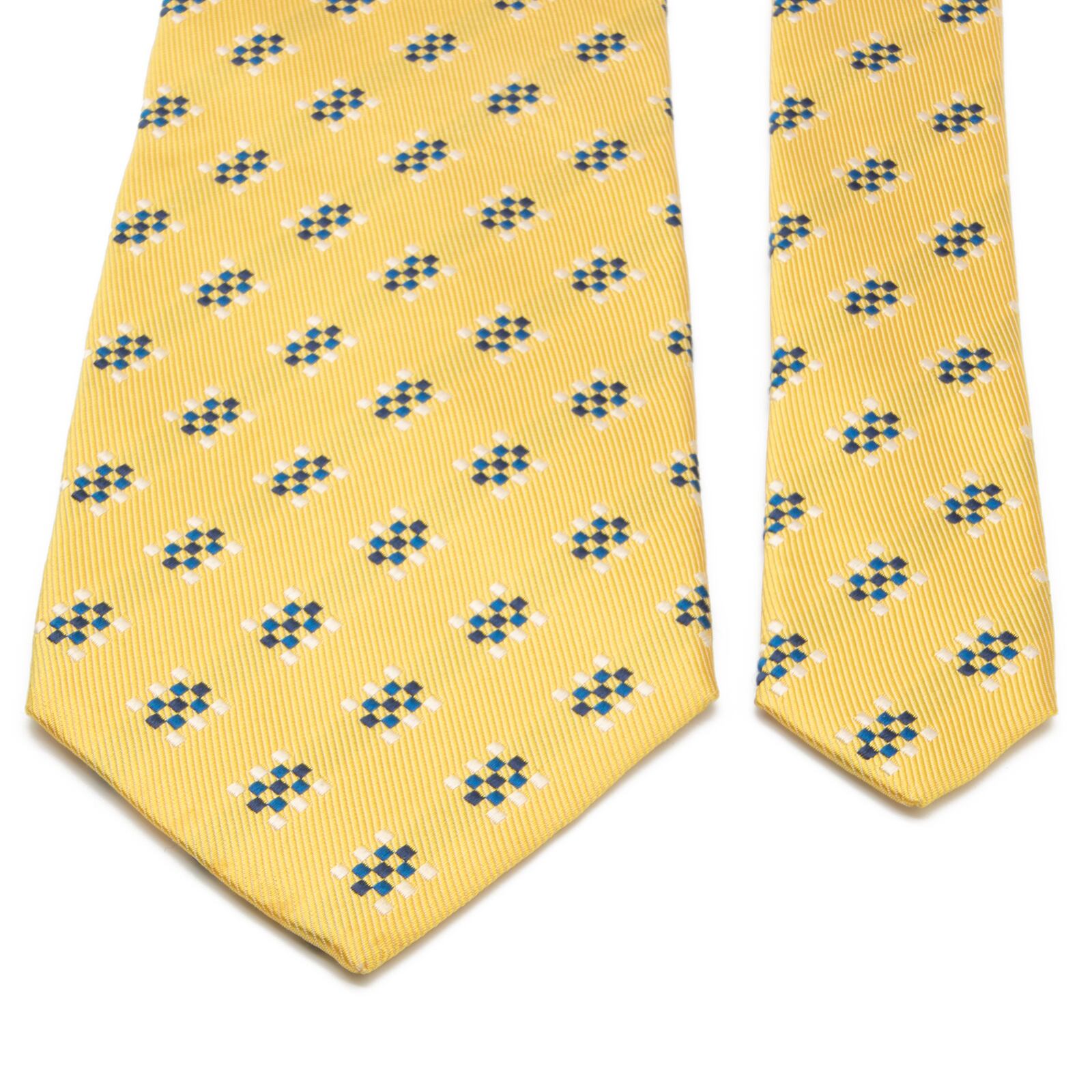 本物 送料無料 サンローラン ネクタイ レギュラータイ ジャガードタイ ブランド シルク 黄色 イエロー 青 ブルー 爽やか N062