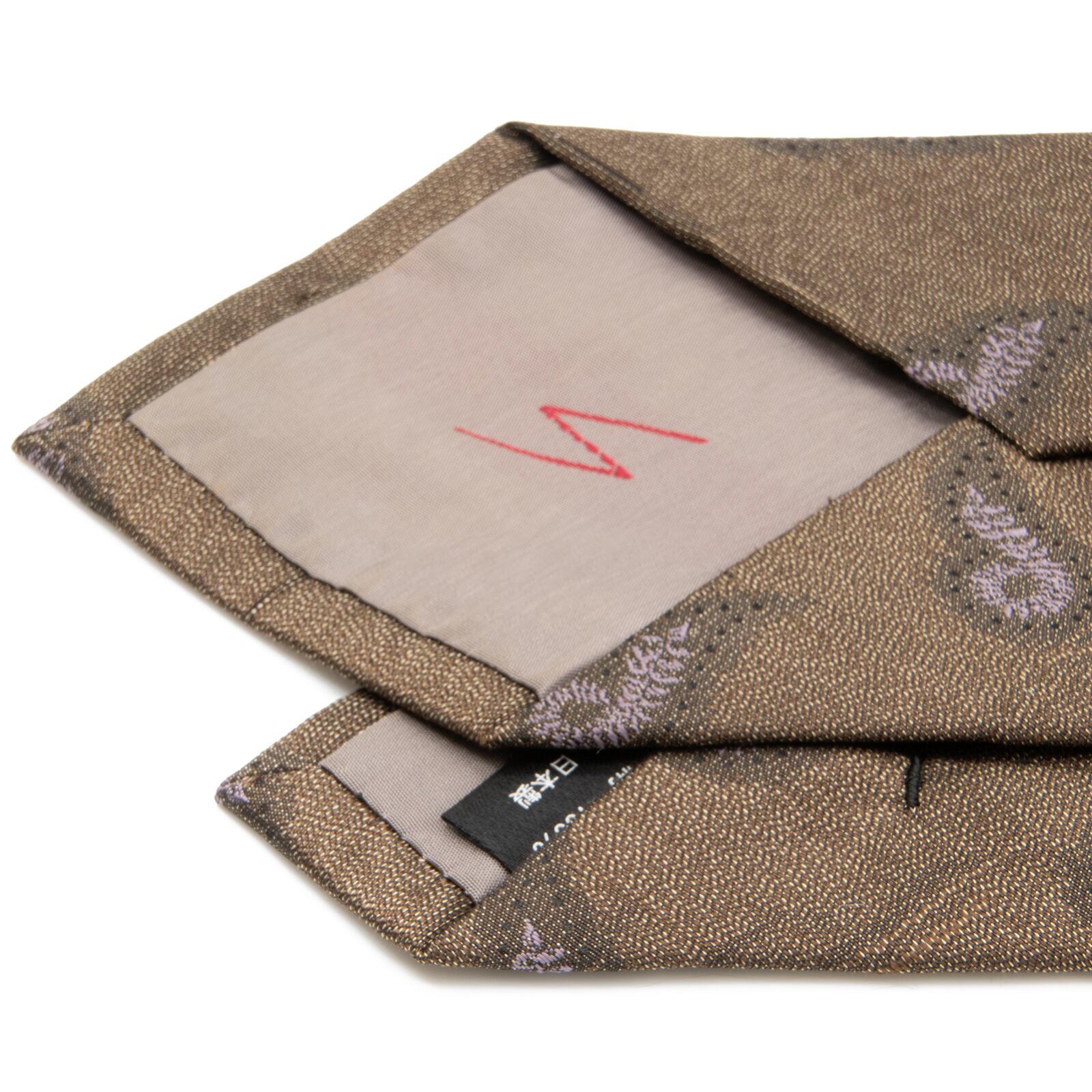 ヨウジヤマモトのオールオーバーネクタイの中でも大変希少なモデルで、ただならぬ雰囲気を感じさせるペイズリーや勾玉のようなものが全面にあしらわれており、最高級シルクのふっくらとした柔らかい肌触りと光沢が相まって、洗練された美しさと存在感にうっとりさせられます。